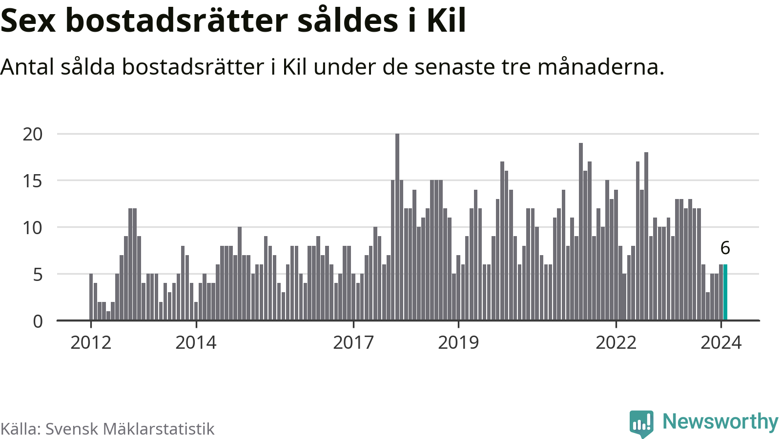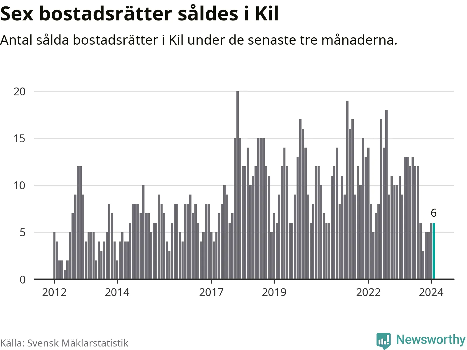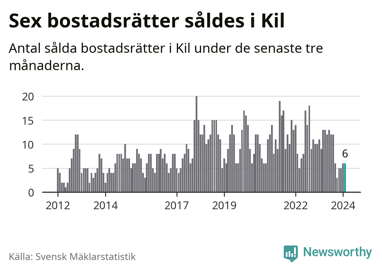 Mellan december och februari gjordes sammanlagt sex affärer med bostadsrätter i Kils kommun. Det kan jämföras med nio vid motsvarande tid i fjol.