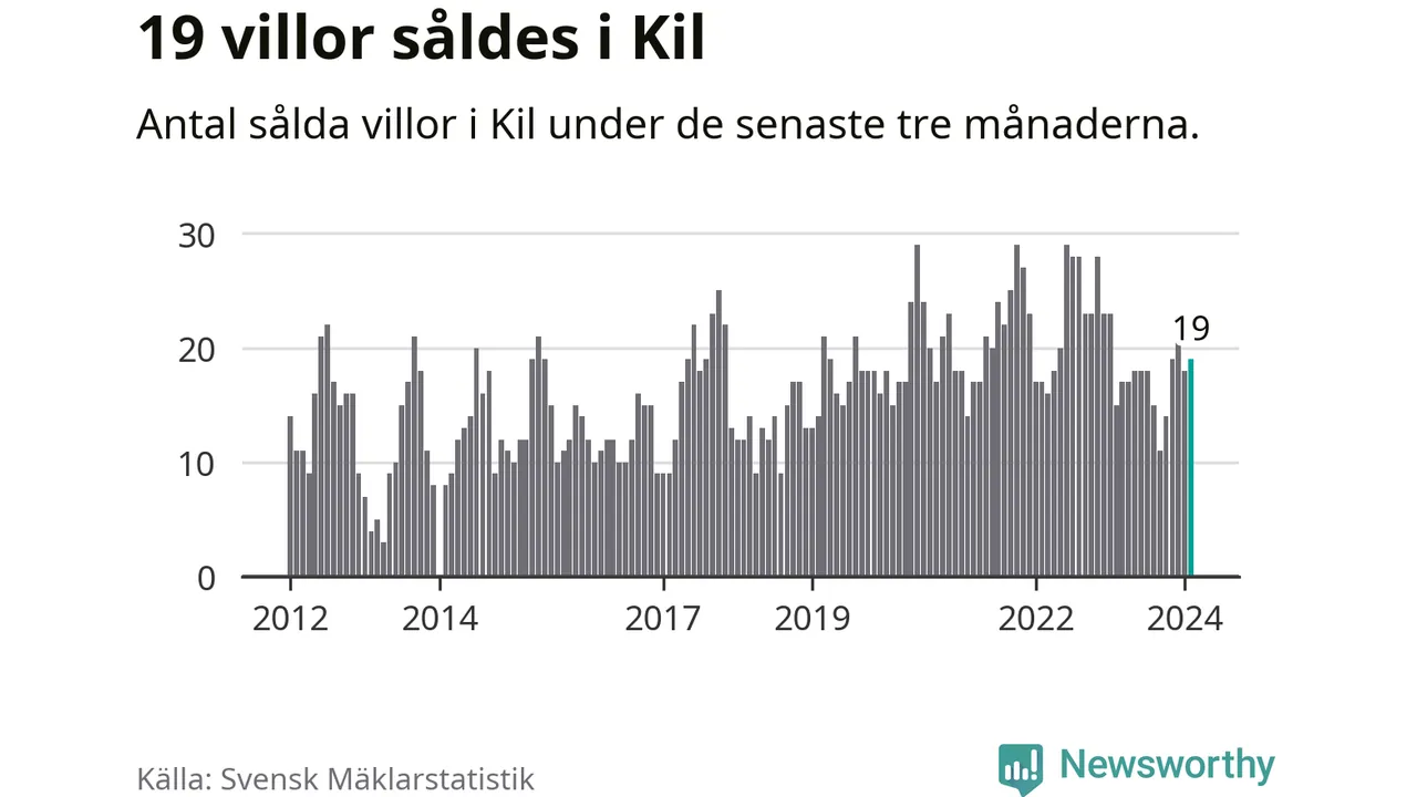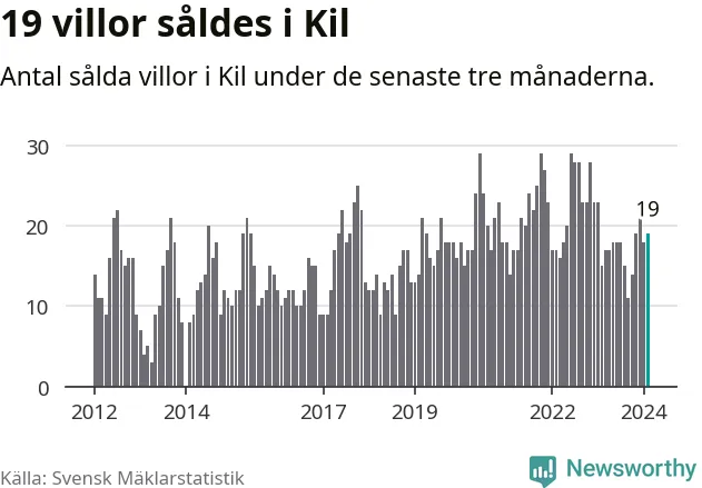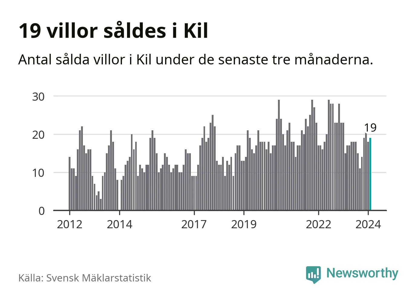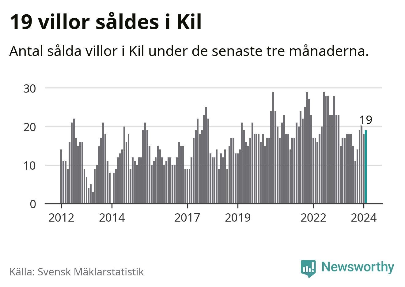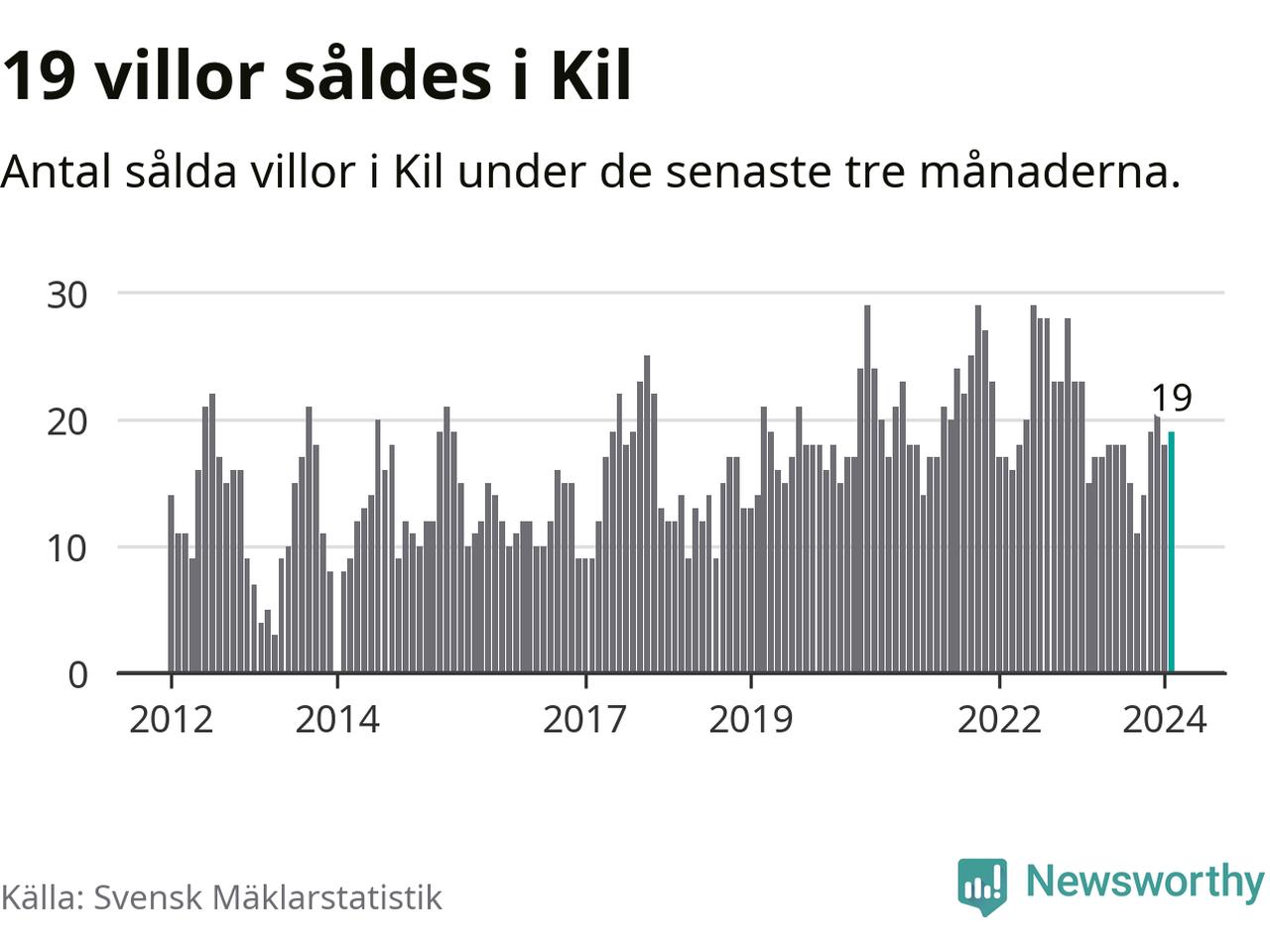 Mellan december och februari gjordes sammanlagt 19 affärer med villor i Kils kommun. Det kan jämföras med 15 vid motsvarande tid i fjol.