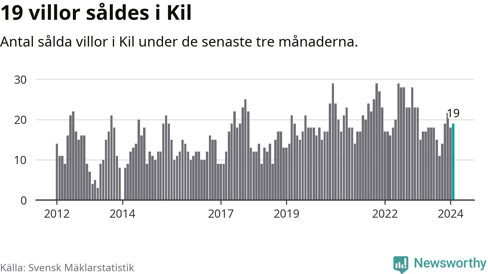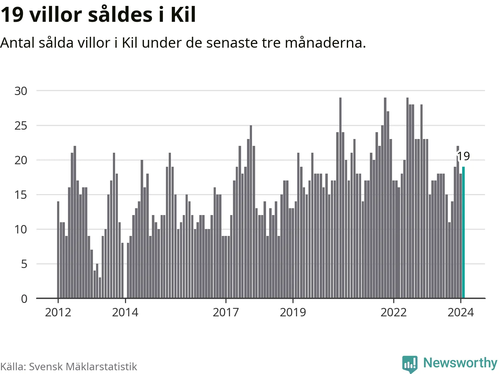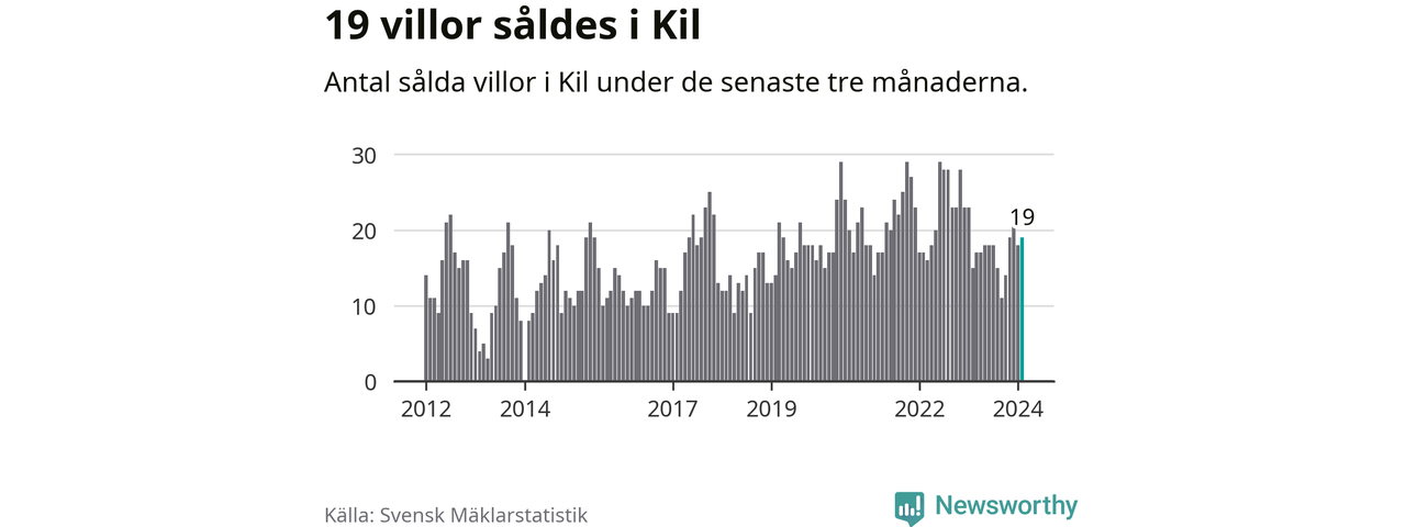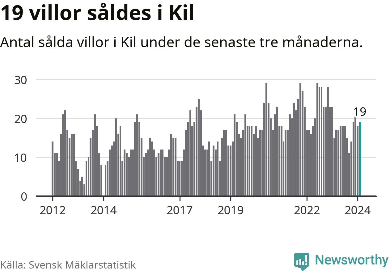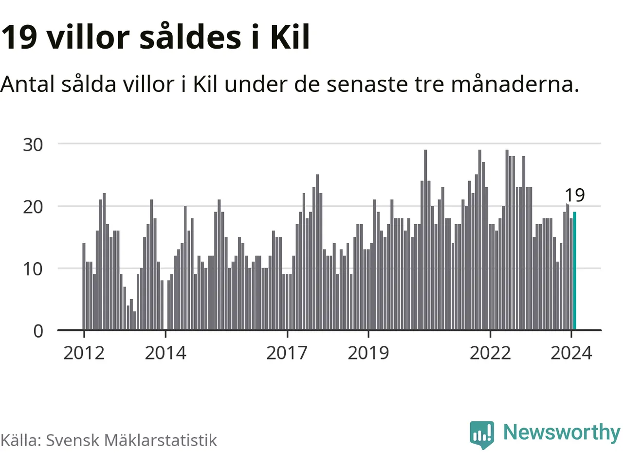 Mellan december och februari gjordes sammanlagt 19 affärer med villor i Kils kommun. Det kan jämföras med 15 vid motsvarande tid i fjol.