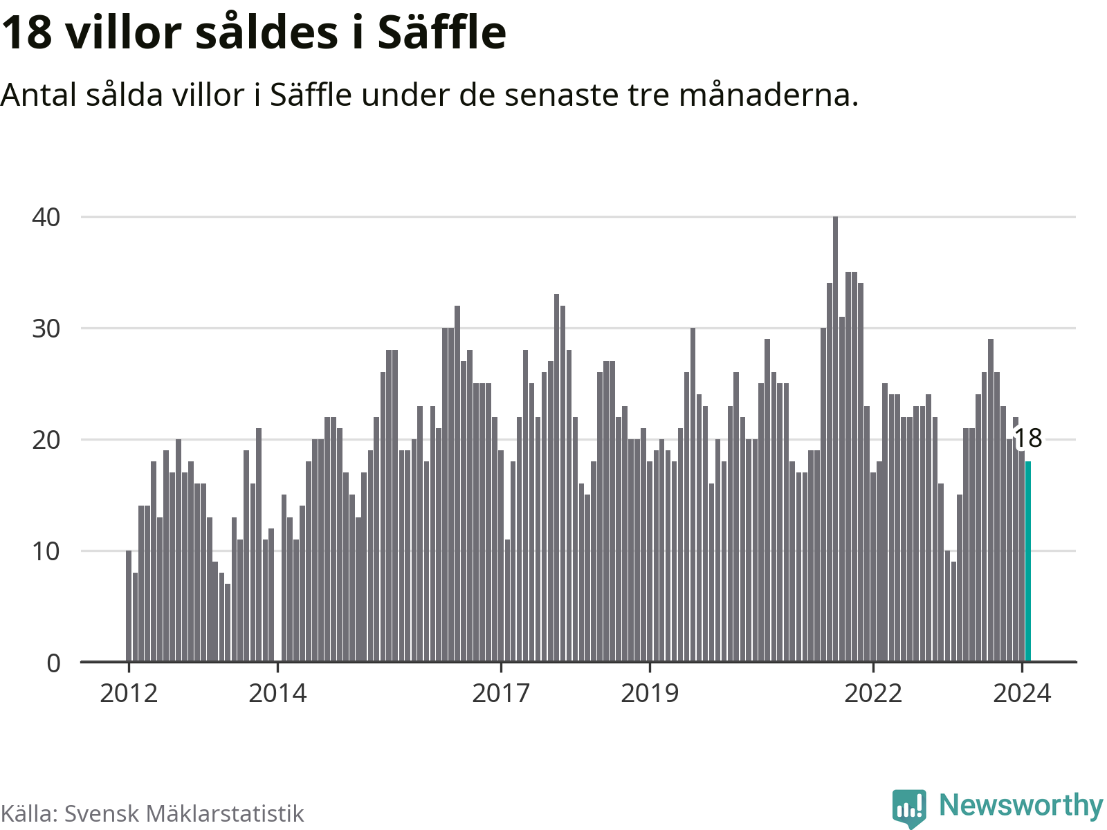 Mellan december och februari gjordes sammanlagt 18 affärer med villor i Säffle kommun. Det kan jämföras med nio vid motsvarande tid i fjol.