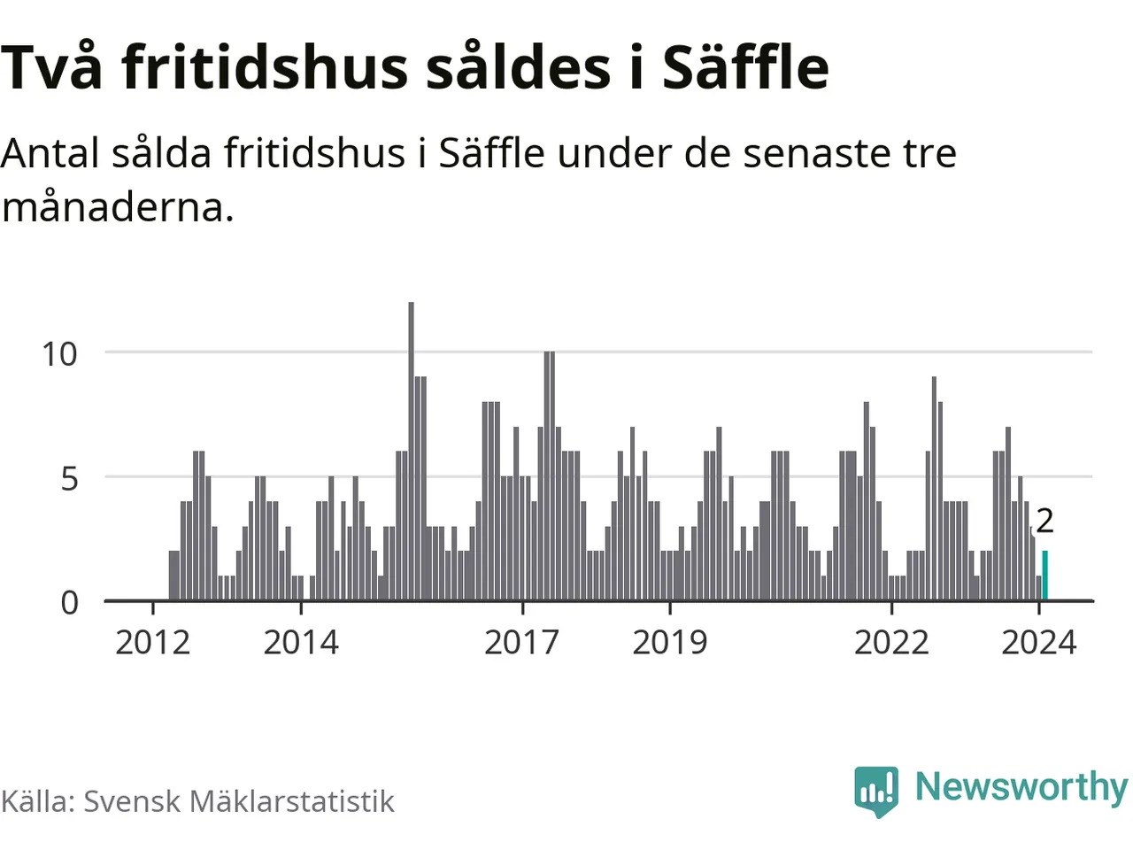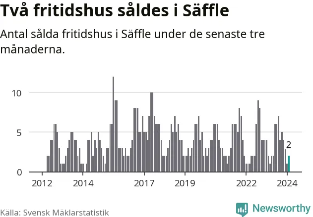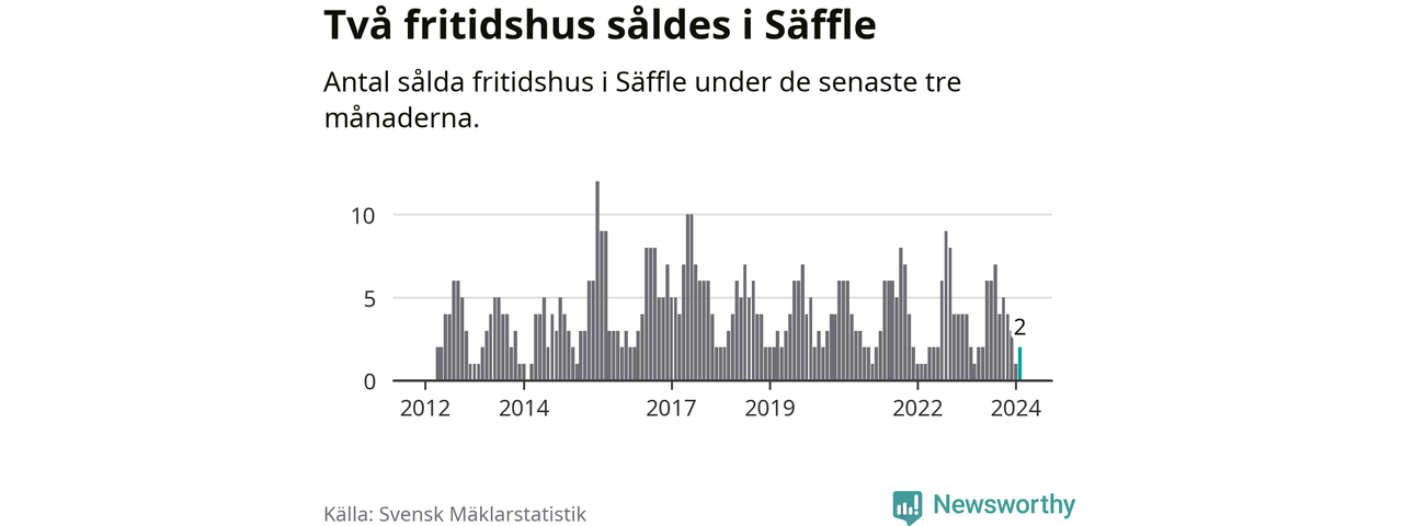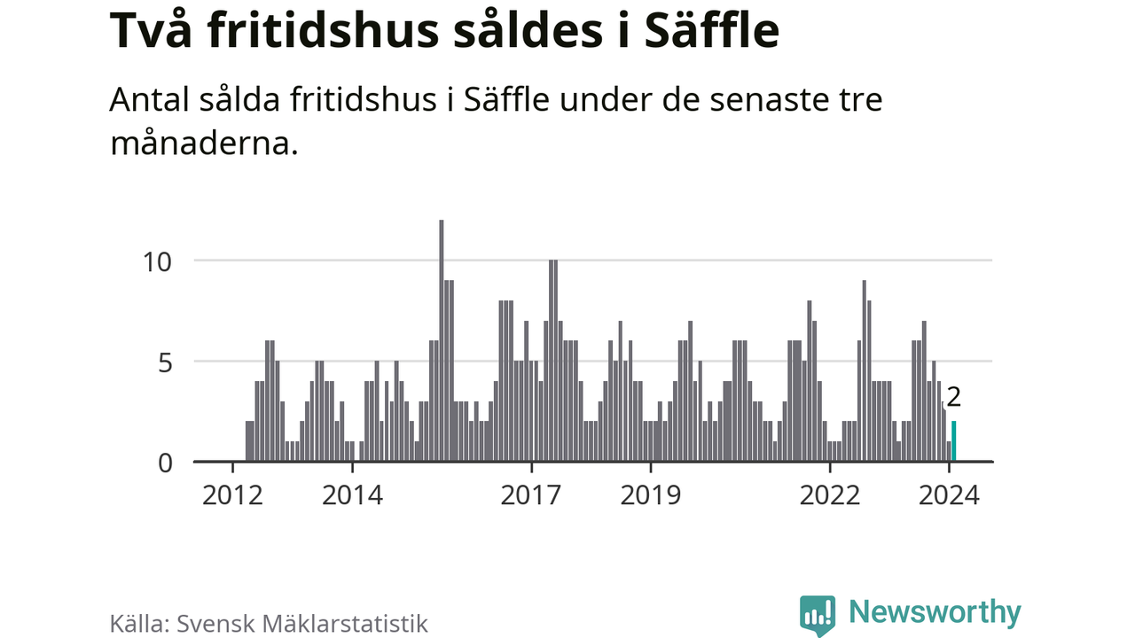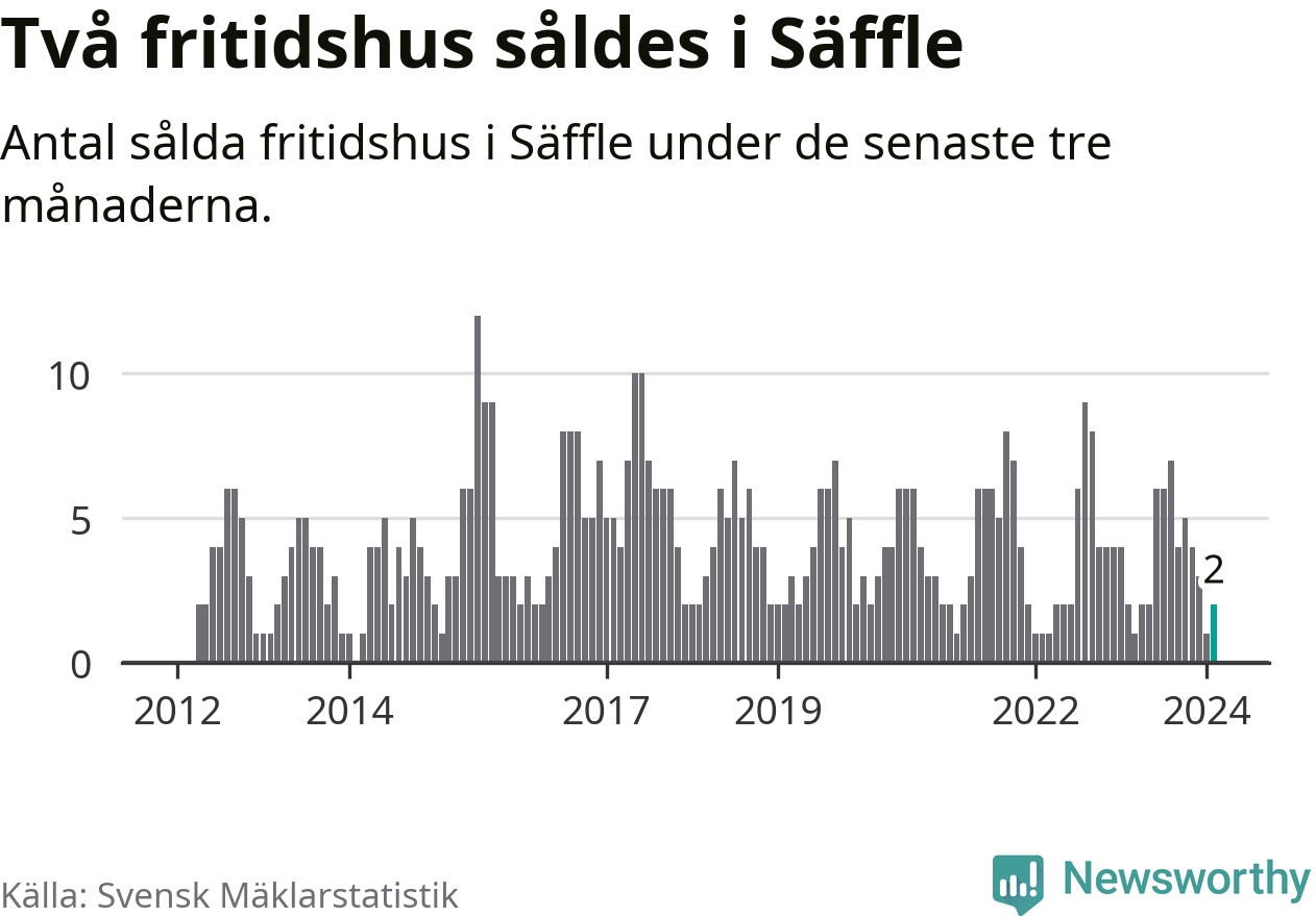 Mellan december och februari gjordes sammanlagt två affärer med fritidshus i Säffle kommun. Det är lika många affärer som vid motsvarande tid i fjol.