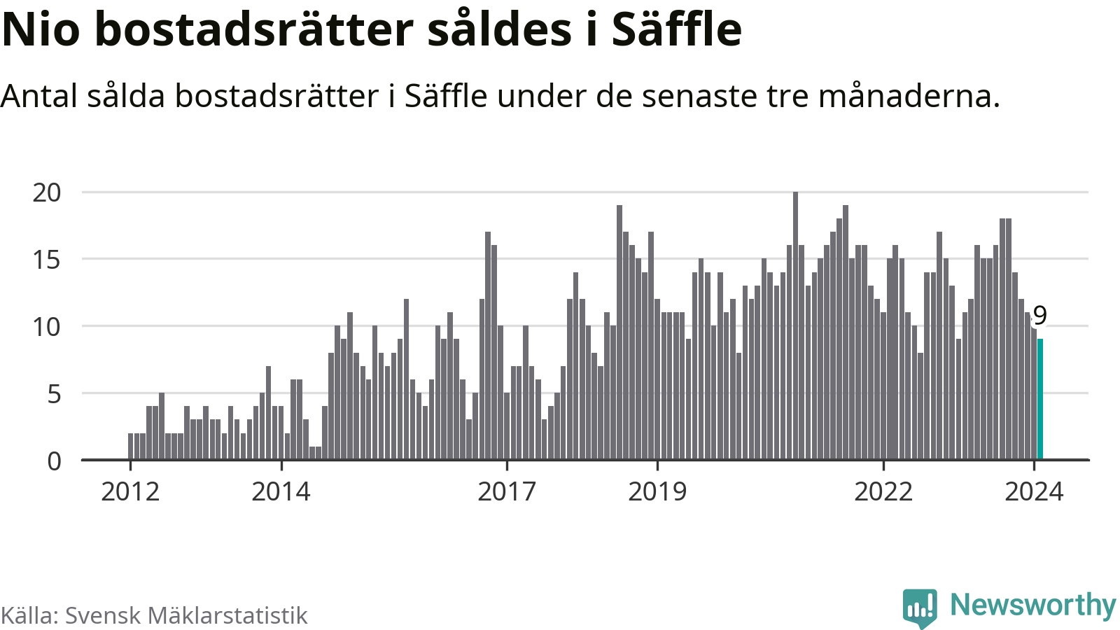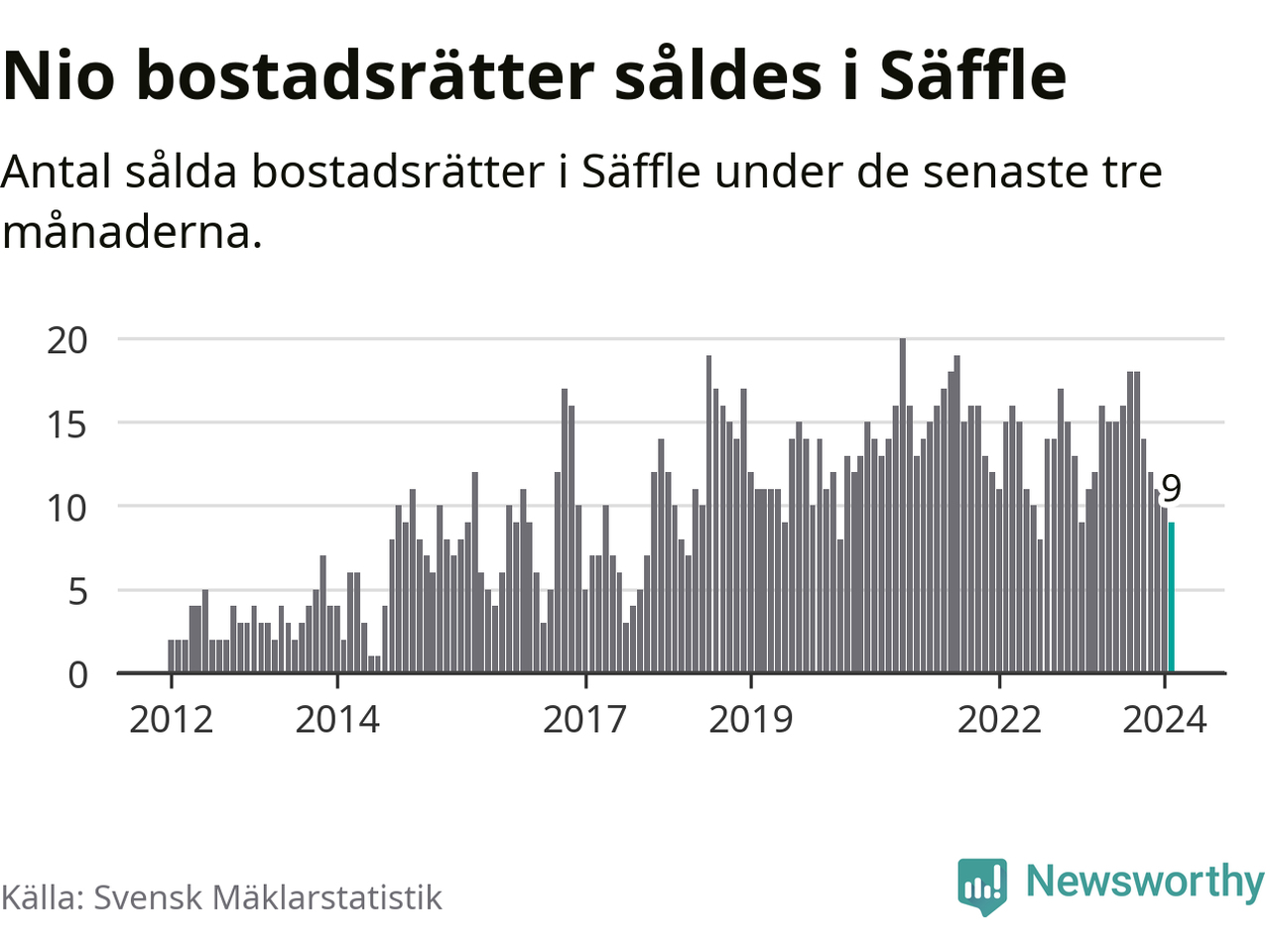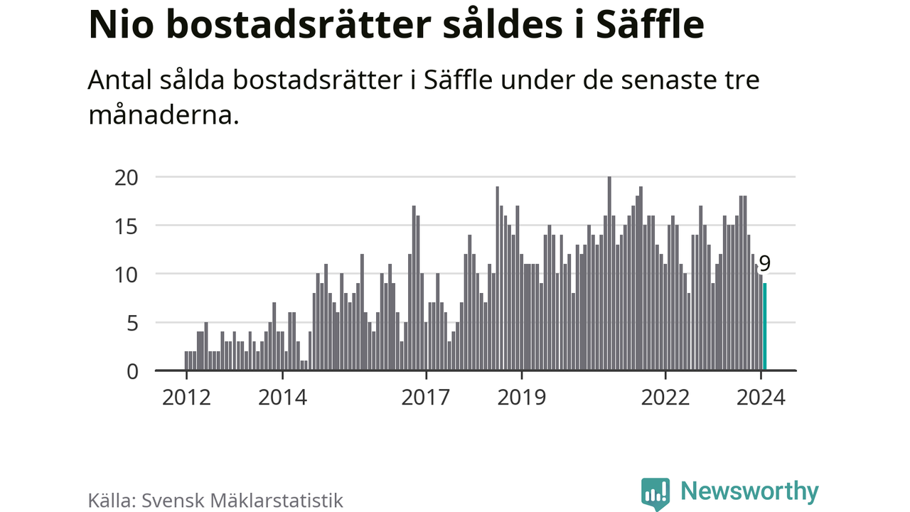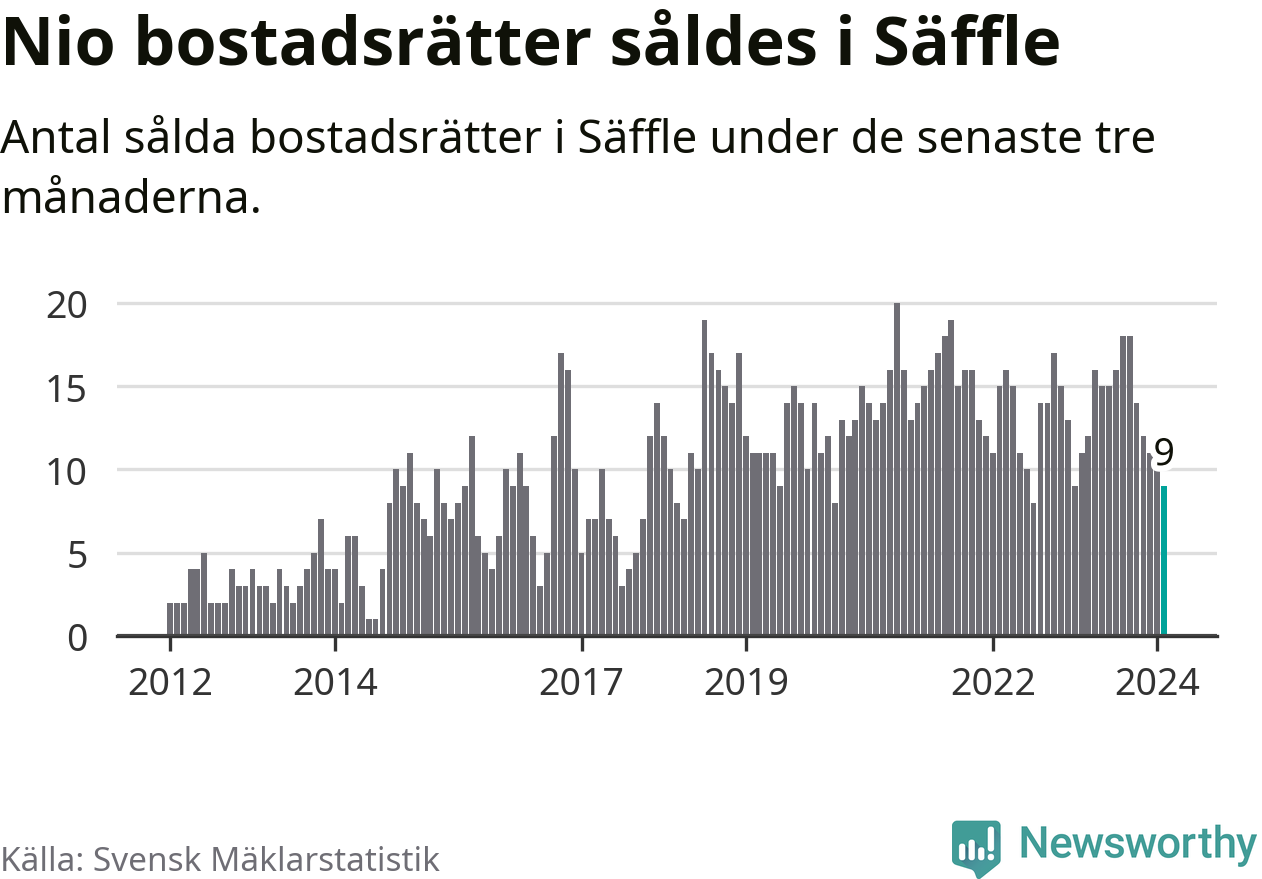 Mellan december och februari gjordes sammanlagt nio affärer med bostadsrätter i Säffle kommun. Det kan jämföras med elva vid motsvarande tid i fjol.