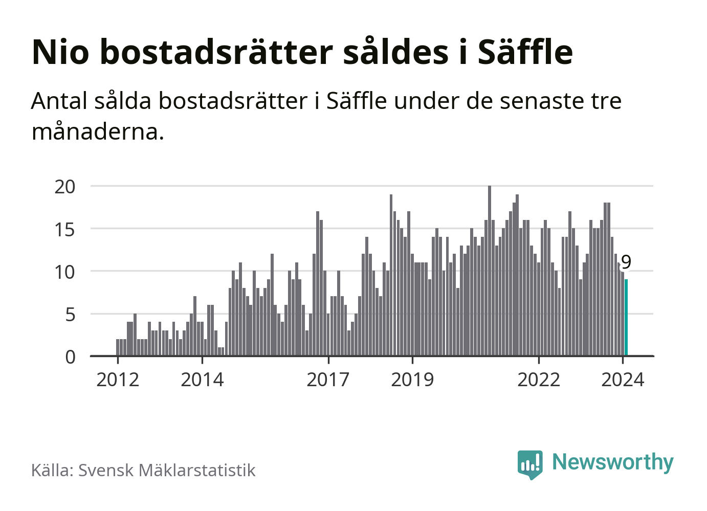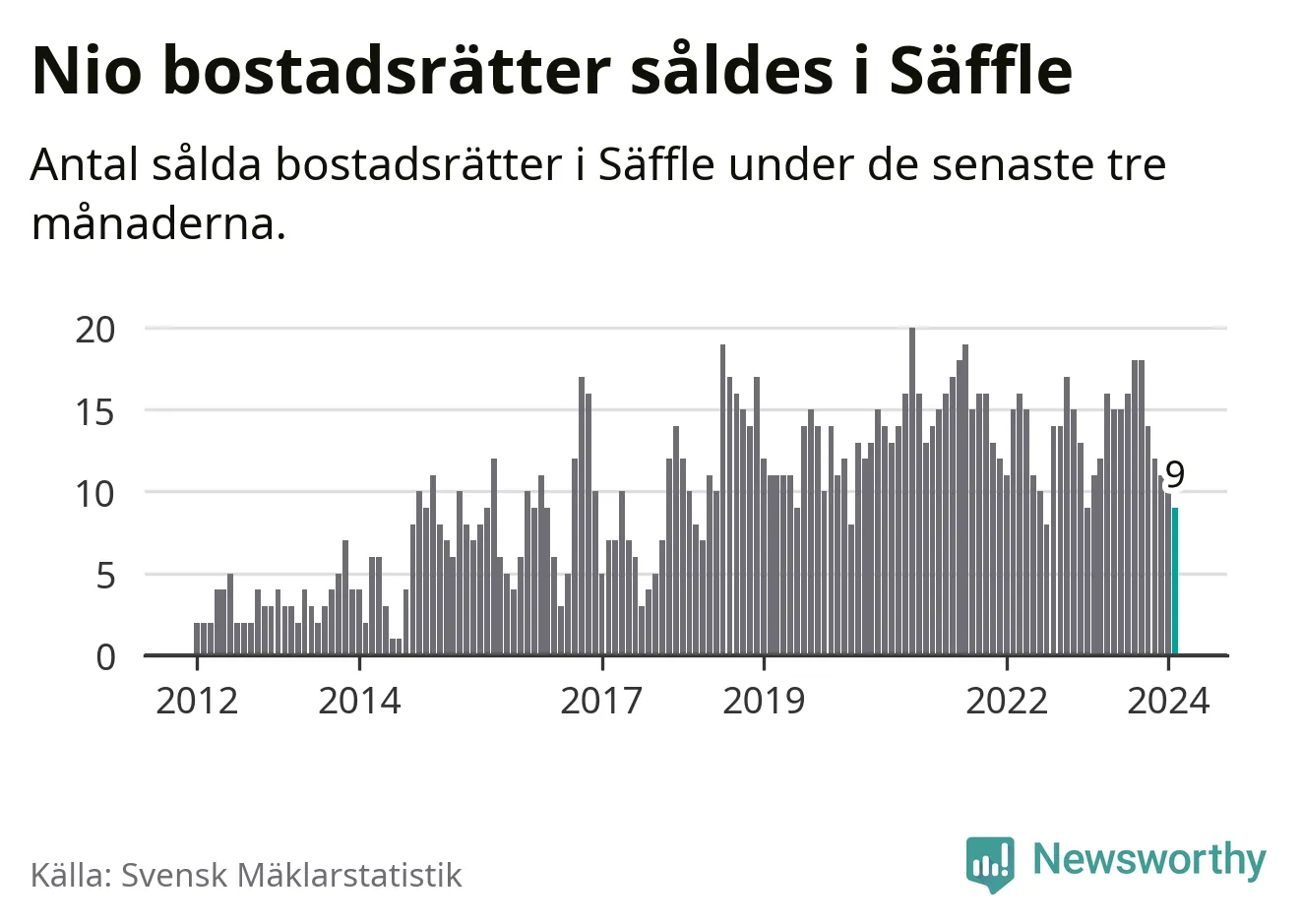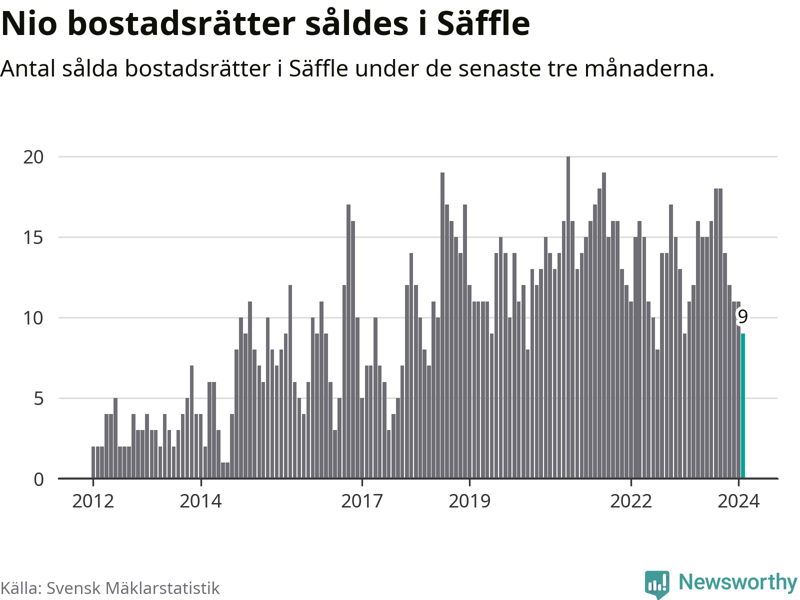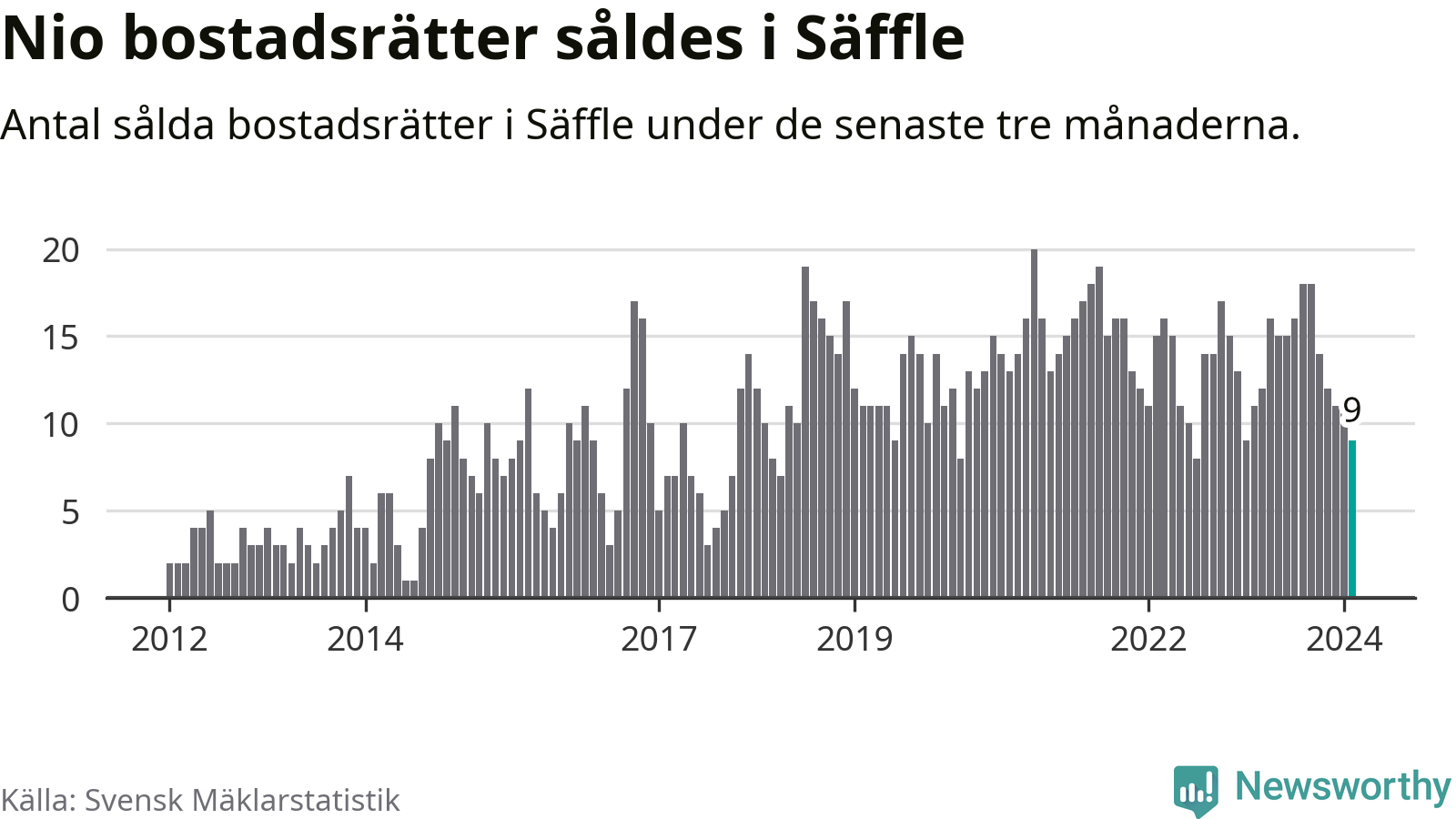 Mellan december och februari gjordes sammanlagt nio affärer med bostadsrätter i Säffle kommun. Det kan jämföras med elva vid motsvarande tid i fjol.