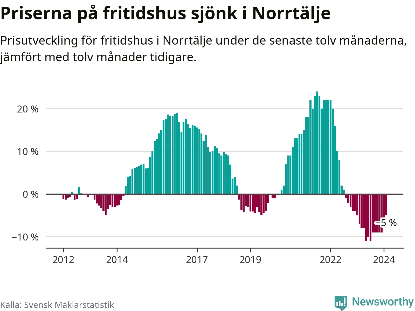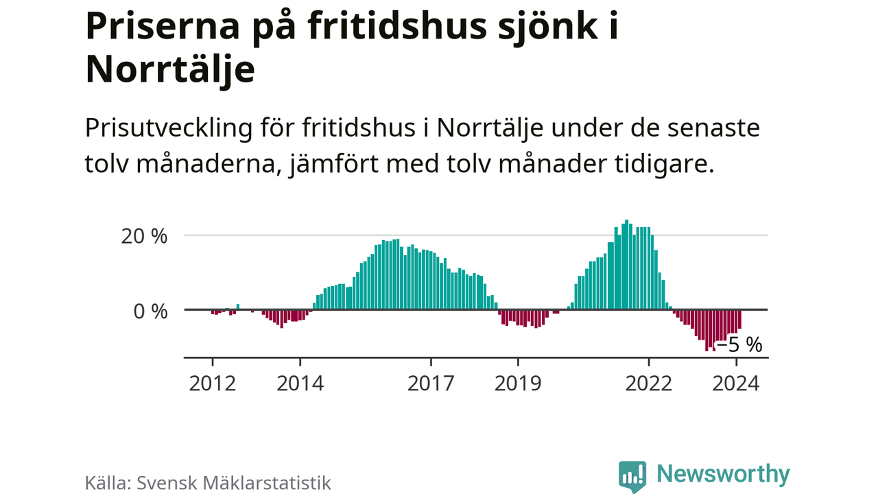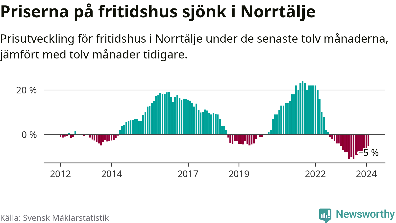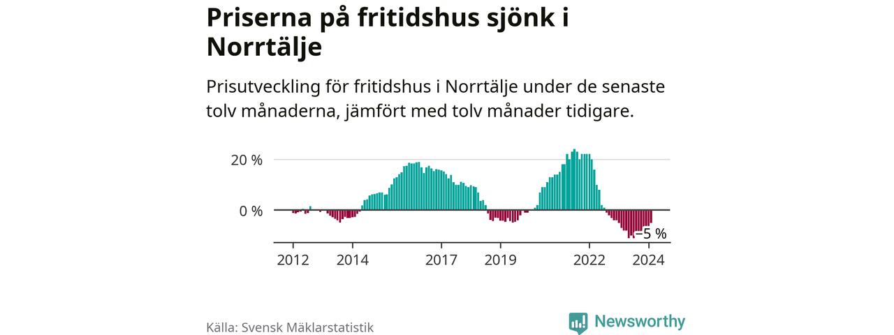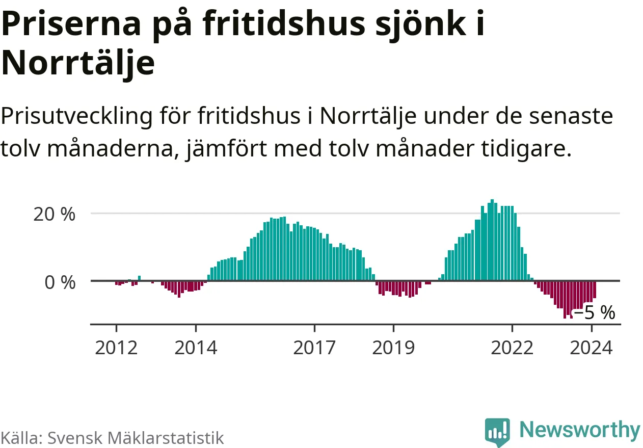 Priserna på fritidshus har gått ner i Norrtälje kommun. Medelpriset på försäljningarna under de senaste tolv månaderna visar på en nedgång med 5 procent.