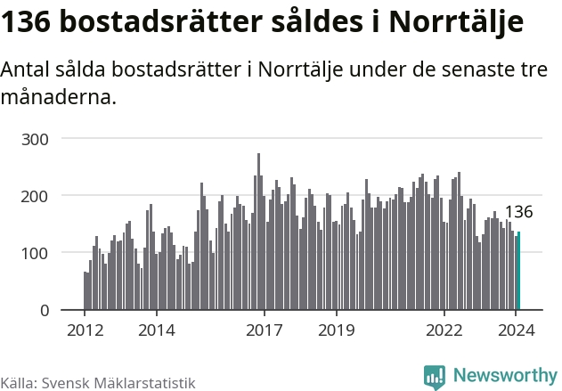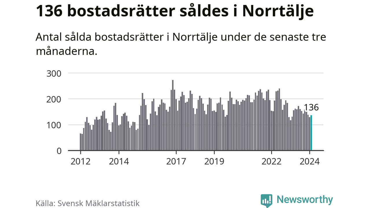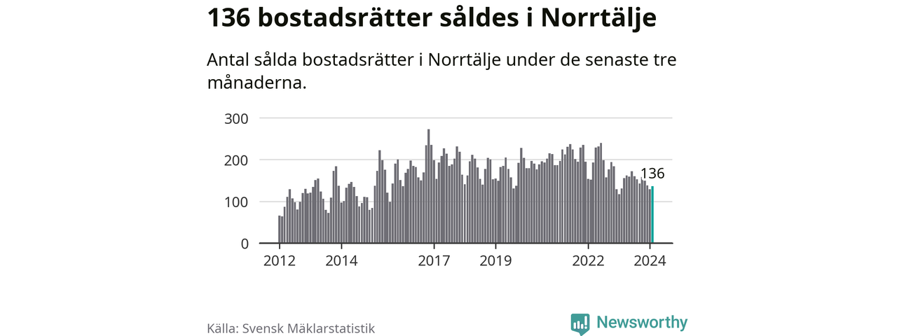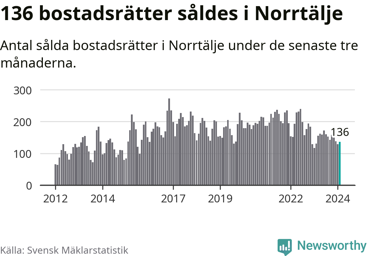 Norrtälje | +1 % ▲ | 136 | 1,9 miljoner |