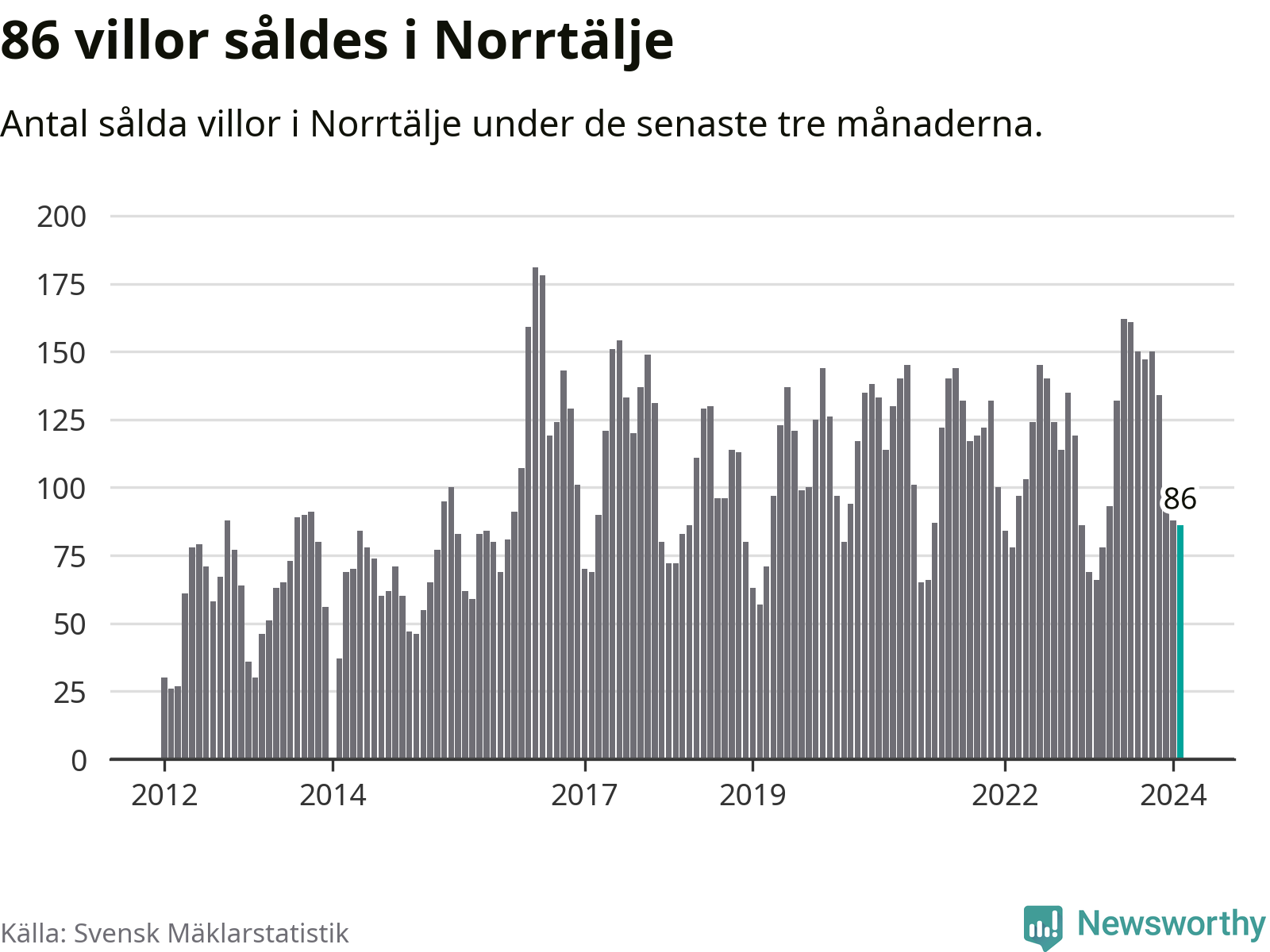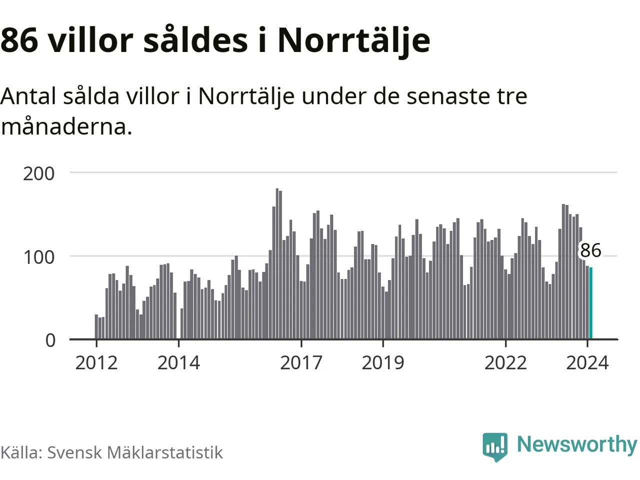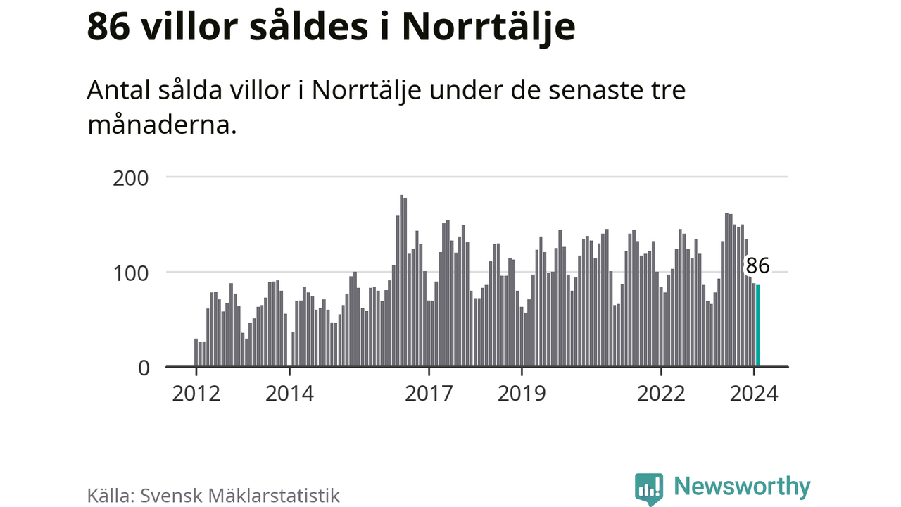 Sammanlagt såldes 86 villor i Norrtälje kommun mellan december och februari till ett genomsnittligt pris på 3,6 miljoner kronor. I fjol gjordes 66 affärer vid den här tiden på året.