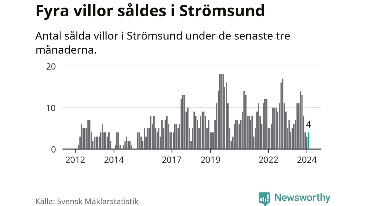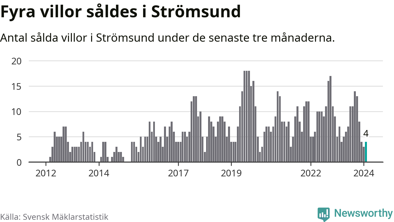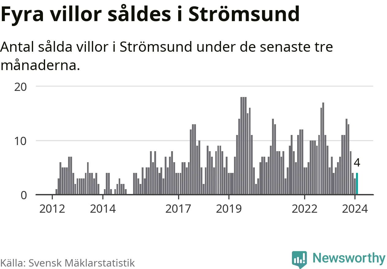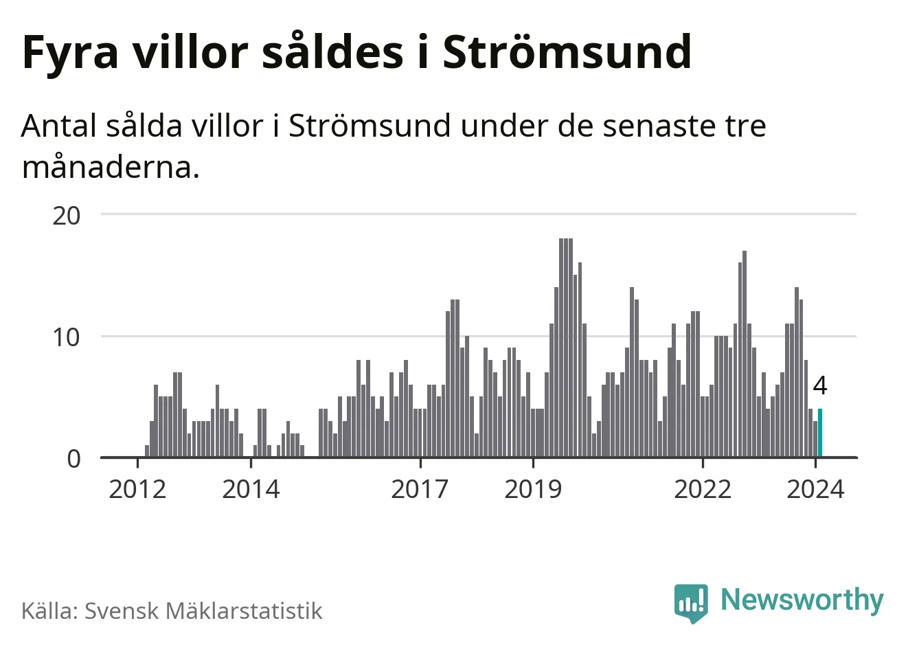 Mellan december och februari gjordes sammanlagt fyra affärer med villor i Strömsunds kommun. Det kan jämföras med sju vid motsvarande tid i fjol.