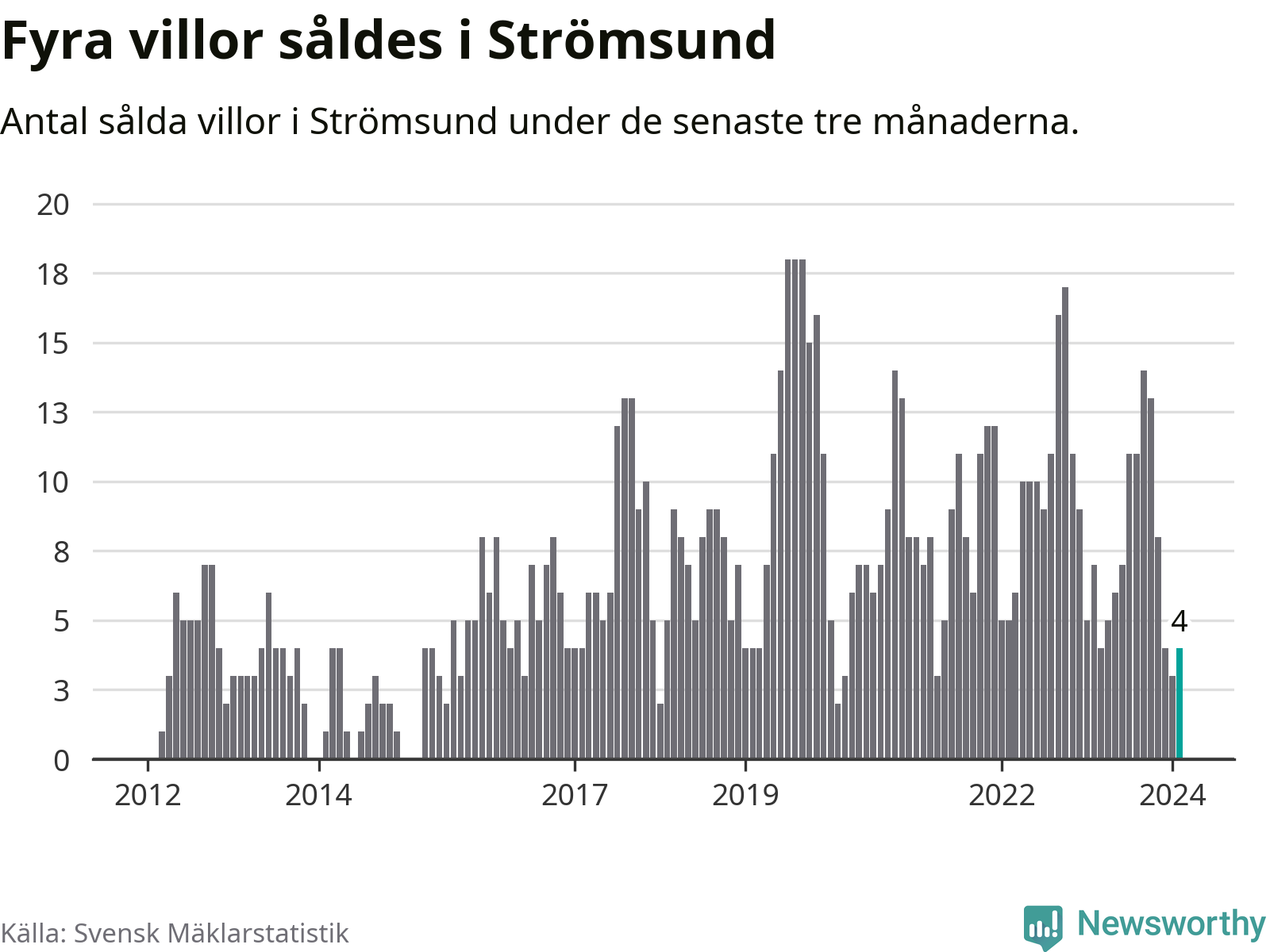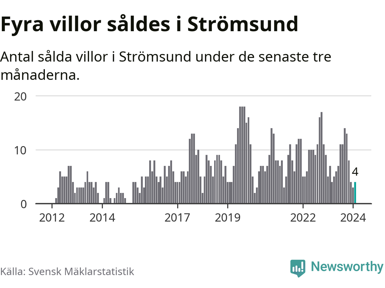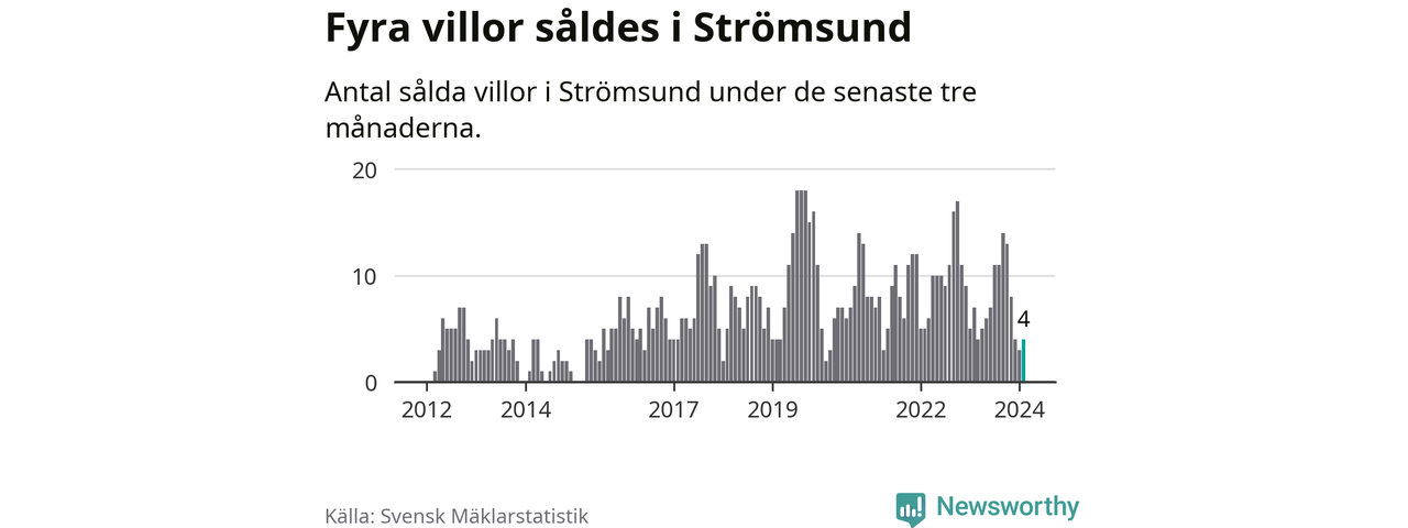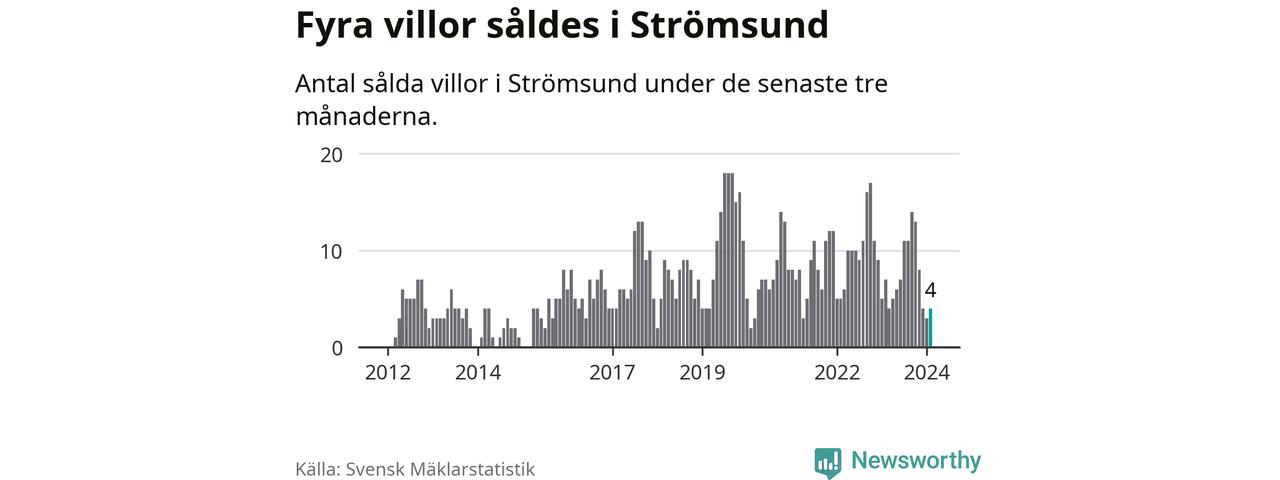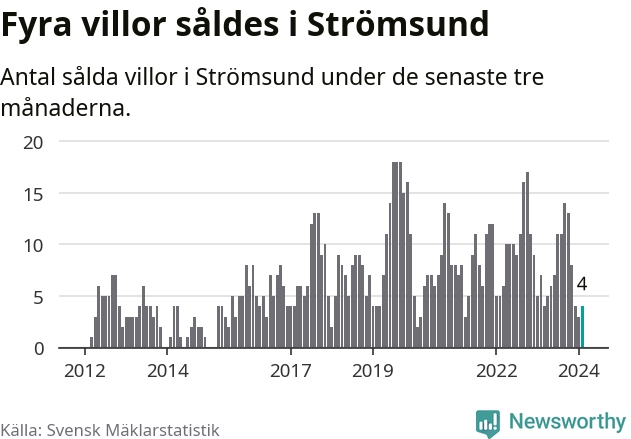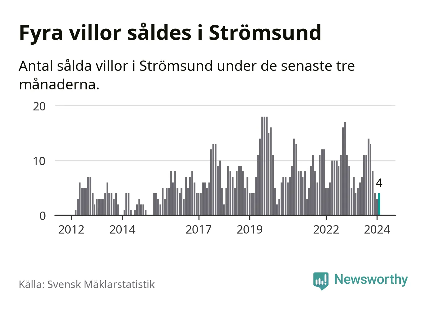 Mellan december och februari gjordes sammanlagt fyra affärer med villor i Strömsunds kommun. Det kan jämföras med sju vid motsvarande tid i fjol.
