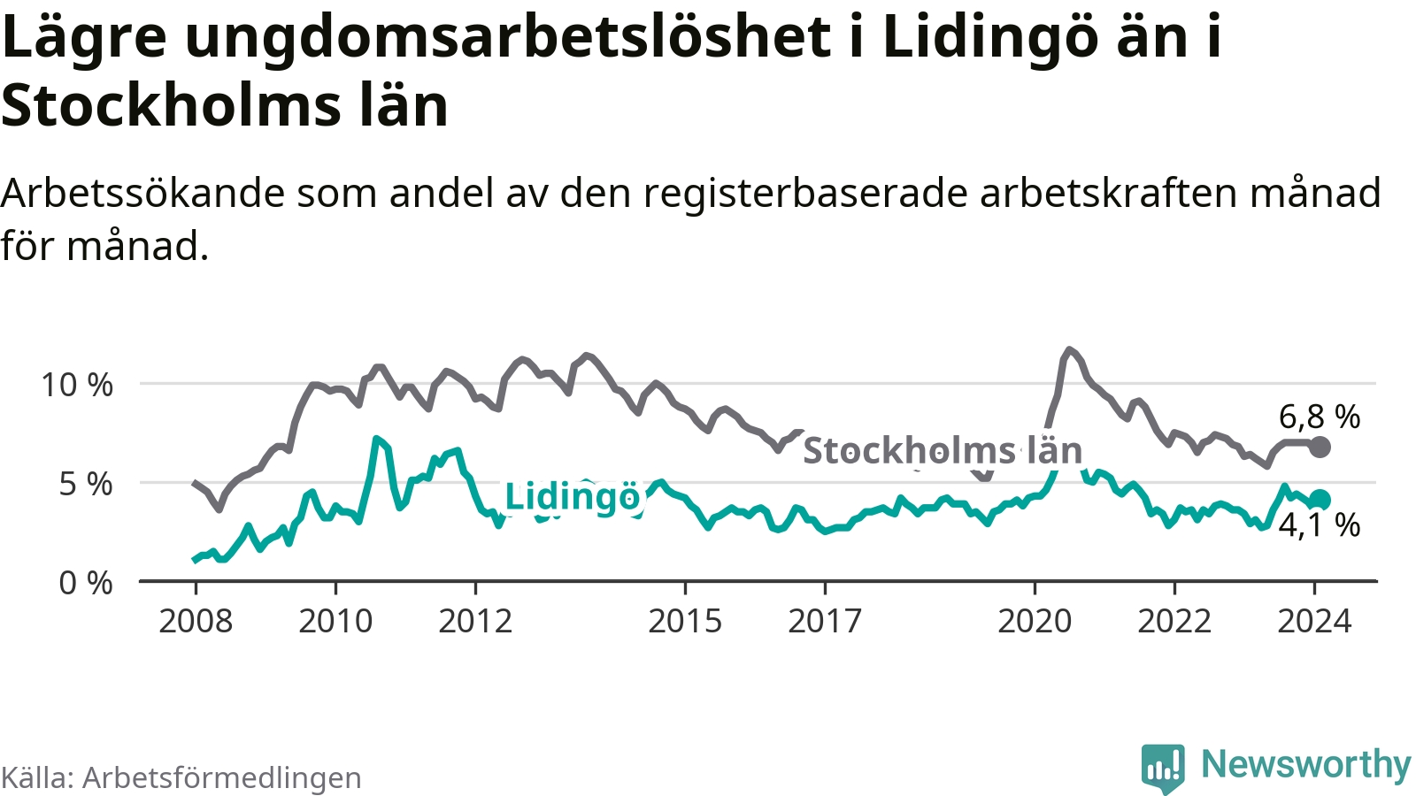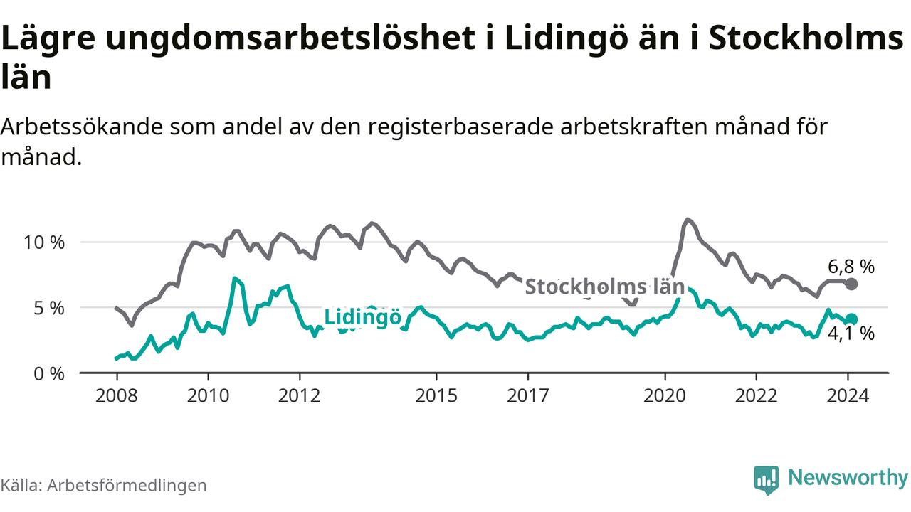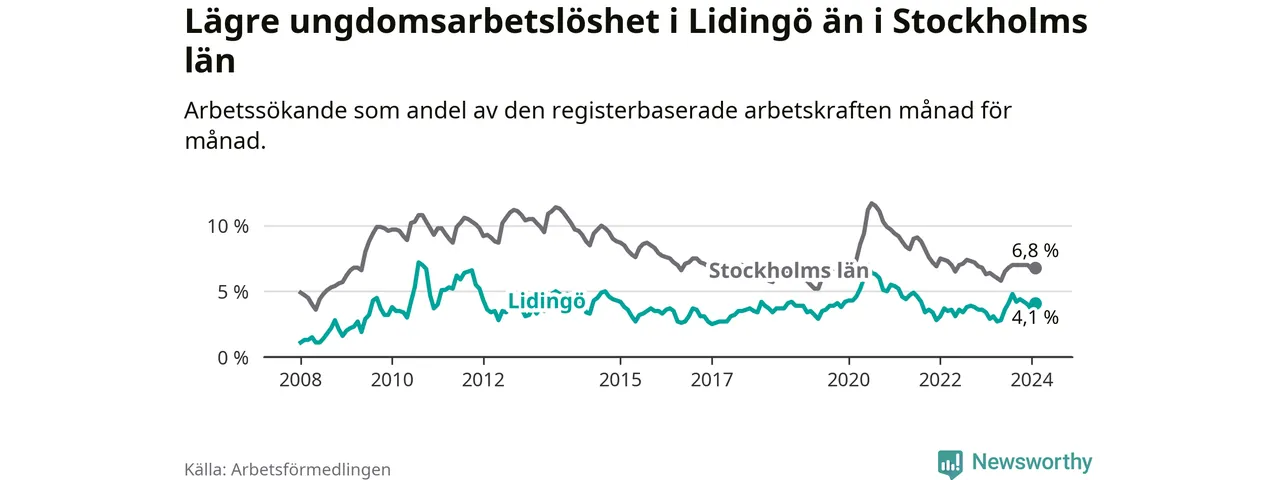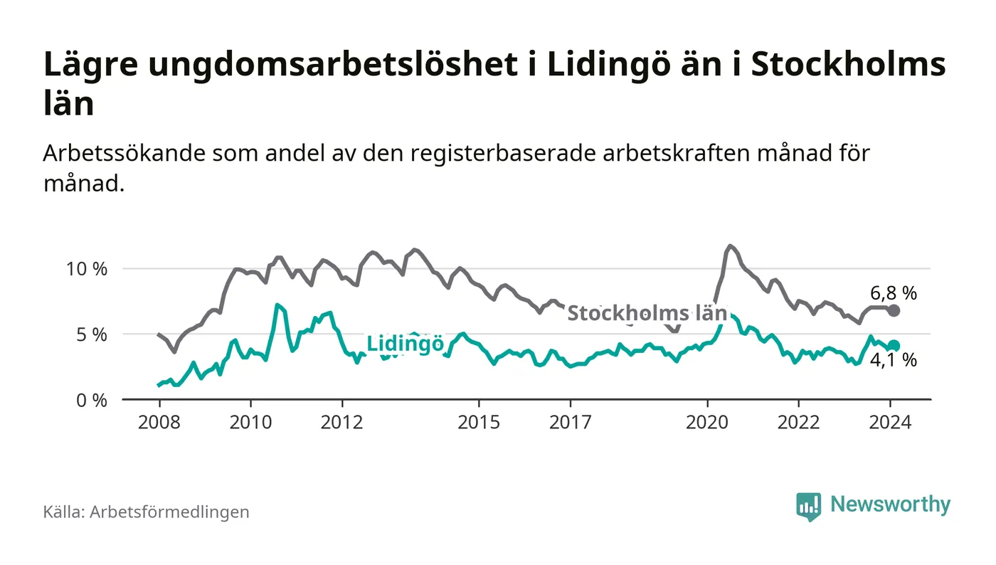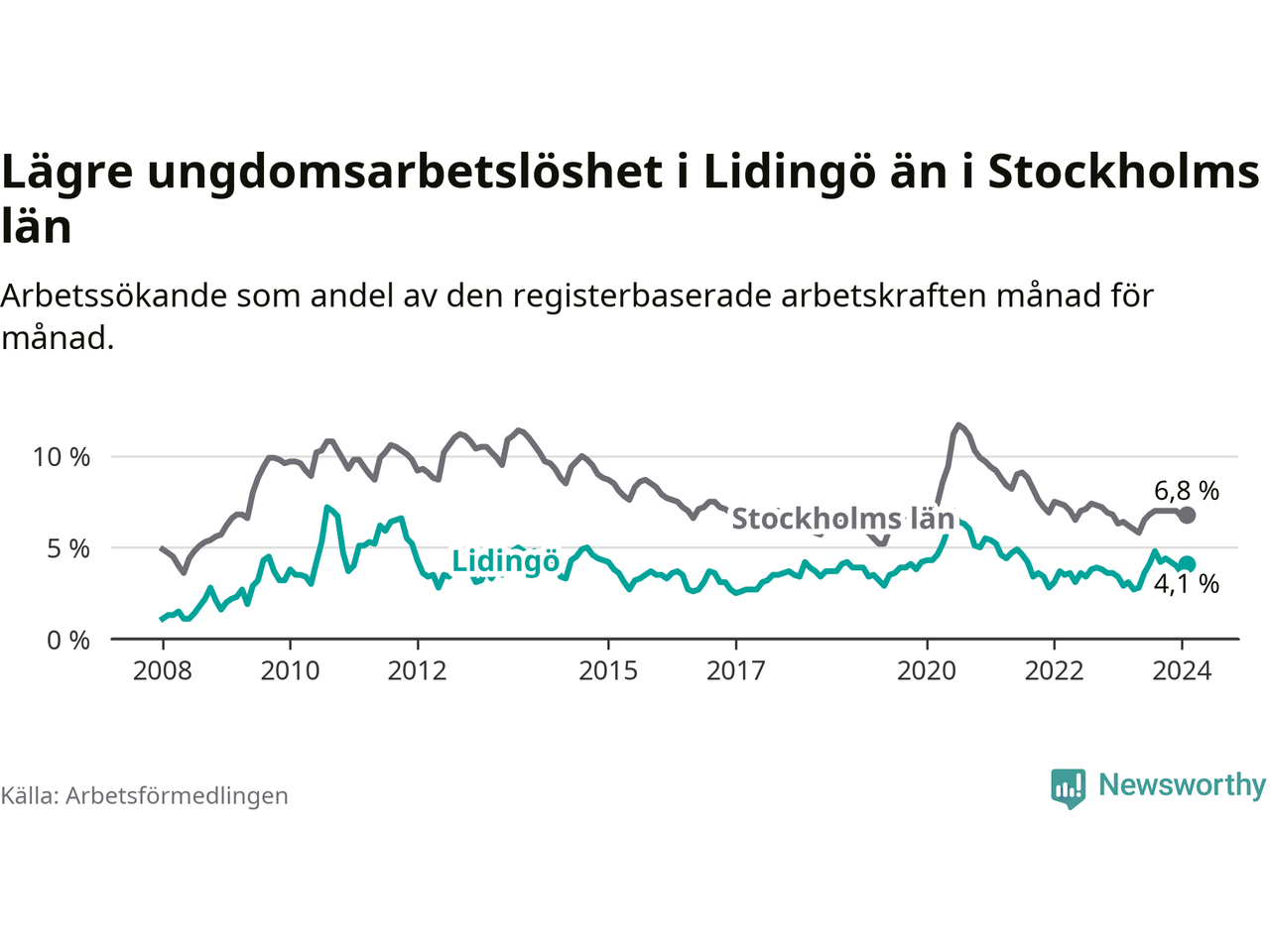 21 av 26 kommuner i Stockholms län såg en ökande ungdomsarbetslöshet i februari. Lidingö var en av de kommuner i länet där ökningen var störst.