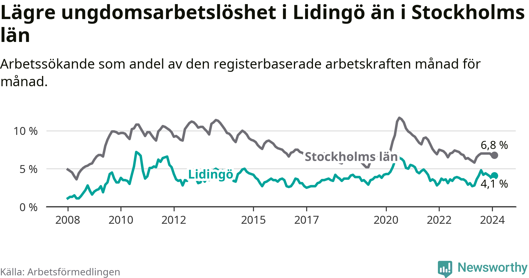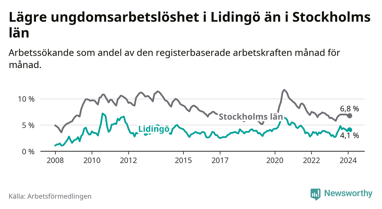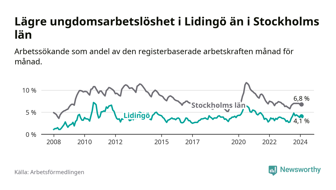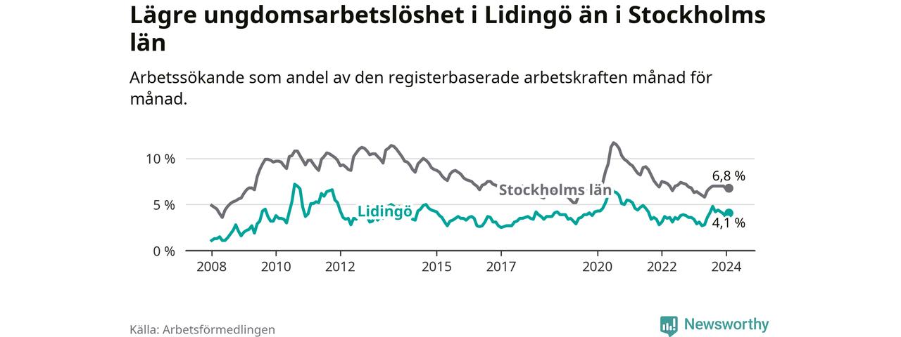 21 av 26 kommuner i Stockholms län såg en ökande ungdomsarbetslöshet i februari. Lidingö var en av de kommuner i länet där ökningen var störst.