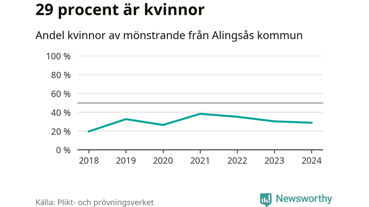 Av de som skrivits in till någon av Försvarmaktens grundutbildningar det senaste året, från juni 2023 till mars i år, kommer 30 (26 män och fyra kvinnor) från Alingsås. 29 av dessa antogs efter att ha kallats till mönstring.
