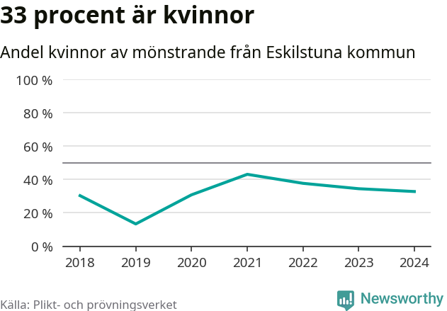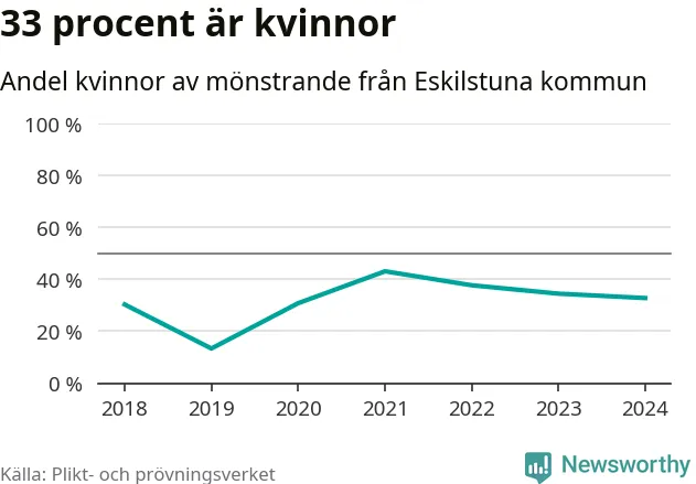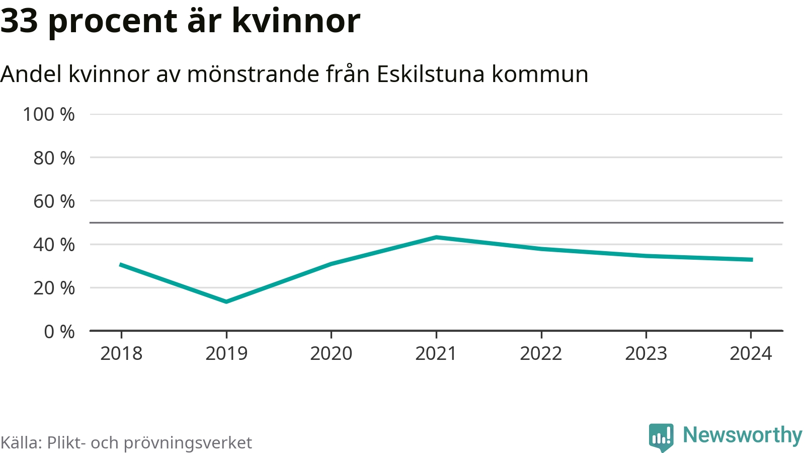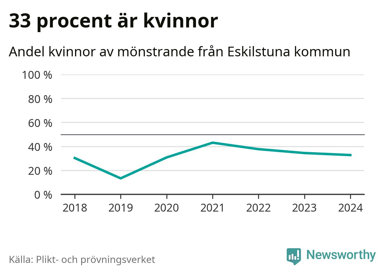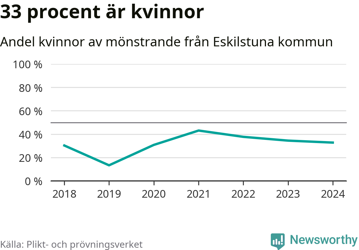 Av de som skrivits in till någon av Försvarmaktens grundutbildningar det senaste året, från juni 2023 till mars i år, kommer 59 (46 män och 13 kvinnor) från Eskilstuna. 49 av dessa antogs efter att ha kallats till mönstring.