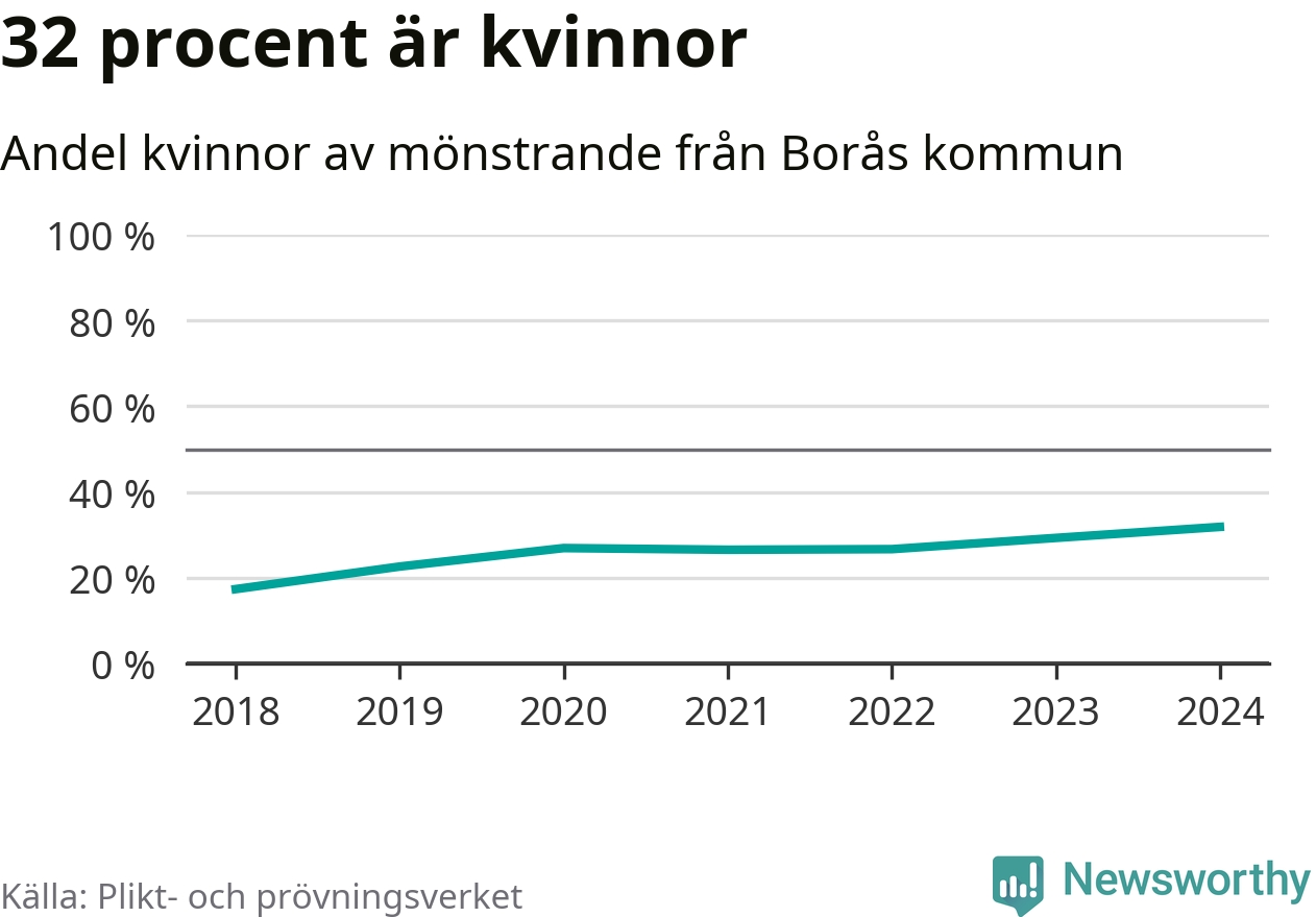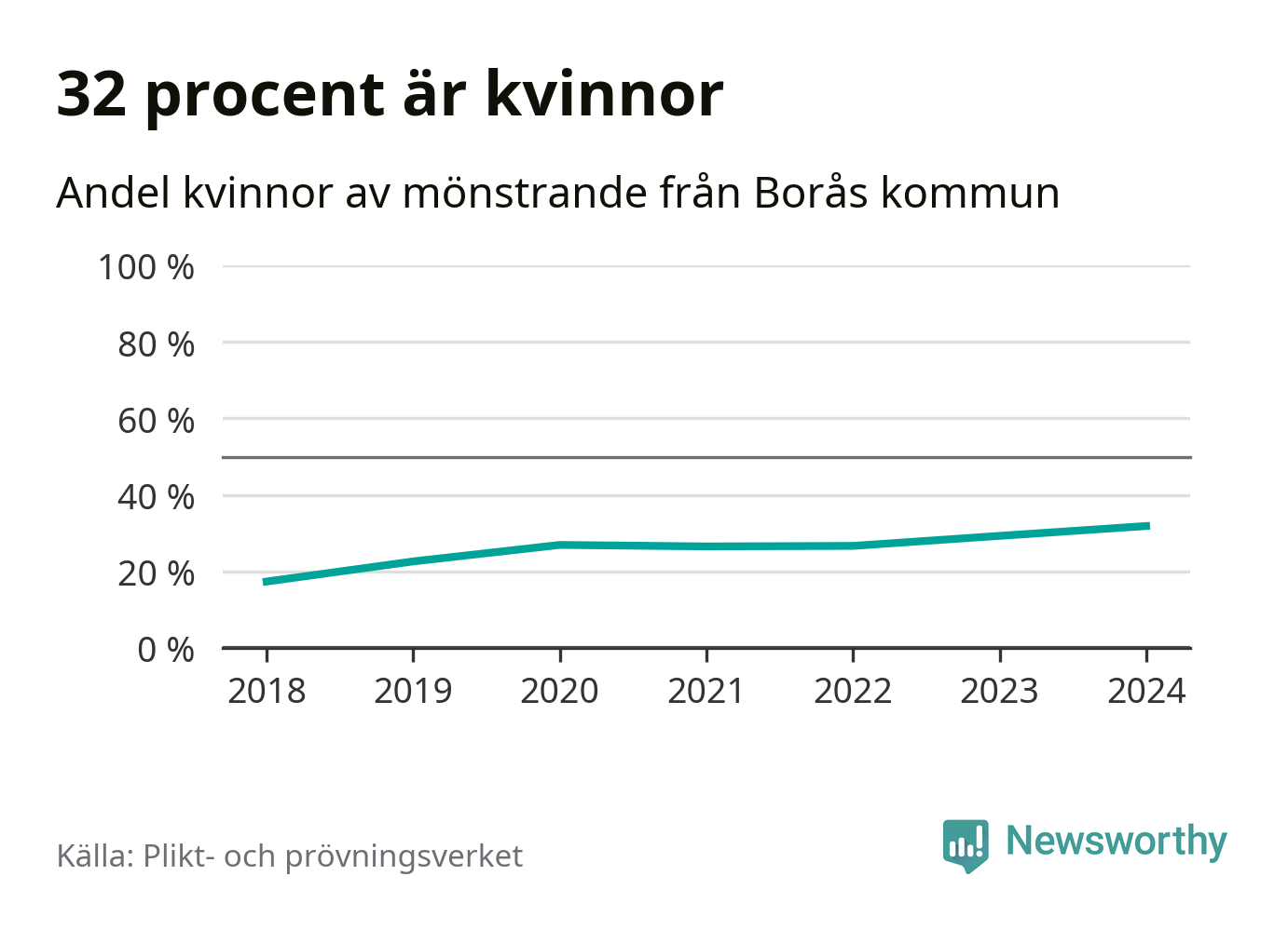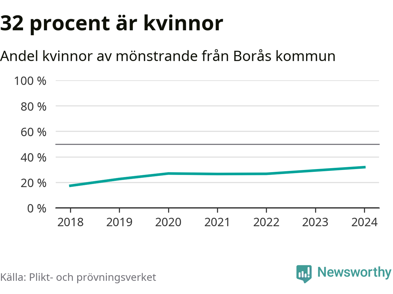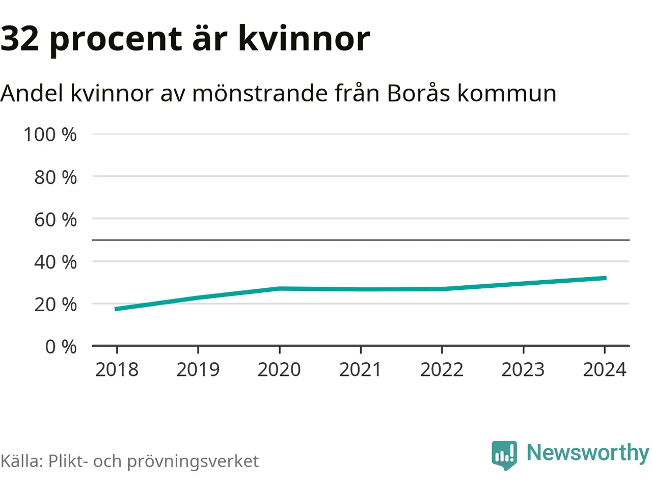 32 procent av 18-åringarna som kallas till mönstring från Borås kommun är kvinnor. Så många har de inte varit sedan värnplikten återinfördes.