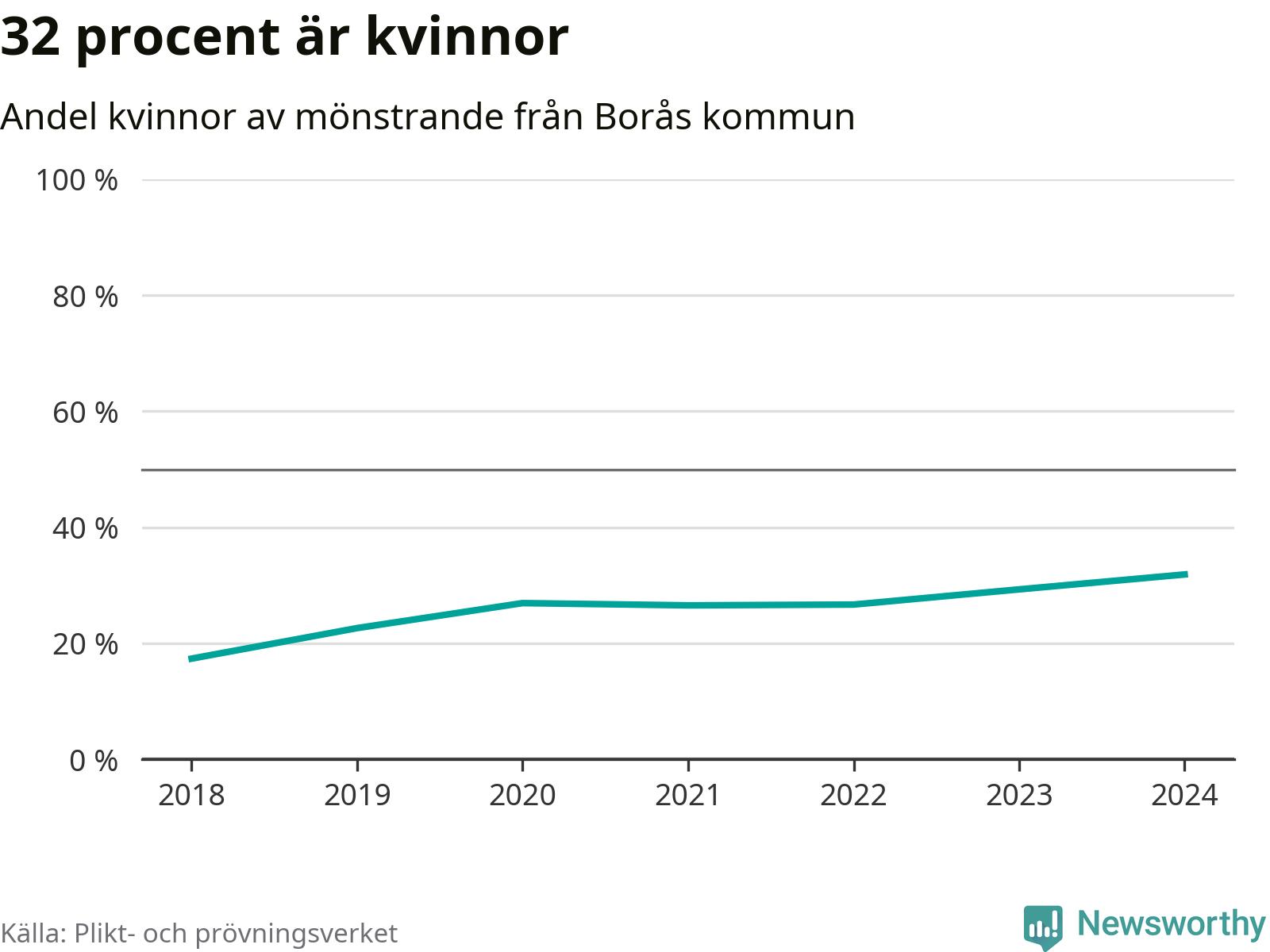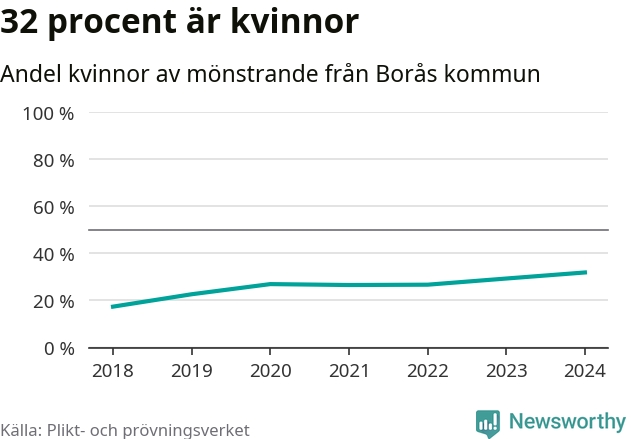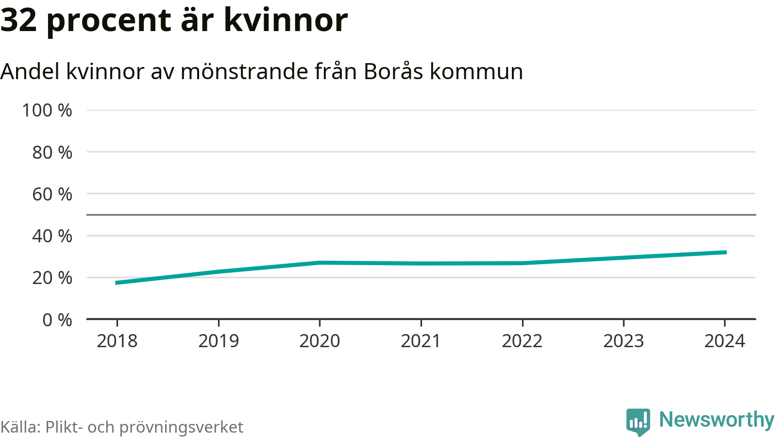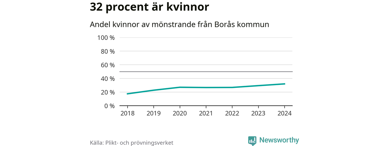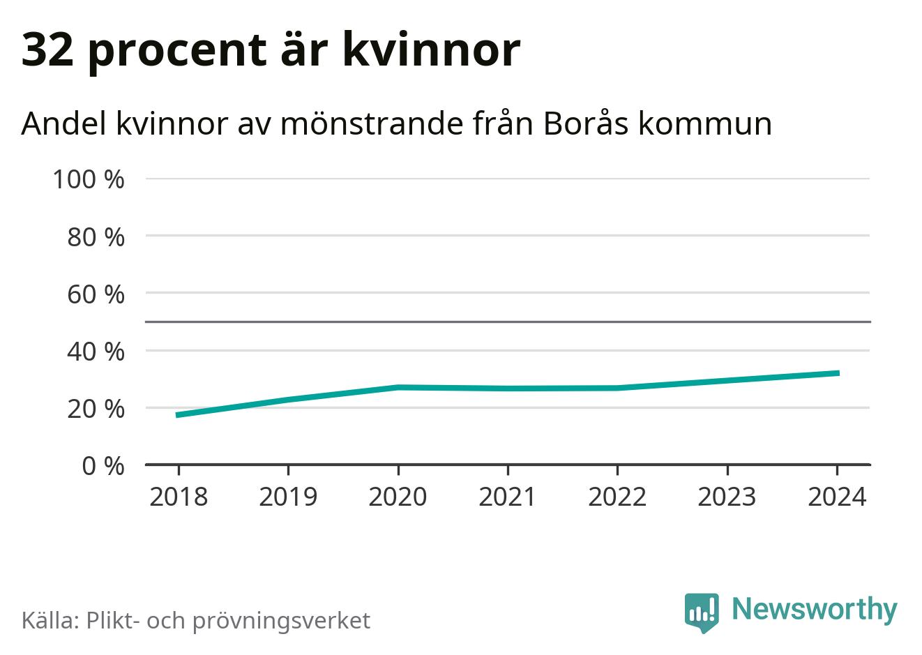 32 procent av 18-åringarna som kallas till mönstring från Borås kommun är kvinnor. Så många har de inte varit sedan värnplikten återinfördes.