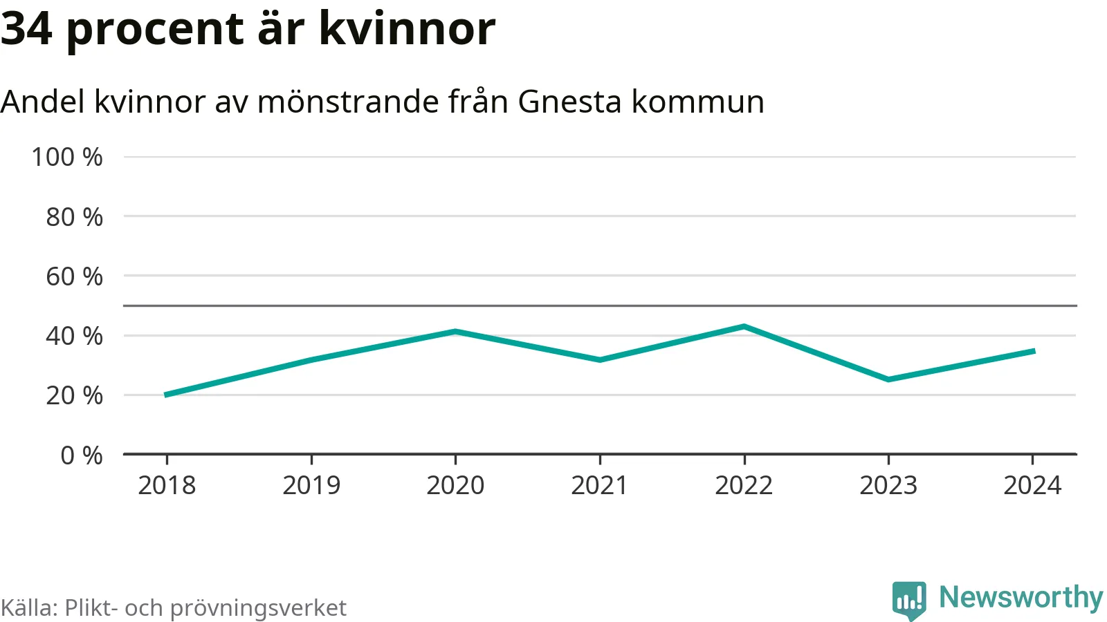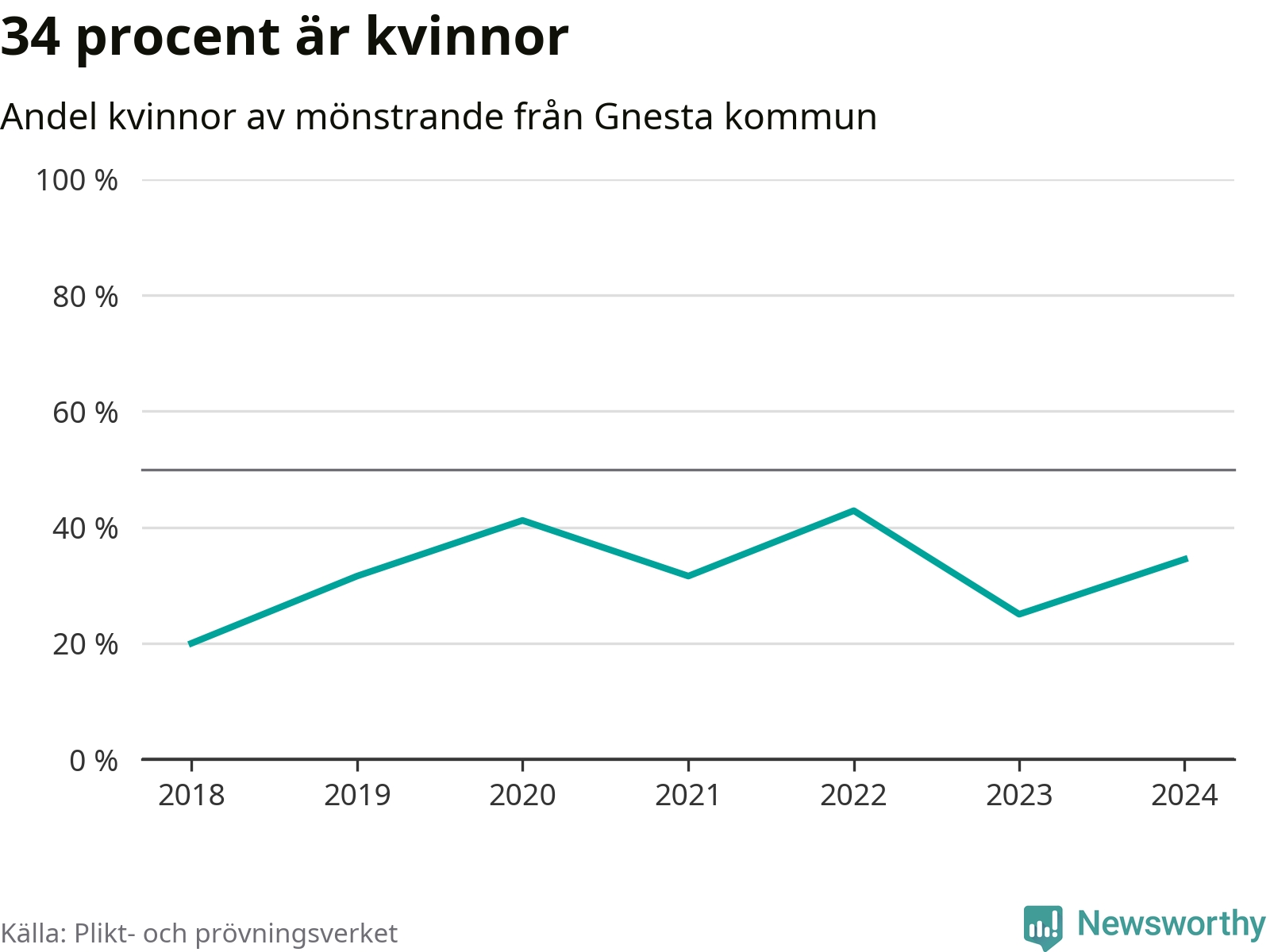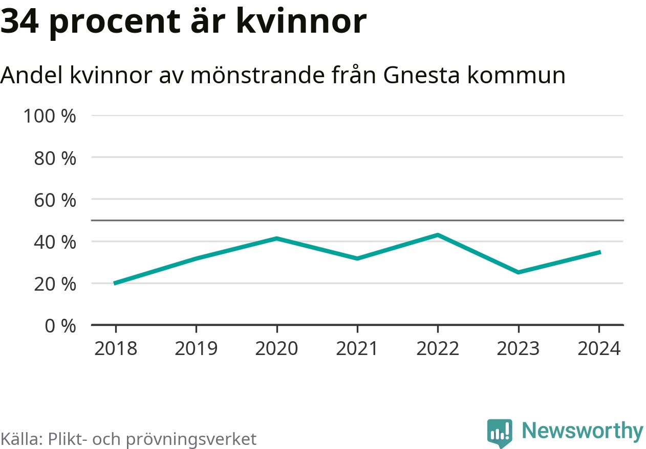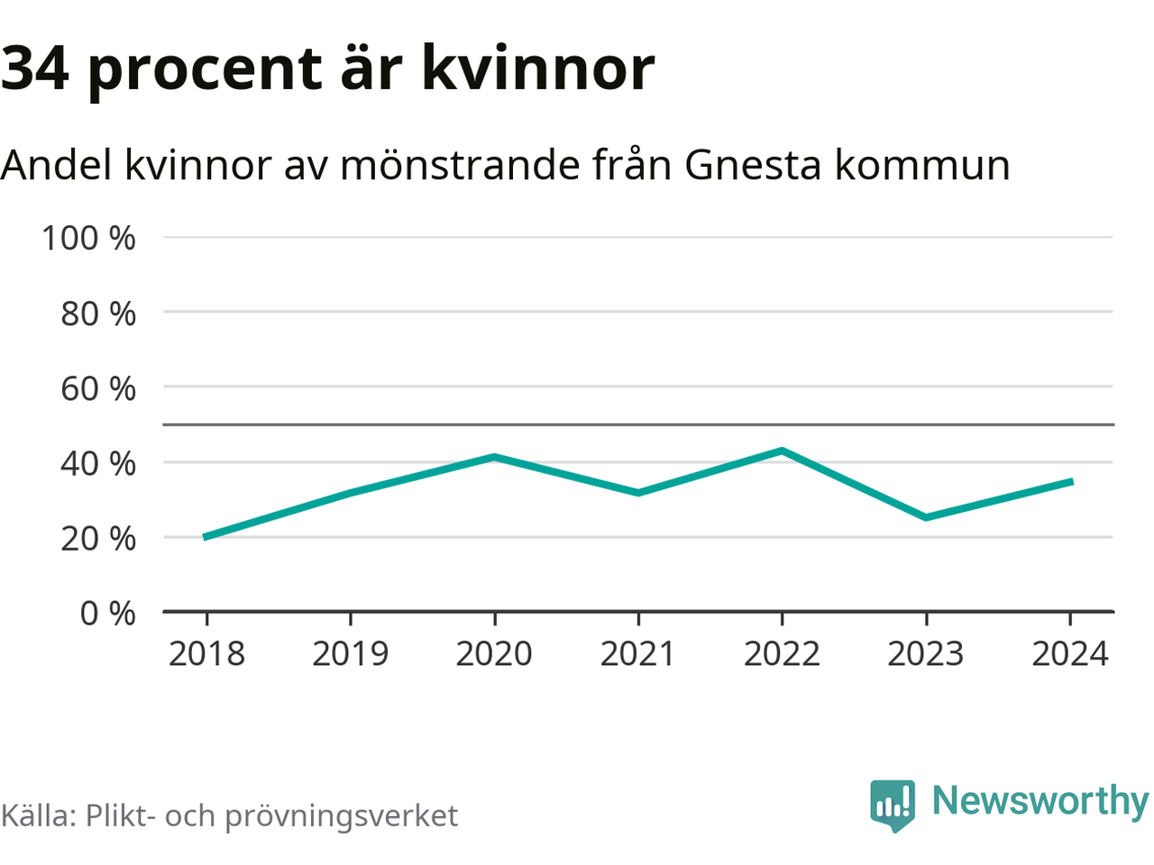 Tio av de som kallats till mönstring från Gnesta är kvinnor, vilket motsvarar 34 procent av de mönstrande. I absoluta tal är det fler kvinnor än något år sedan värnplikten återinfördes, men 2022 var en större andel av de mönstrande från kommunen kvinnor (43 procent). I riket som helhet är 30 procent av de mönstrande tjejer.