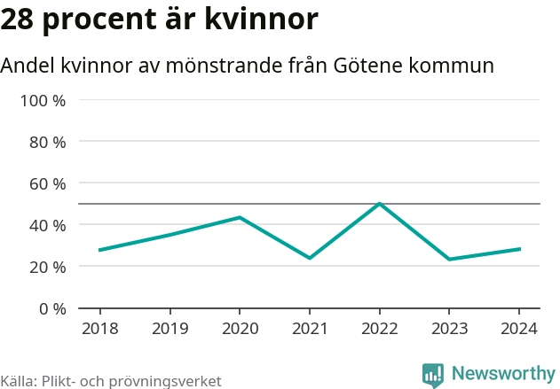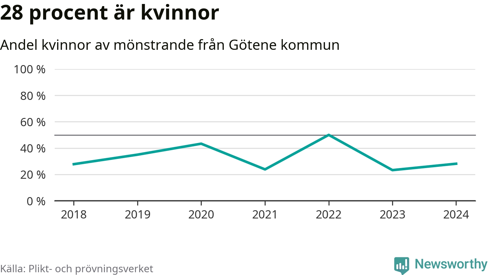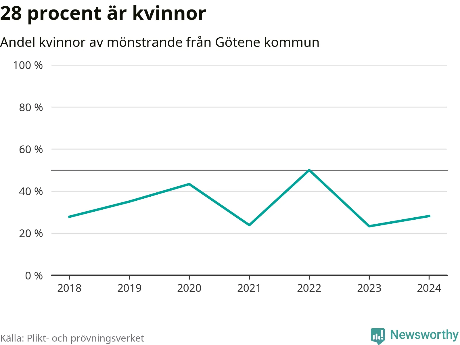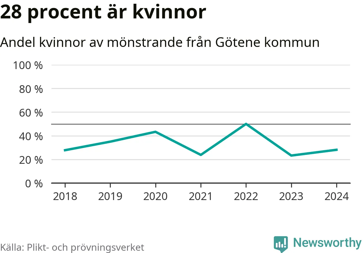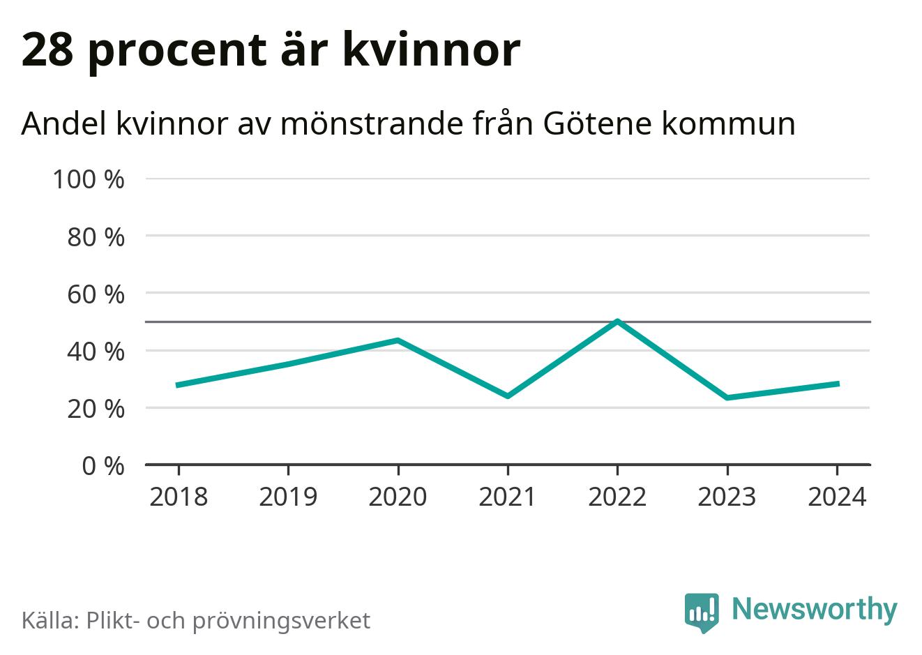 Nu kallas 27 900 svenskar födda 2006 till mönstring. Och 32 av dem kommer från Götene, enligt ny statistik från Plikt- och prövningsverket. Det innebär att nästan var fjärde invånare i åldersgruppen i kommunen kallas till mönstring. Det är ungefär lika stor andel som i Västra Götaland totalt. Även i riket som helhet kallas nästan var fjärde person i årskullen.