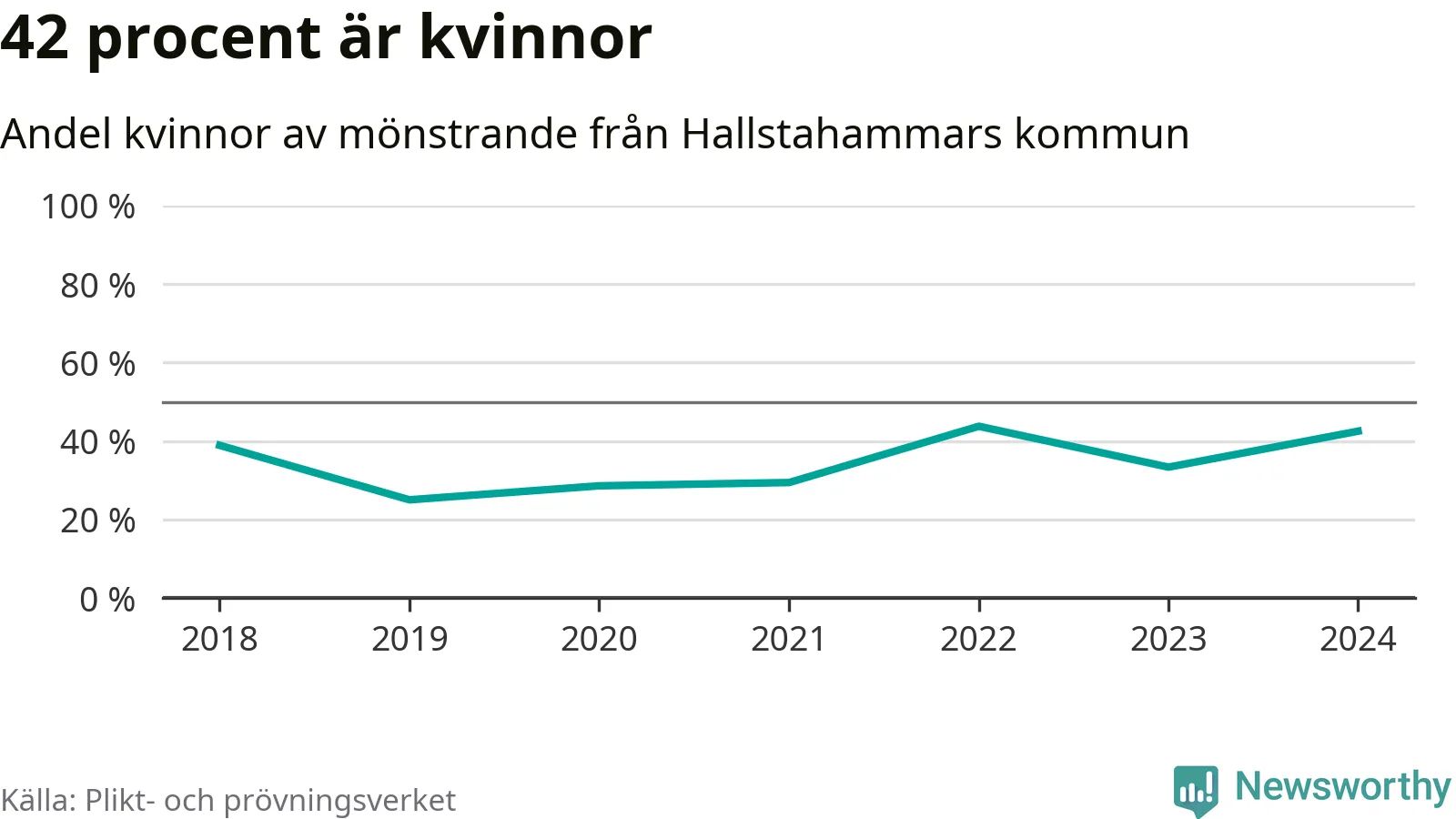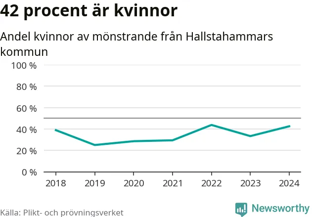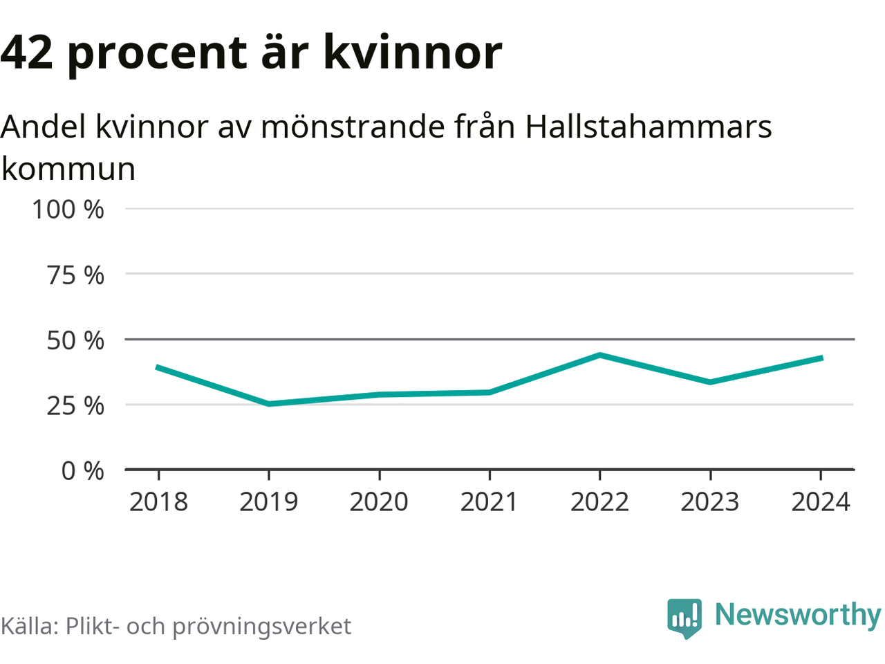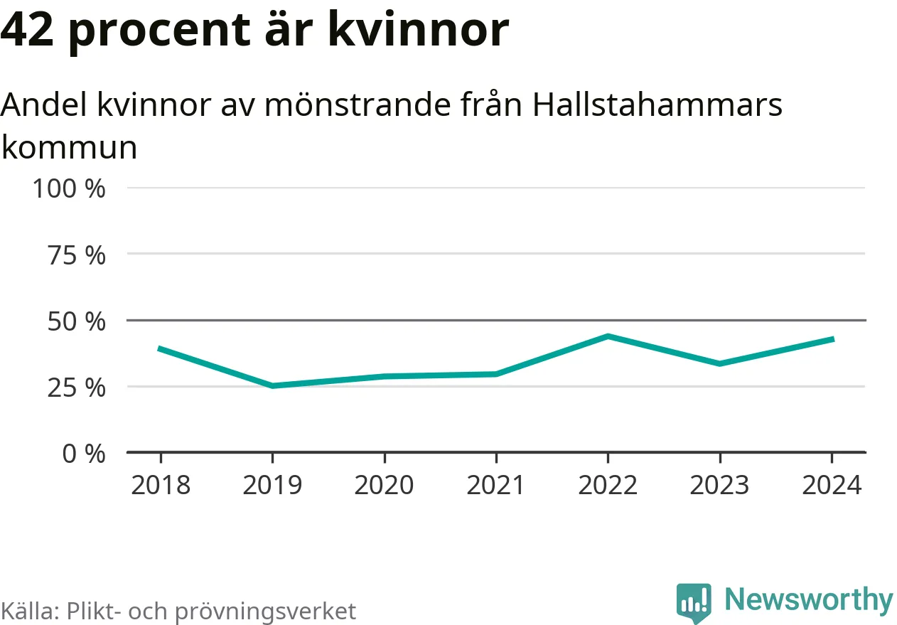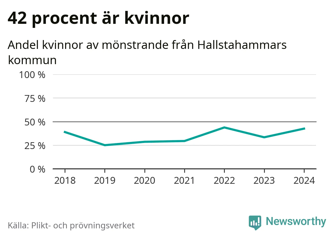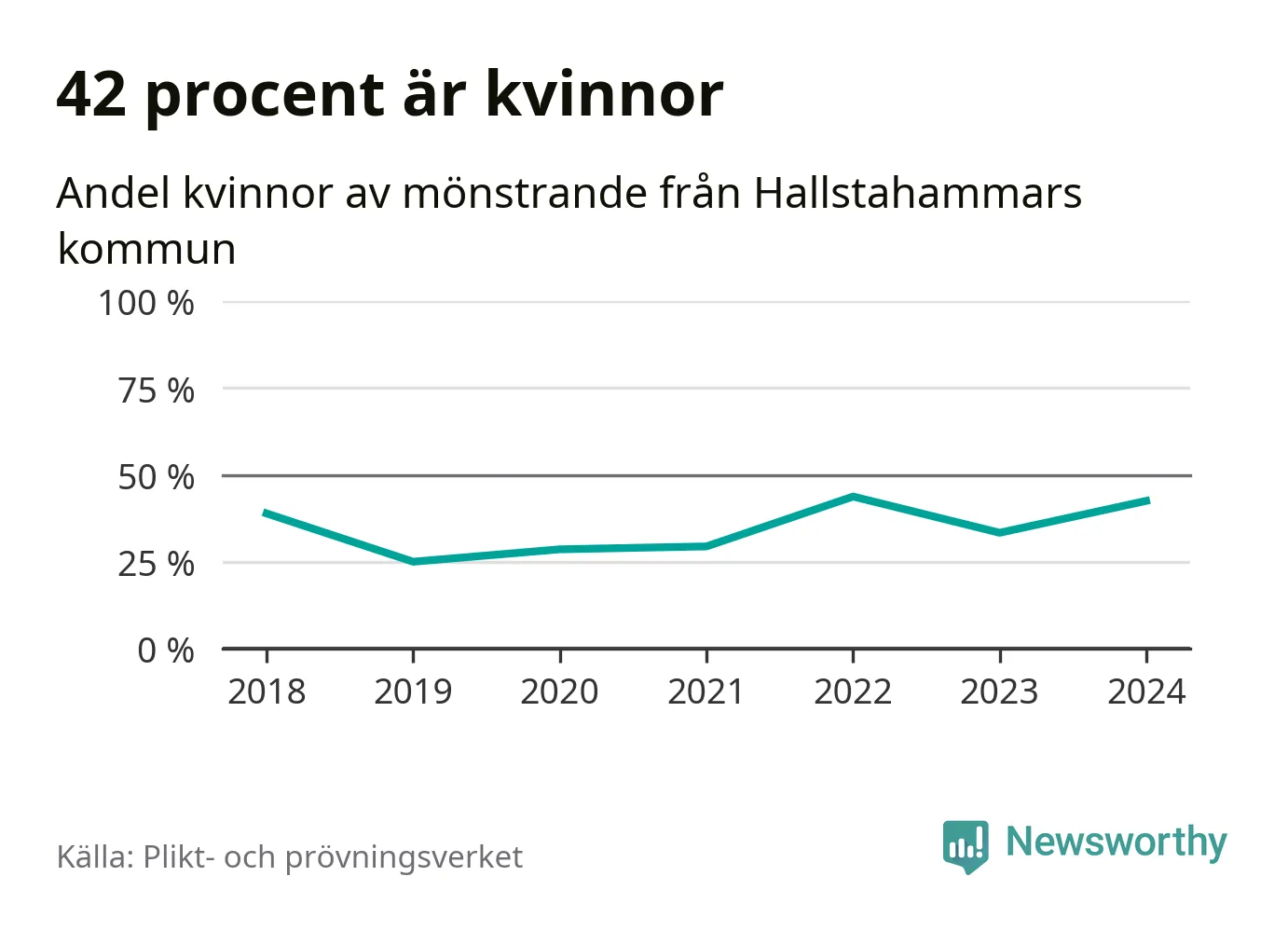 40 personer är det högsta antalet kallade i Hallstahammar sedan 2018, som är första året med statistik på kommunnivå (värnplikten återinfördes 2017), och 13 mönstrande mer än 2023. 2018 kallades som jämförelse 18 artonåringar från Hallstahammar till mönstring. Det motsvarade ungefär 10 procent av årskullen född år 2000. Totalt från Västmanlands län kallas 717 personer födda 2006 i år.