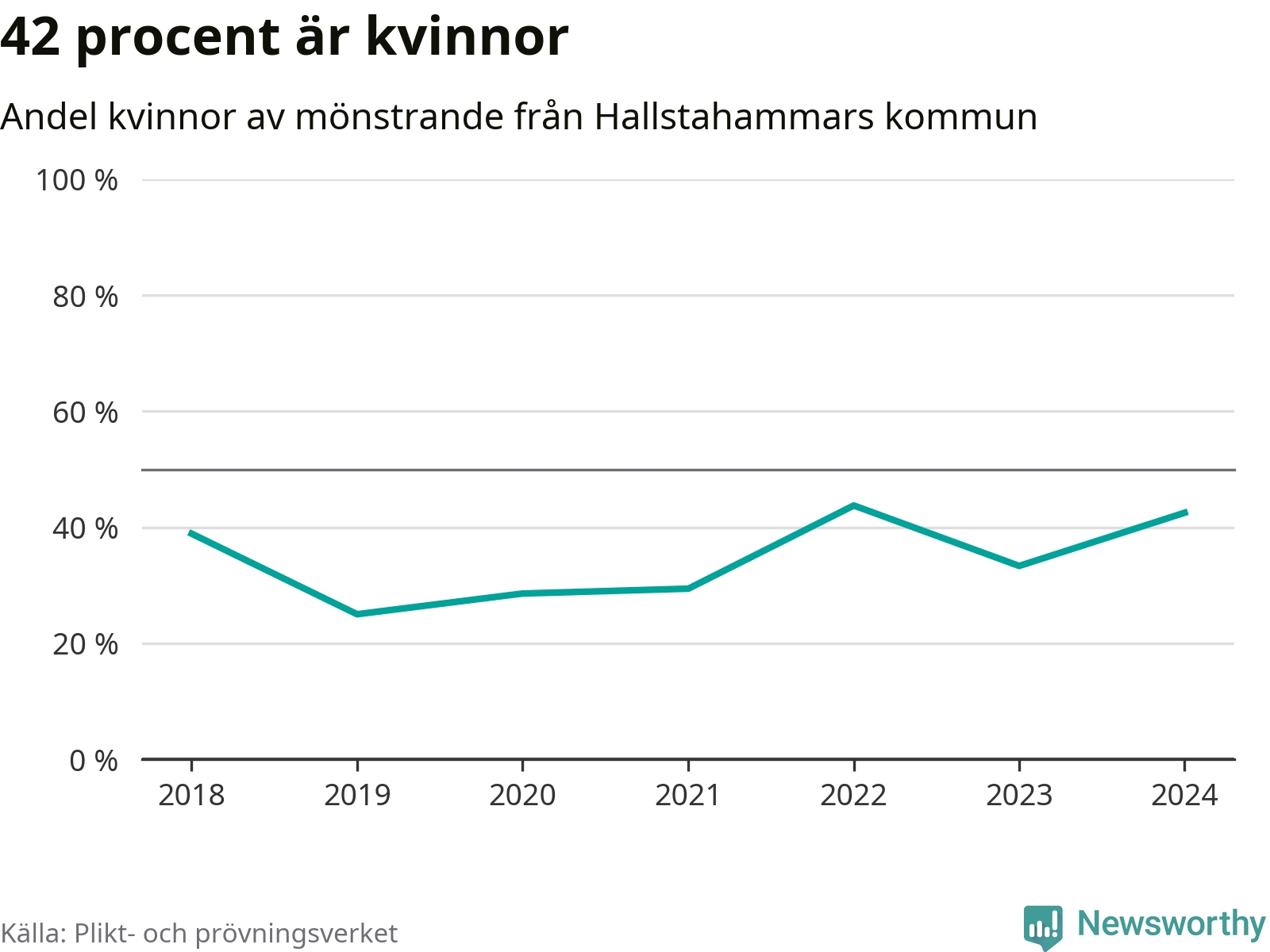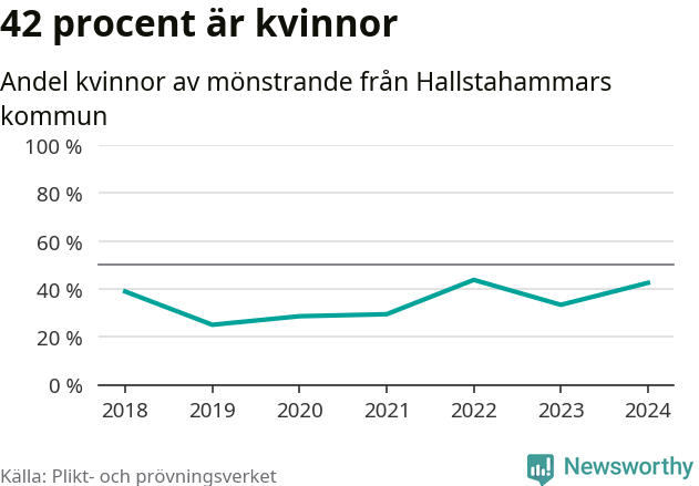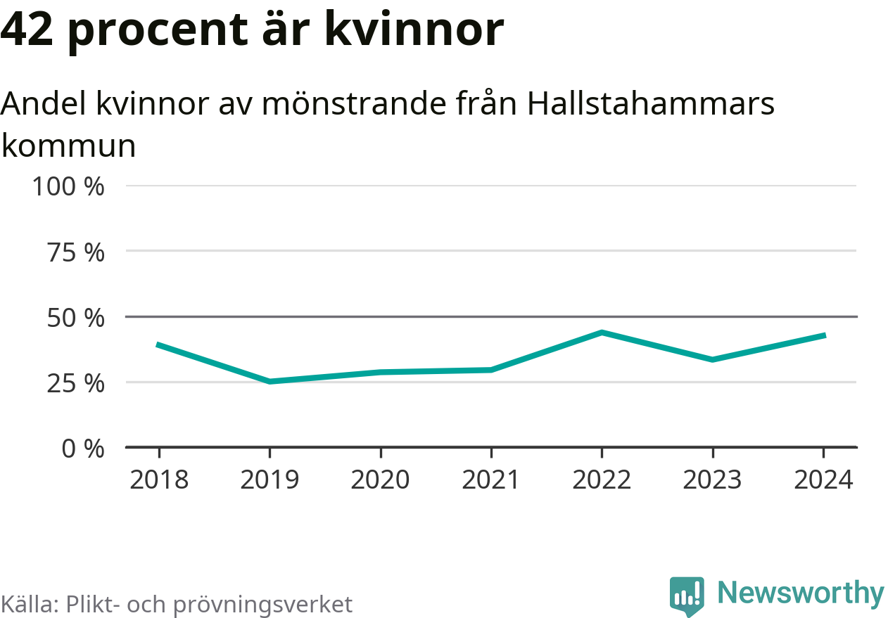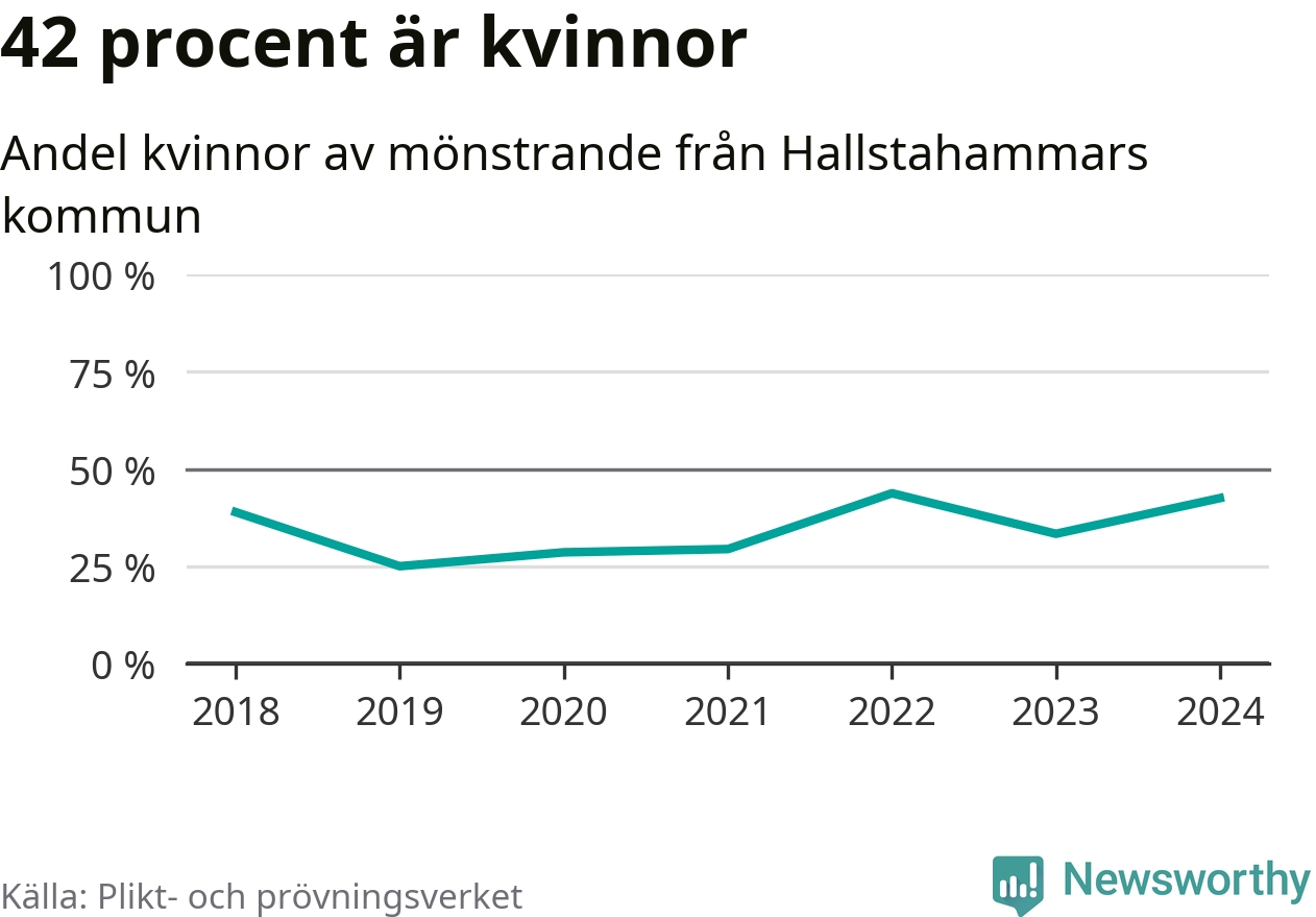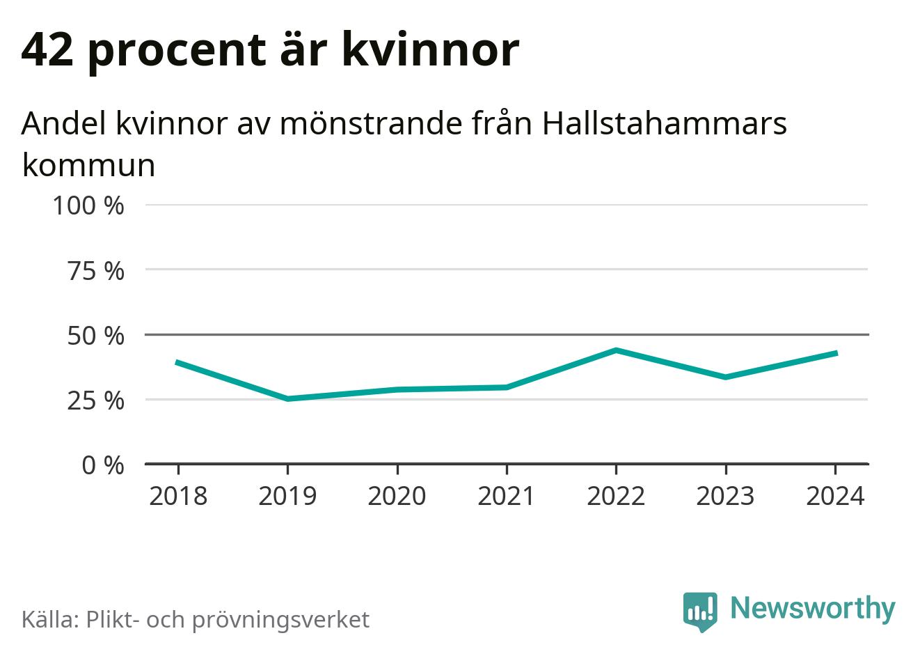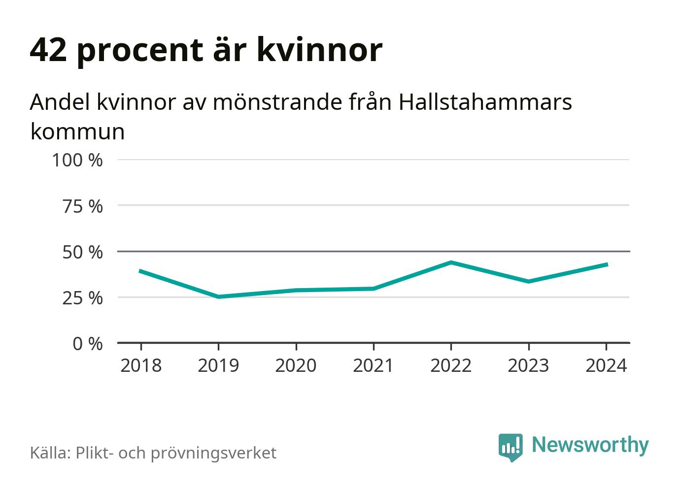 17 av de som kallats till mönstring från Hallstahammar är kvinnor, vilket motsvarar 43 procent av de mönstrande. I absoluta tal är det fler kvinnor än något år sedan värnplikten återinfördes, men 2022 var en större andel av de mönstrande från kommunen kvinnor (44 procent). I riket som helhet är 30 procent av de mönstrande tjejer.