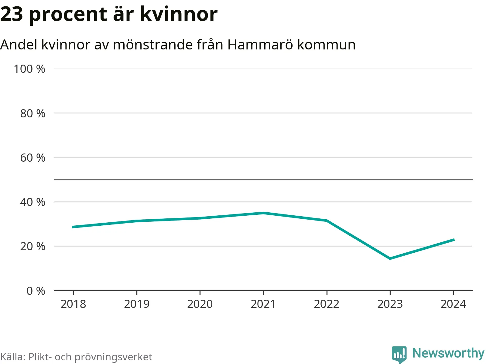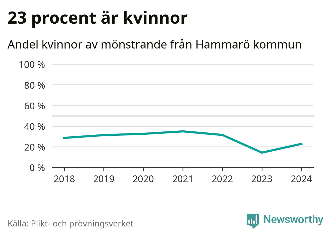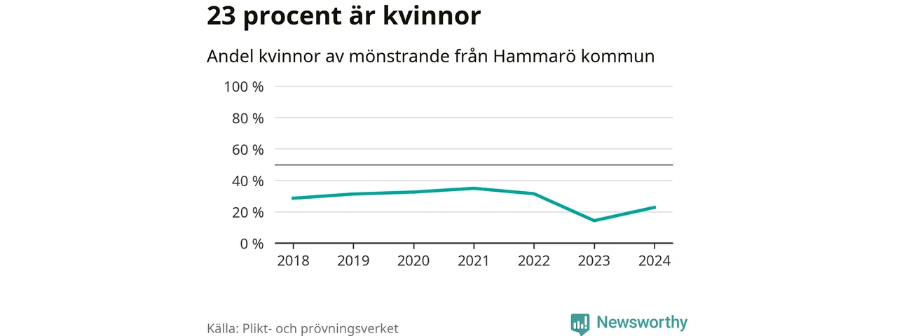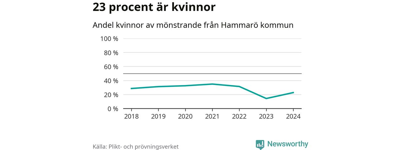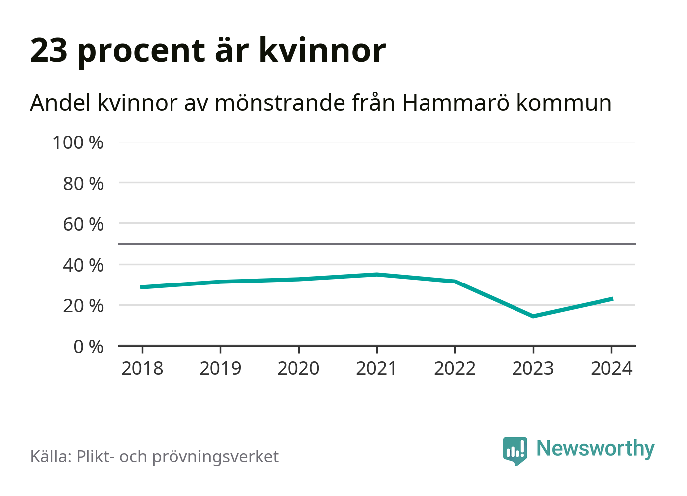 15 av de som kallats till mönstring från Hammarö är kvinnor, vilket motsvarar 23 procent av de mönstrande. I absoluta tal är det fler kvinnor än något år sedan värnplikten återinfördes, men 2021 var en större andel av de mönstrande från kommunen kvinnor (35 procent). I riket som helhet är 30 procent av de mönstrande tjejer.