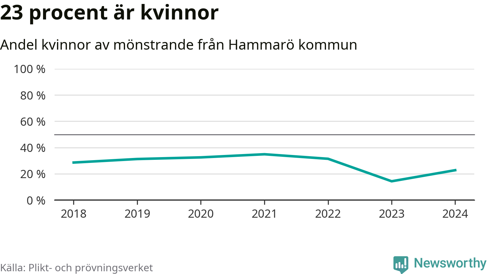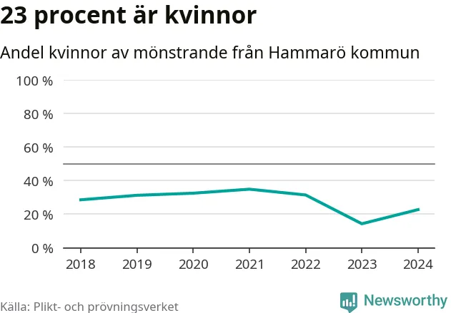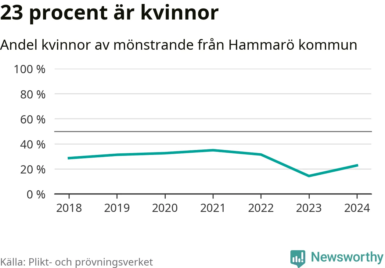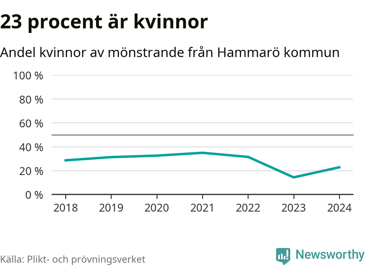 15 av de som kallats till mönstring från Hammarö är kvinnor, vilket motsvarar 23 procent av de mönstrande. I absoluta tal är det fler kvinnor än något år sedan värnplikten återinfördes, men 2021 var en större andel av de mönstrande från kommunen kvinnor (35 procent). I riket som helhet är 30 procent av de mönstrande tjejer.
