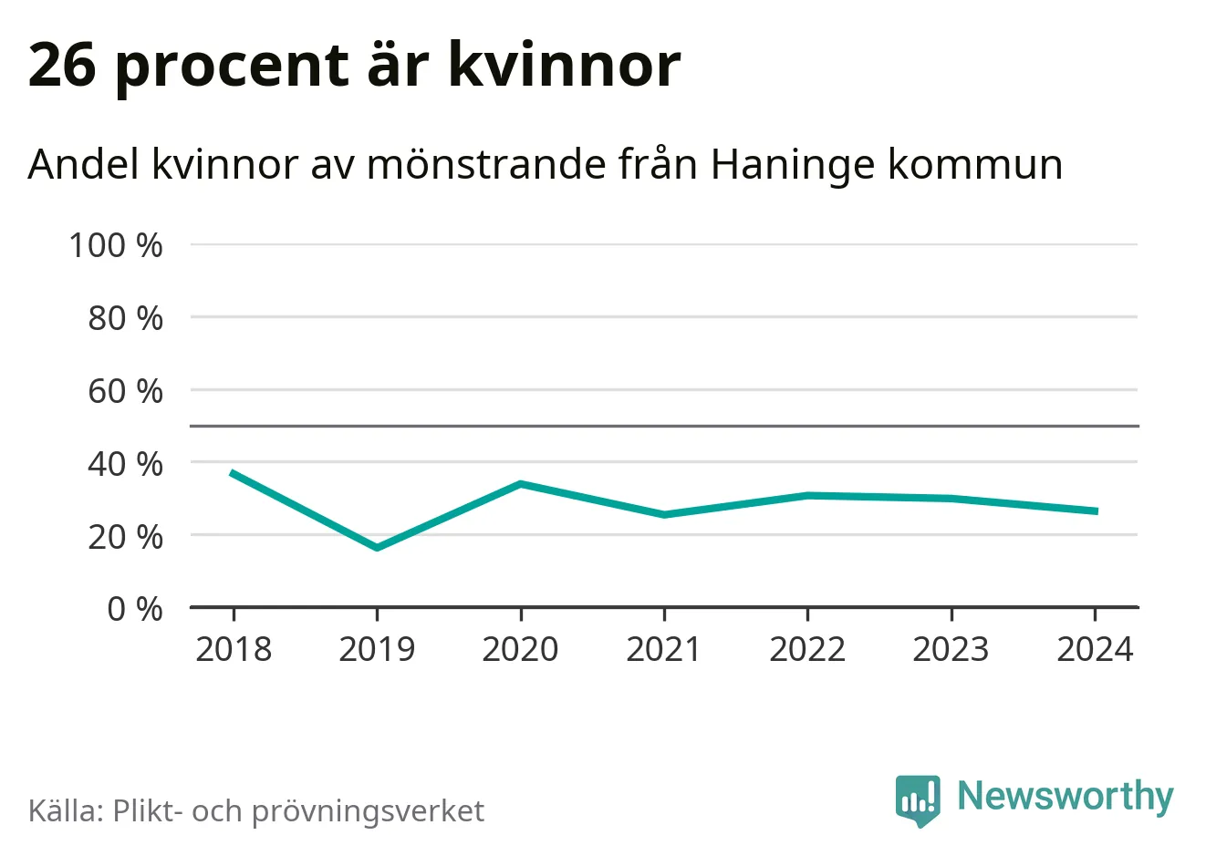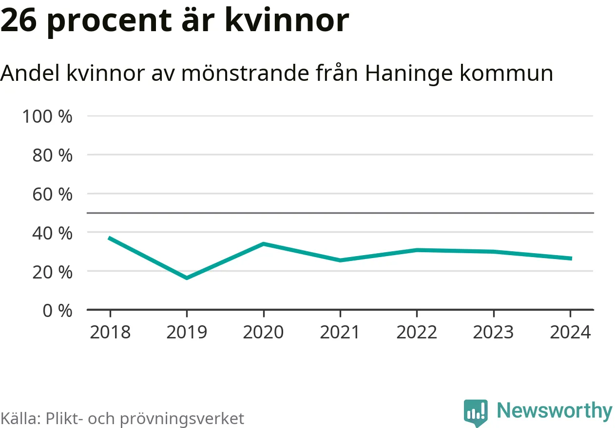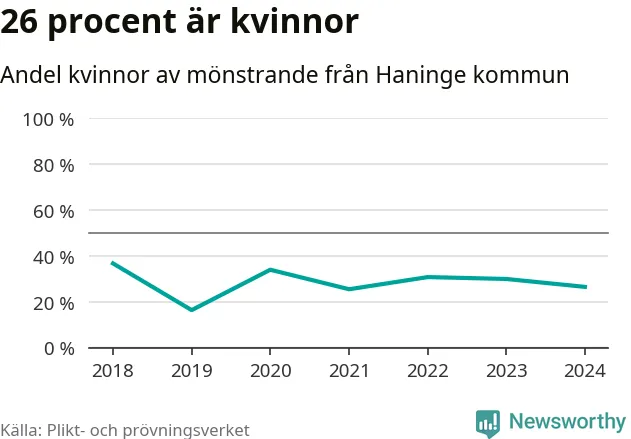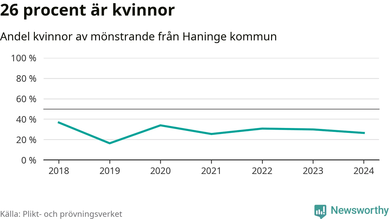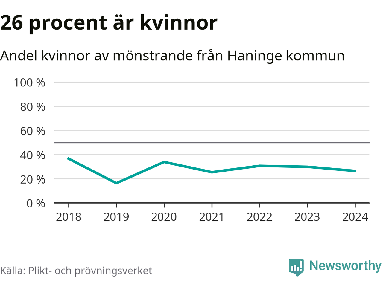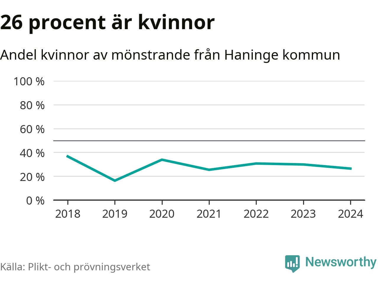 Av de som skrivits in till någon av Försvarmaktens grundutbildningar det senaste året, från juni 2023 till mars i år, kommer 54 (44 män och tio kvinnor) från Haninge. 45 av dessa antogs efter att ha kallats till mönstring.