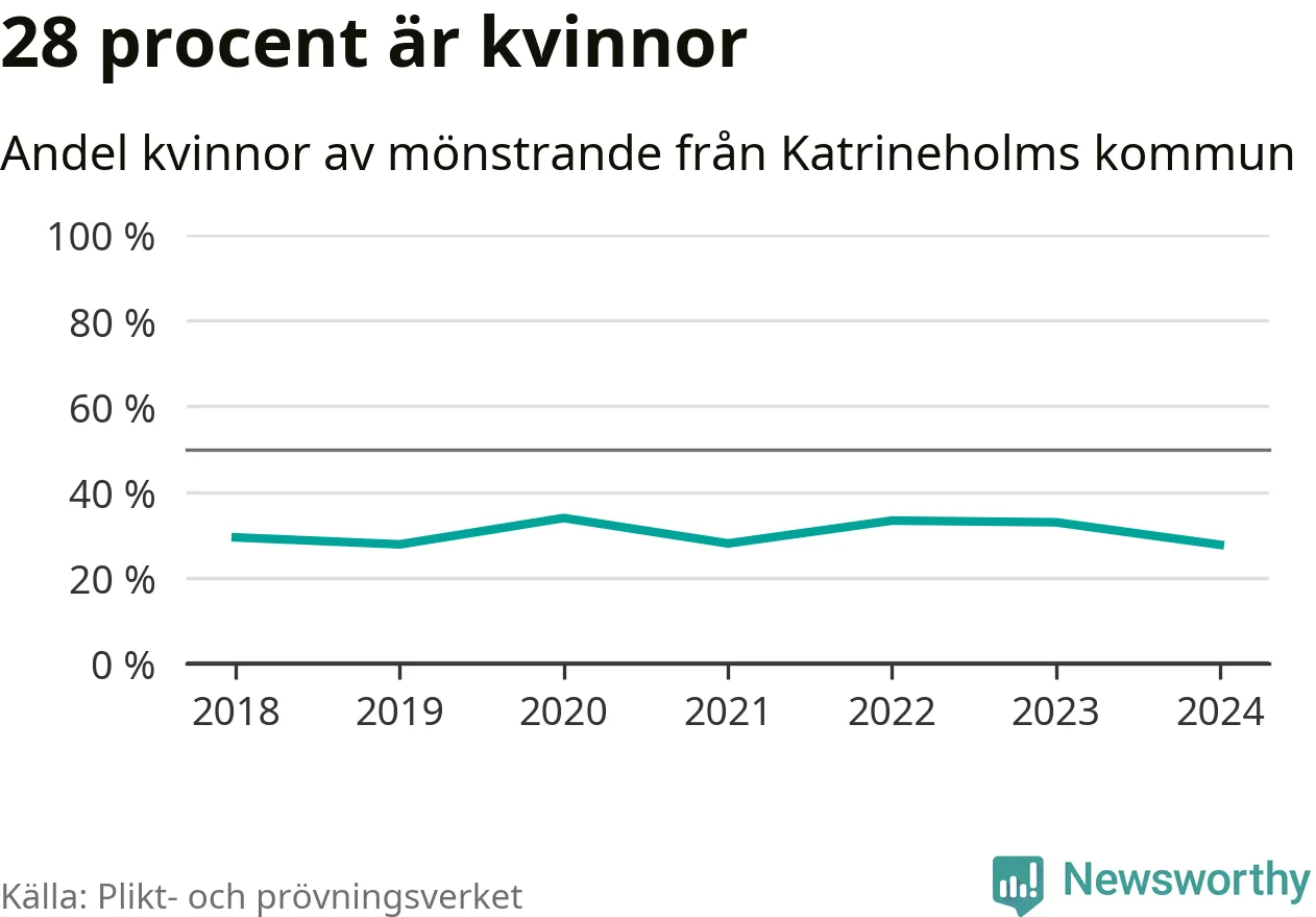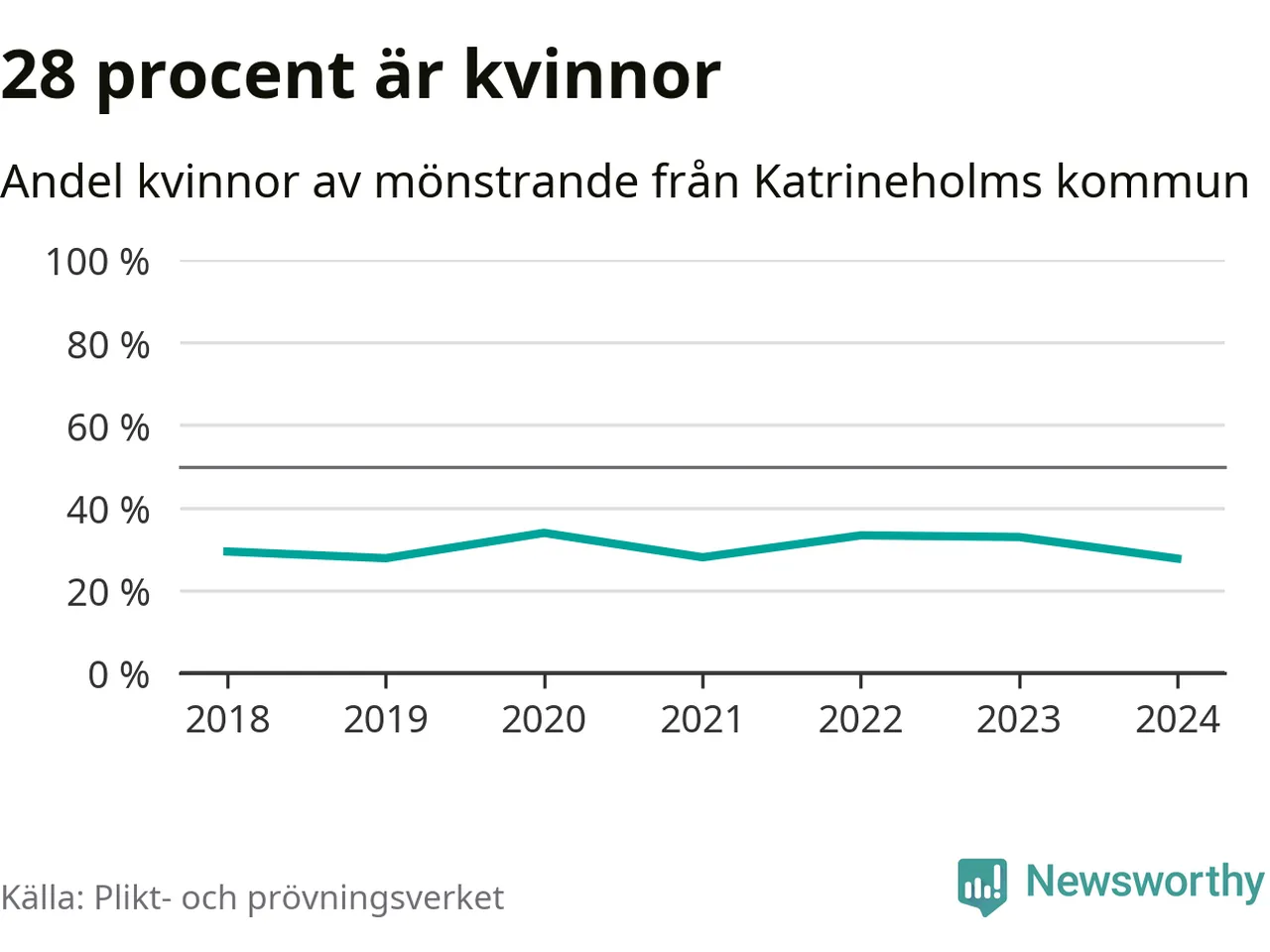 Av de som skrivits in till någon av Försvarmaktens grundutbildningar det senaste året, från juni 2023 till mars i år, kommer 20 (13 män och sju kvinnor) från Katrineholm. 17 av dessa antogs efter att ha kallats till mönstring.
