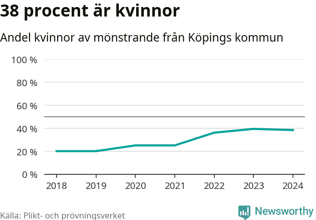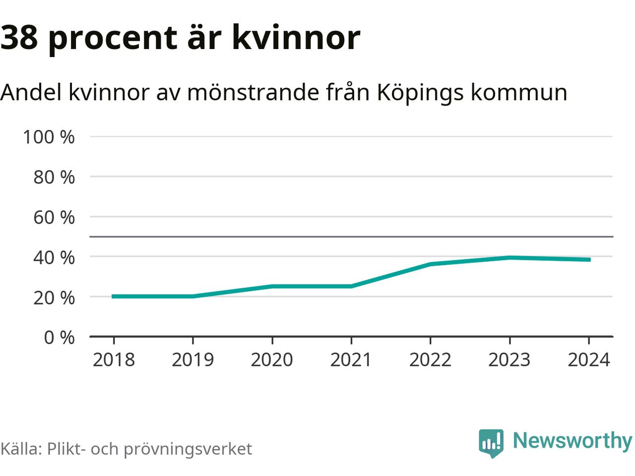 Av de som skrivits in till någon av Försvarmaktens grundutbildningar det senaste året, från juni 2023 till mars i år, kommer 20 (tio män och tio kvinnor) från Köping. 18 av dessa antogs efter att ha kallats till mönstring.