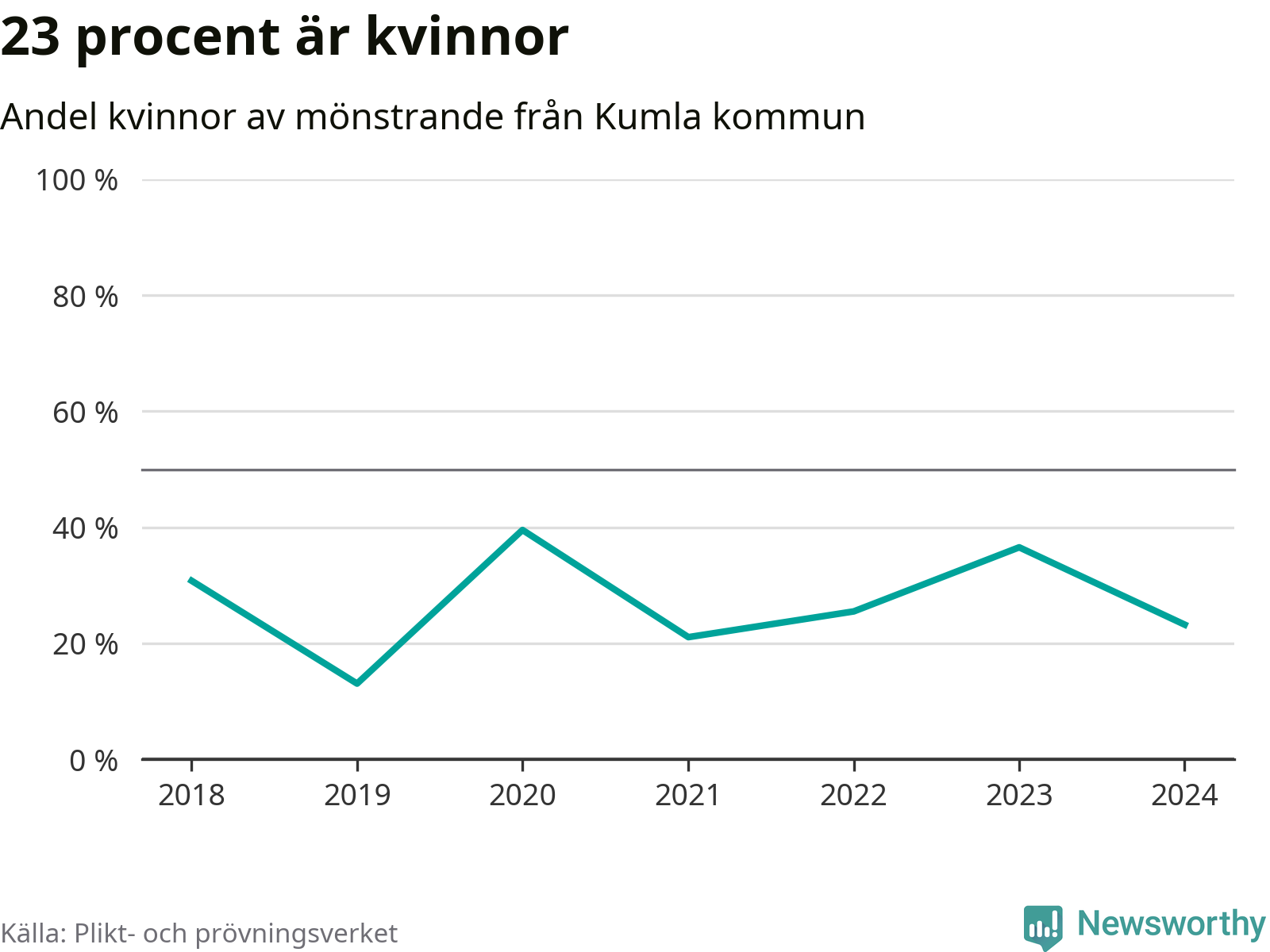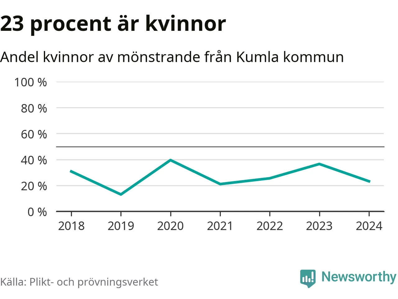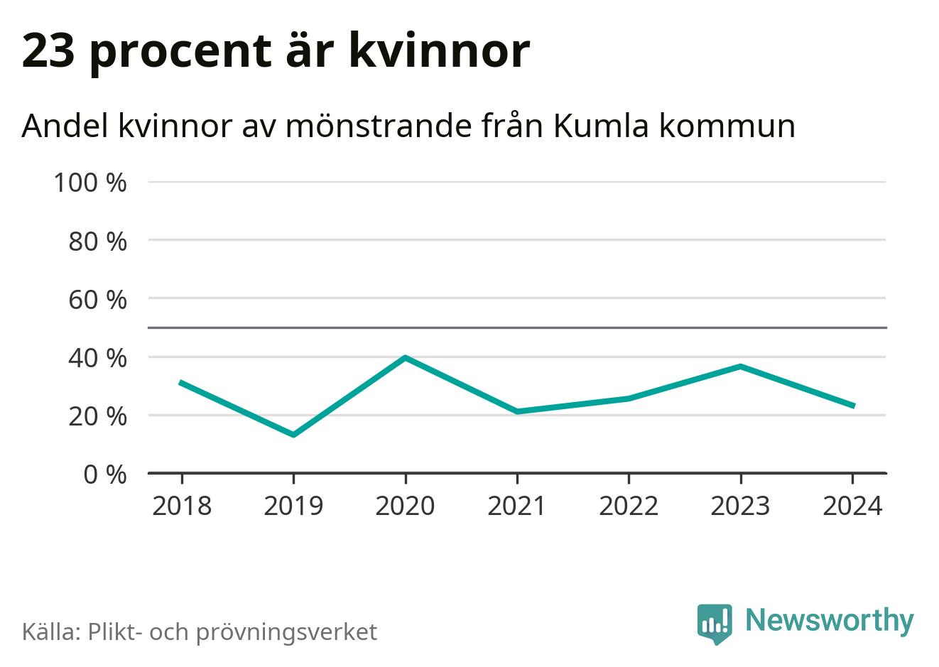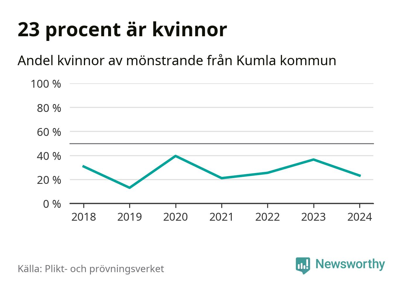 56 personer är det högsta antalet kallade i Kumla sedan 2018, som är första året med statistik på kommunnivå (värnplikten återinfördes 2017), och fyra mönstrande mer än 2023. 2018 kallades som jämförelse 26 artonåringar från Kumla till mönstring. Det motsvarade ungefär 9 procent av årskullen född år 2000. Totalt från Örebro län kallas 786 personer födda 2006 i år.