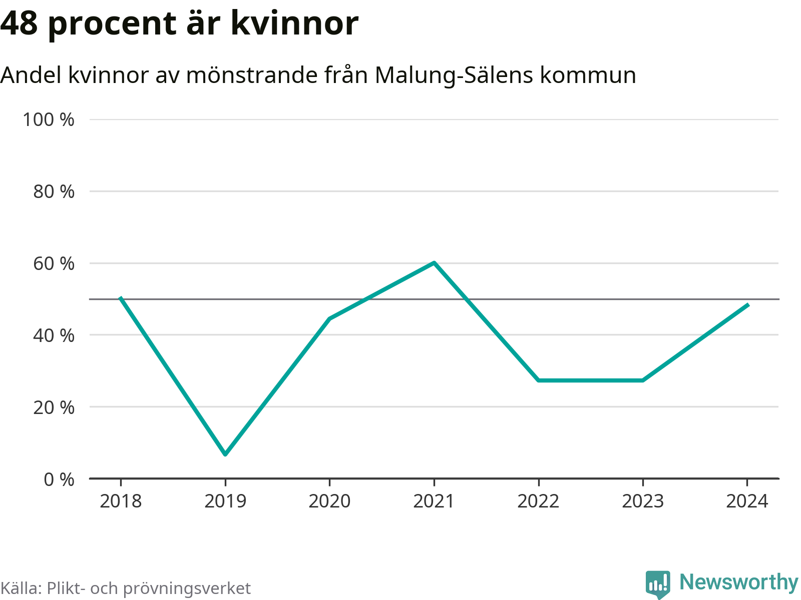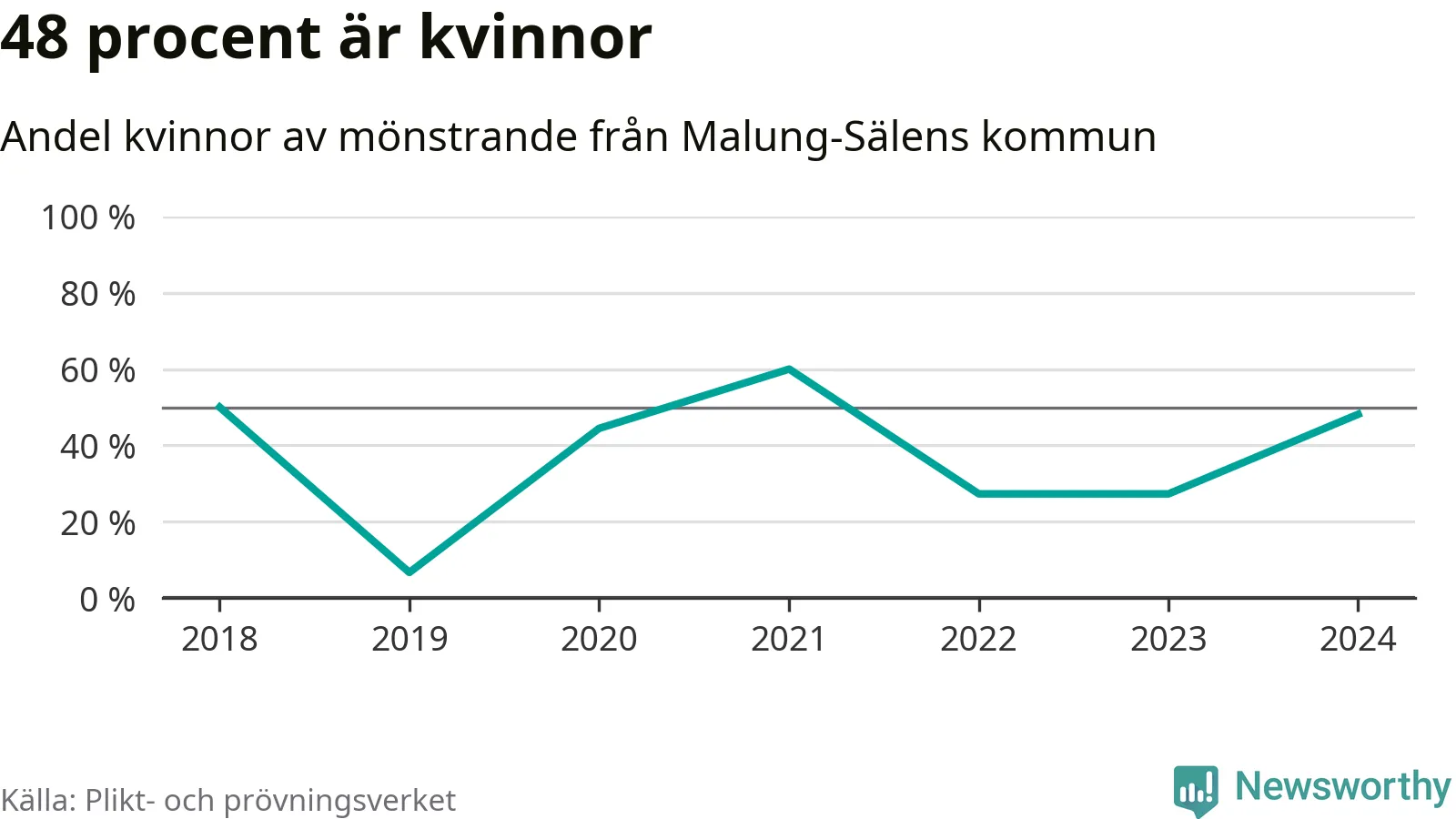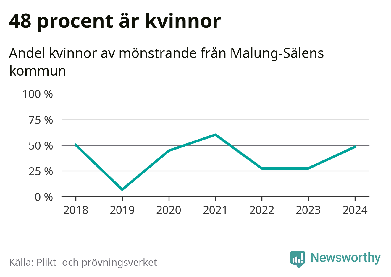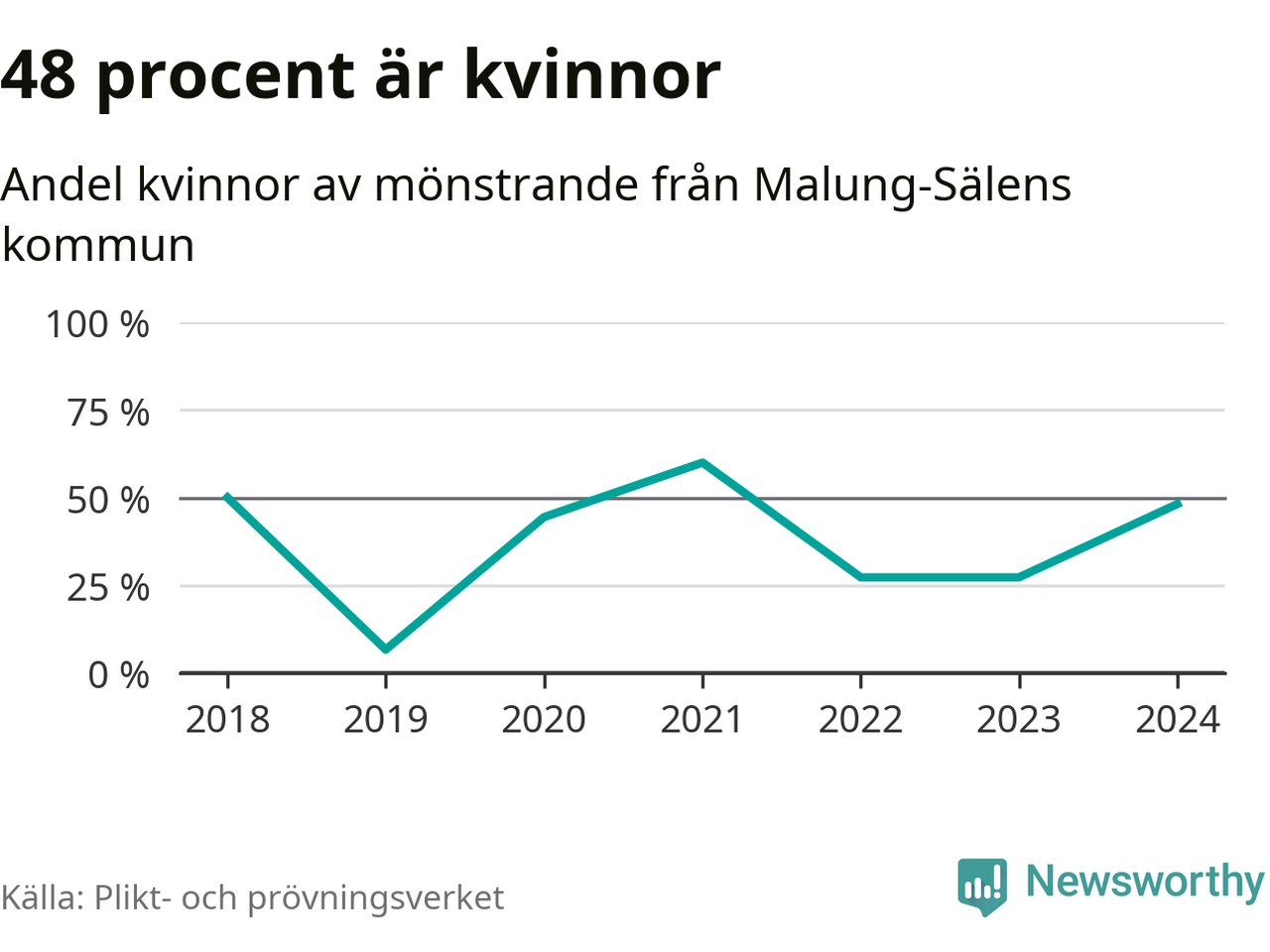 13 av de som kallats till mönstring från Malung-Sälen är kvinnor, vilket motsvarar 48 procent av de mönstrande. I absoluta tal är det fler kvinnor än något år sedan värnplikten återinfördes, men 2021 var en större andel av de mönstrande från kommunen kvinnor (60 procent). I riket som helhet är 30 procent av de mönstrande tjejer.