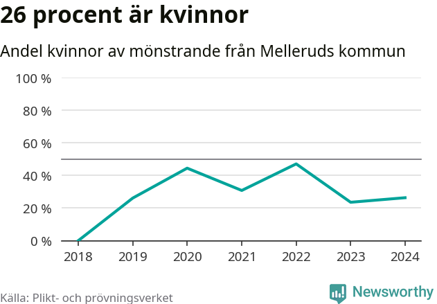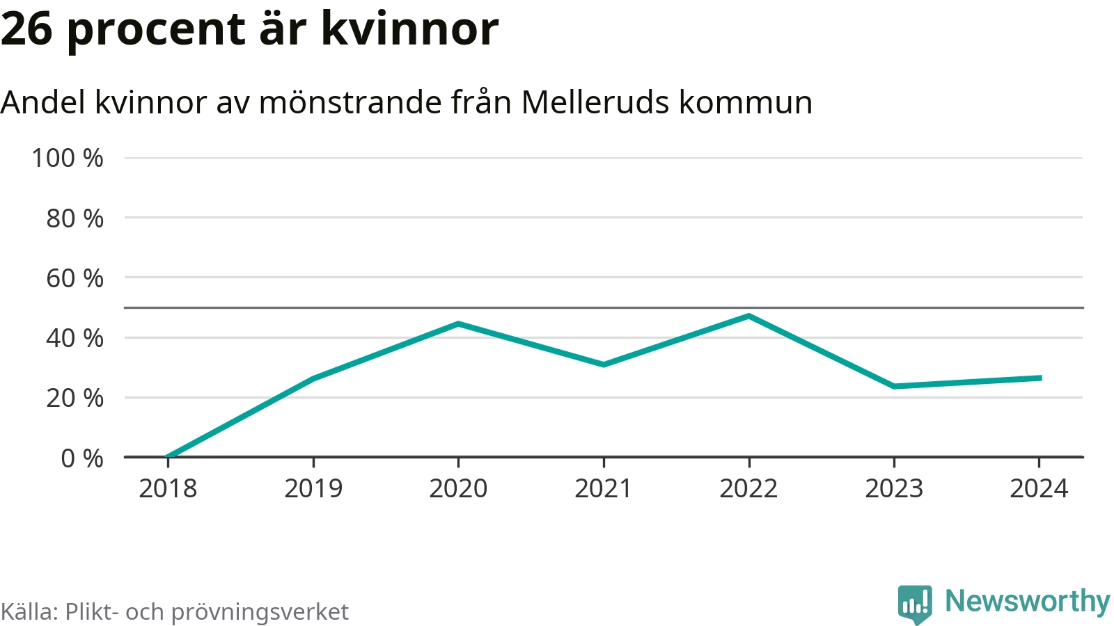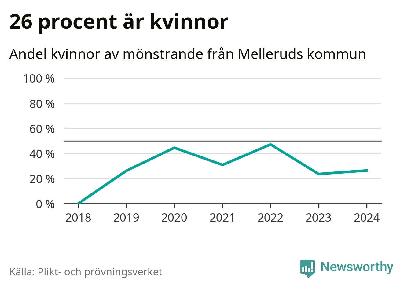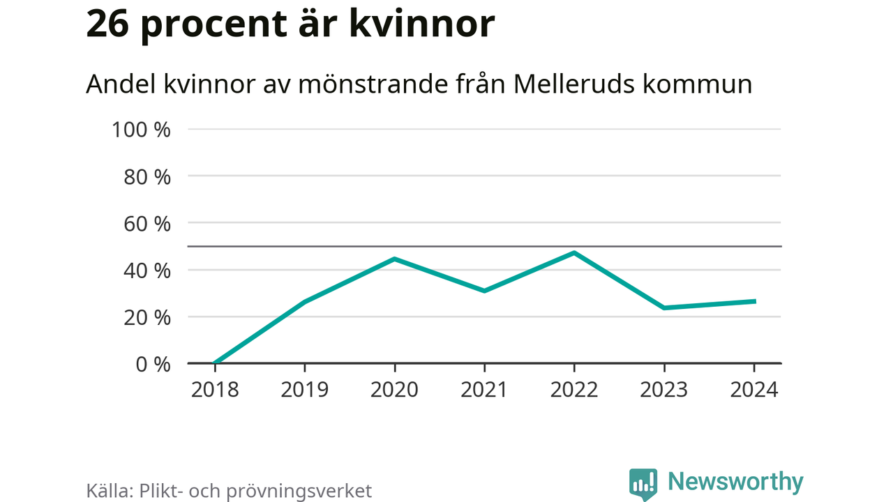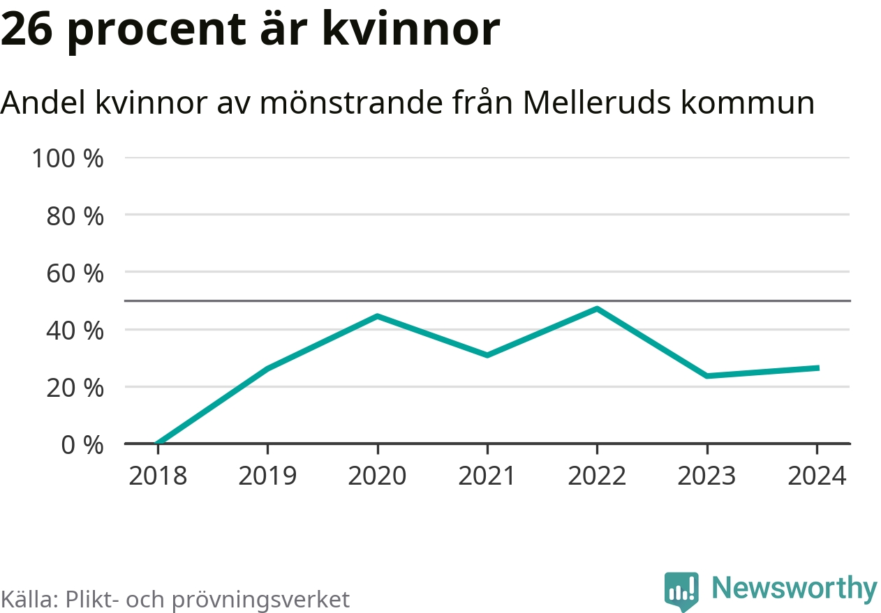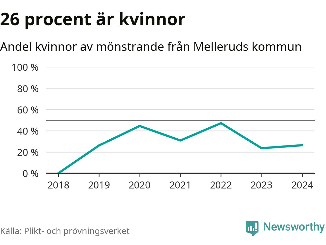 Nu kallas 27 900 svenskar födda 2006 till mönstring. Och 19 av dem kommer från Mellerud, enligt ny statistik från Plikt- och prövningsverket. Det innebär att nästan var fjärde invånare i åldersgruppen i kommunen kallas till mönstring. Det är ungefär lika stor andel som i Västra Götaland totalt. Även i riket som helhet kallas nästan var fjärde person i årskullen.