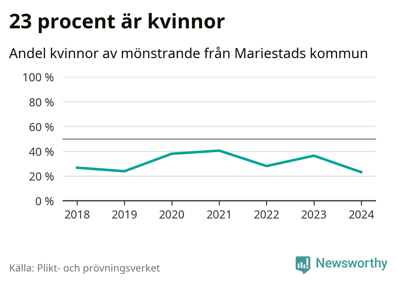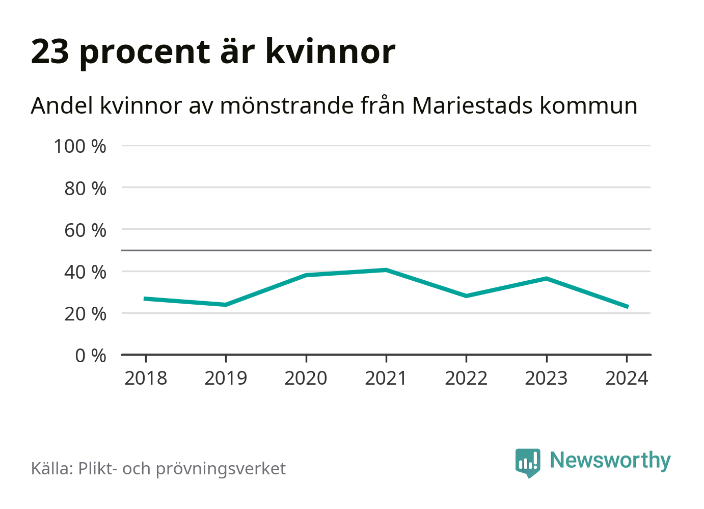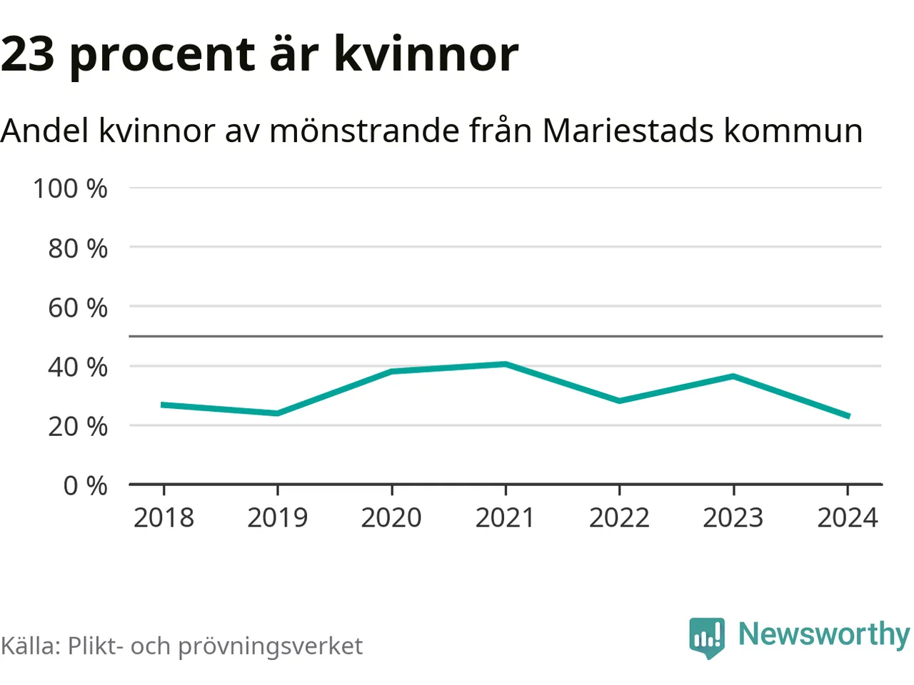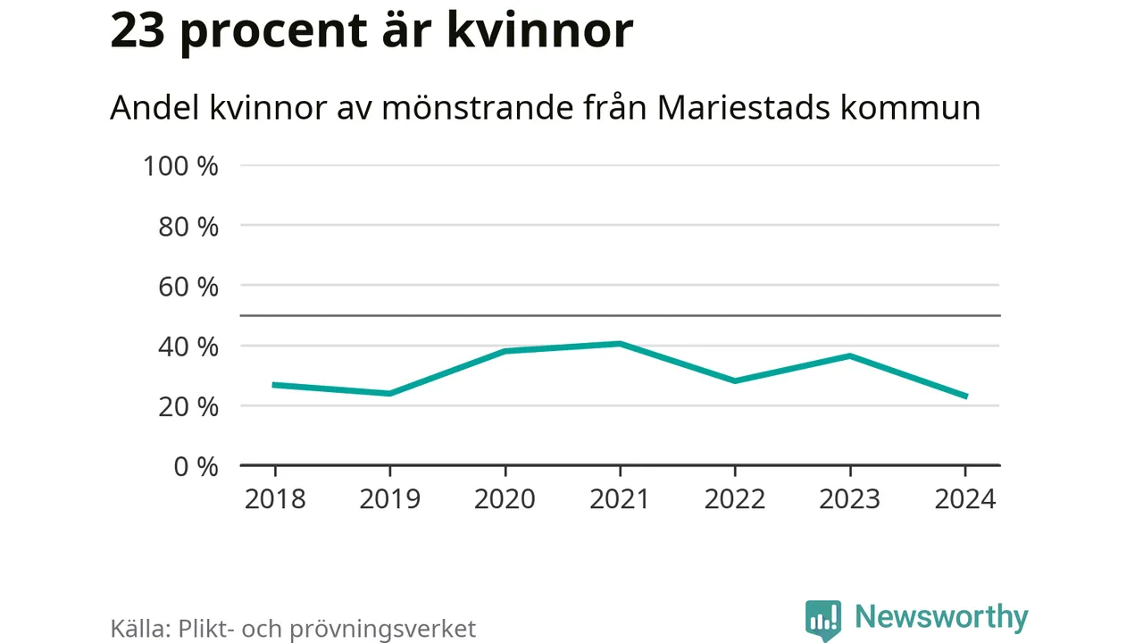 Av de som skrivits in till någon av Försvarmaktens grundutbildningar det senaste året, från juni 2023 till mars i år, kommer tolv (tio män och två kvinnor) från Mariestad. Elva av dessa antogs efter att ha kallats till mönstring.