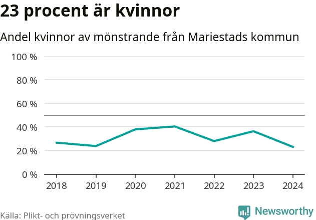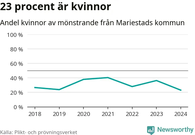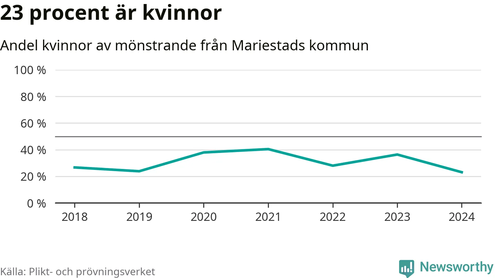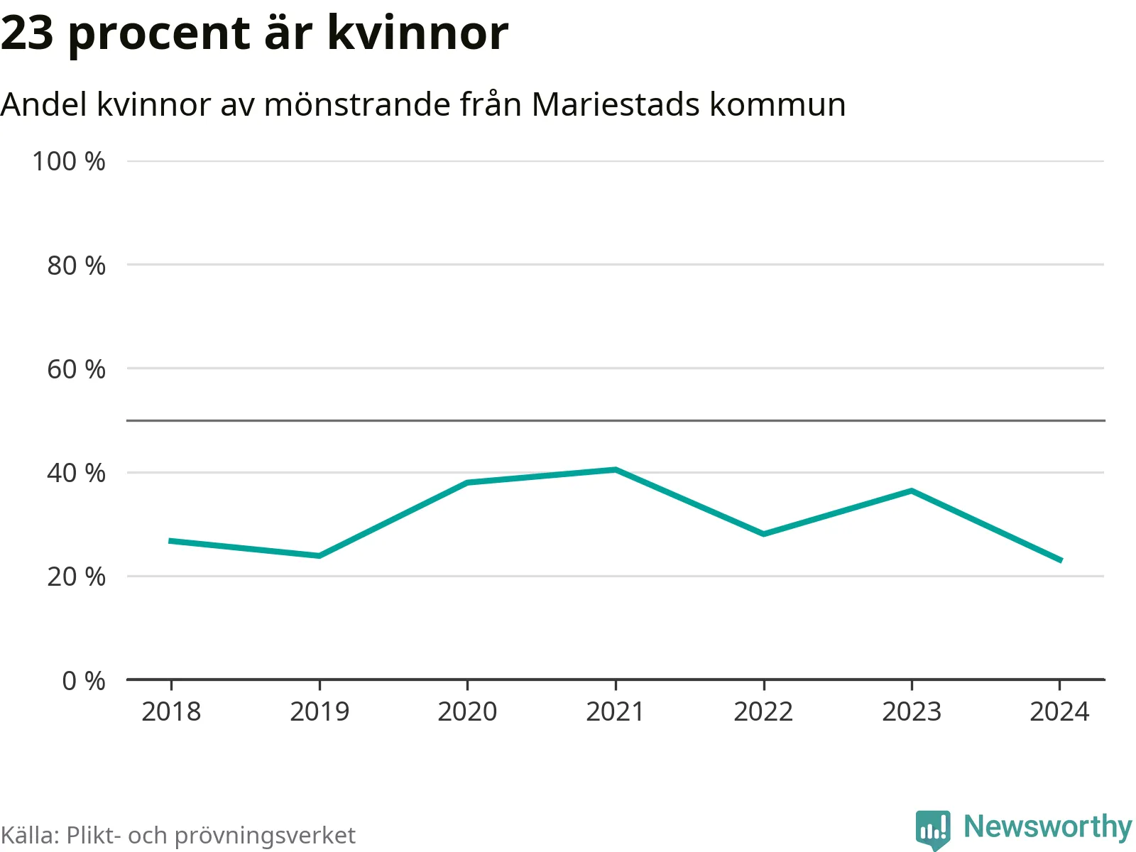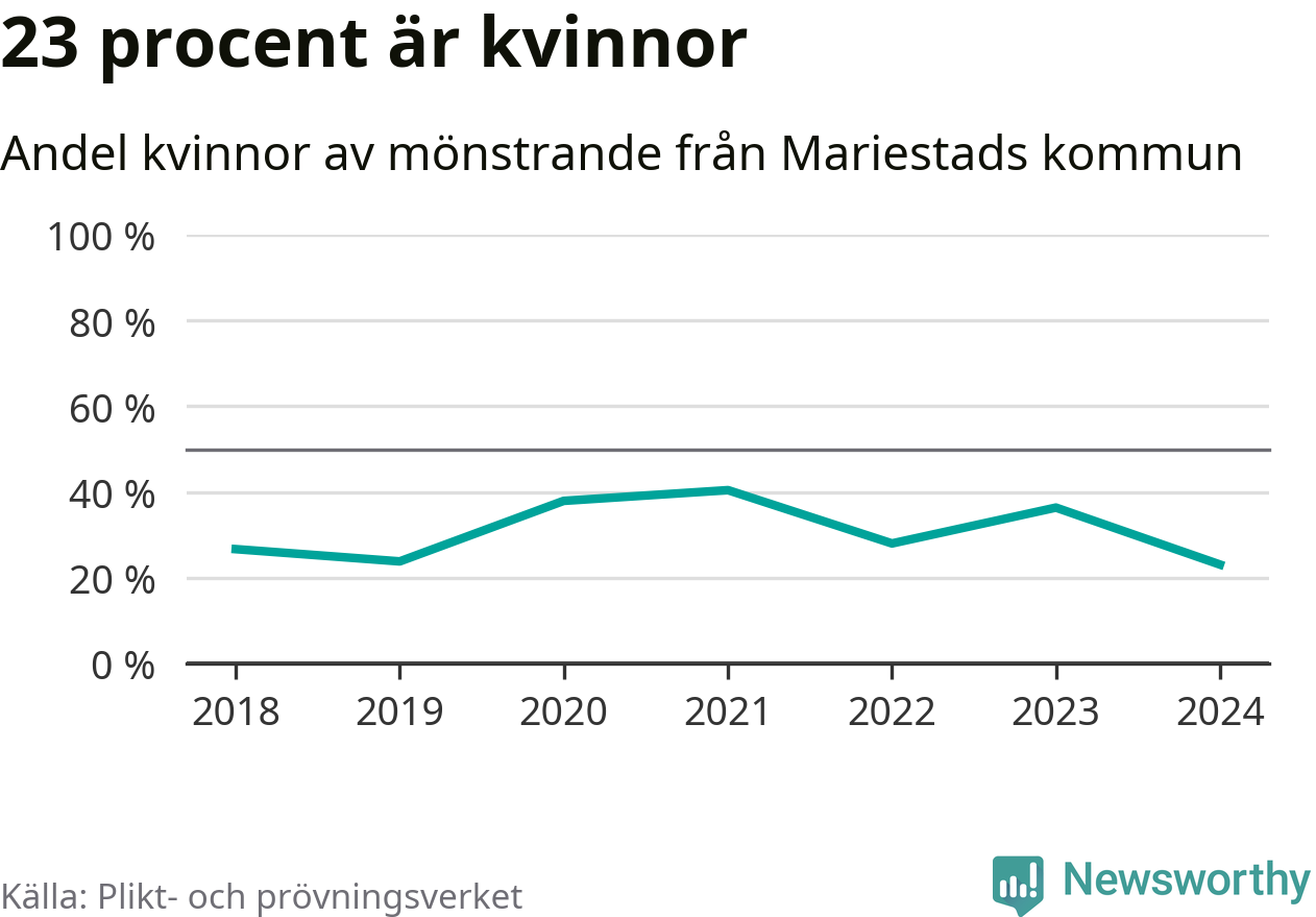 Av de som skrivits in till någon av Försvarmaktens grundutbildningar det senaste året, från juni 2023 till mars i år, kommer tolv (tio män och två kvinnor) från Mariestad. Elva av dessa antogs efter att ha kallats till mönstring.