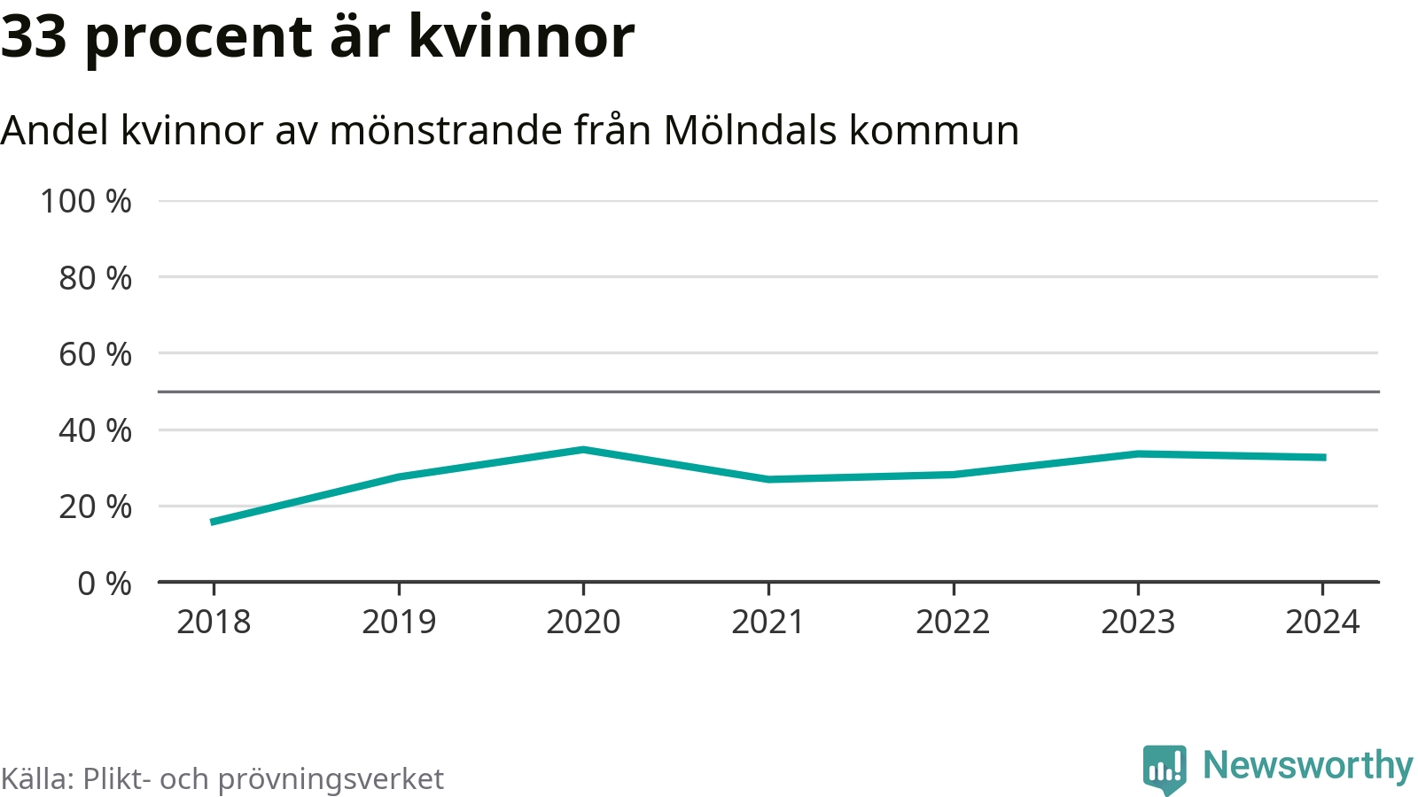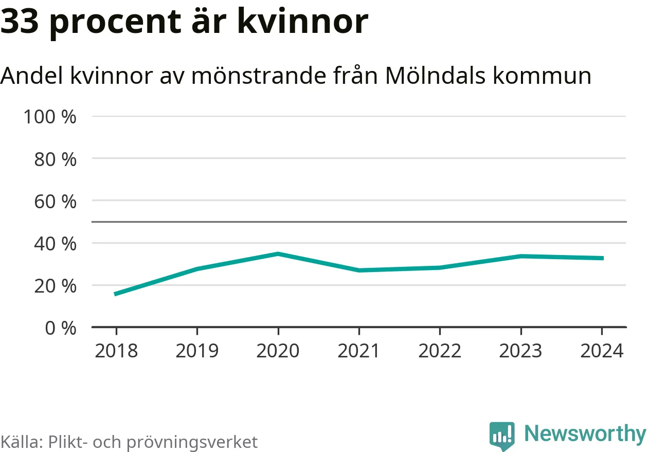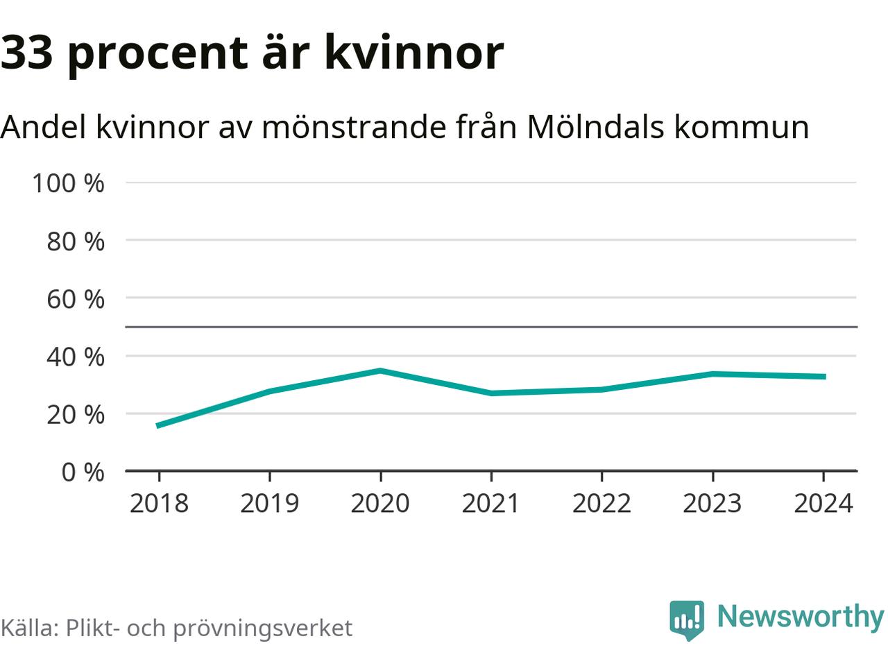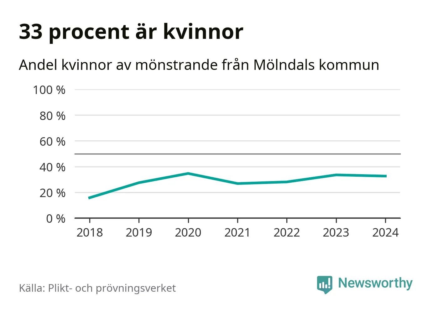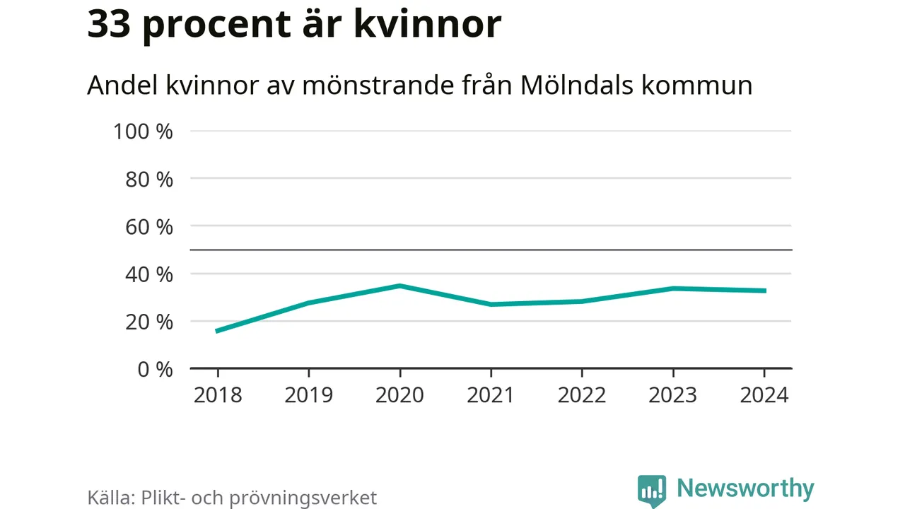 Av de som skrivits in till någon av Försvarmaktens grundutbildningar det senaste året, från juni 2023 till mars i år, kommer 61 (48 män och 13 kvinnor) från Mölndal. 58 av dessa antogs efter att ha kallats till mönstring.