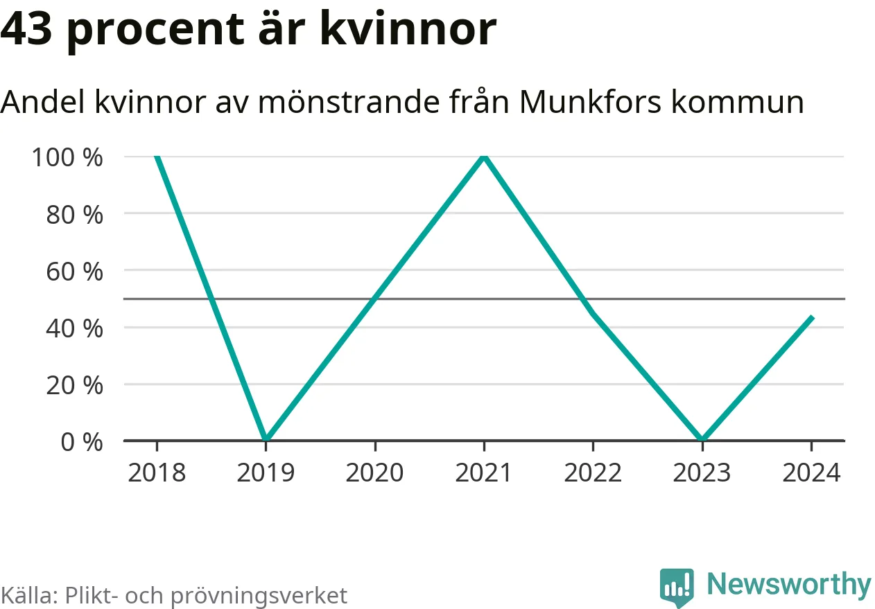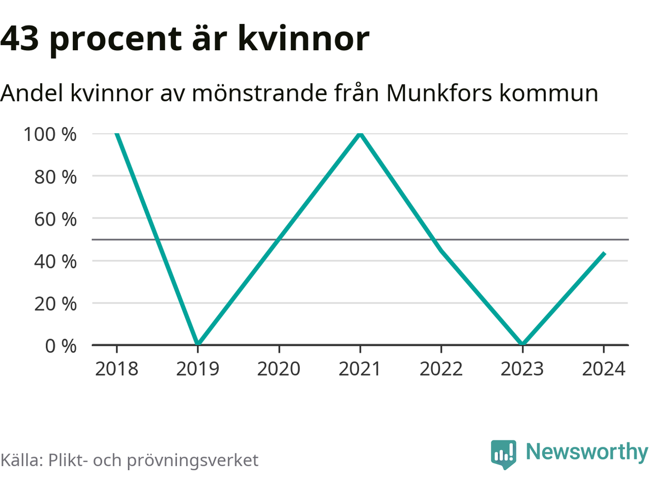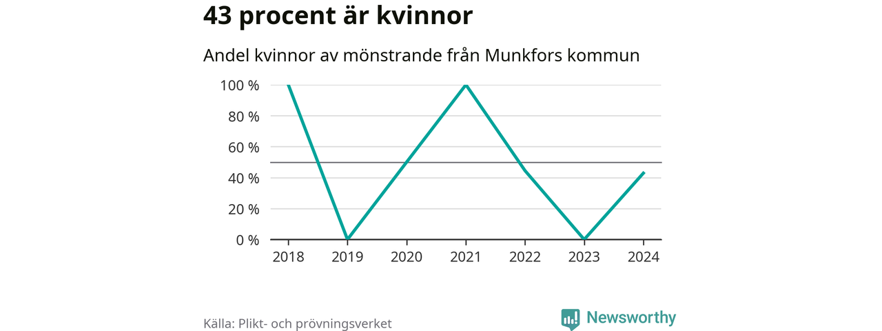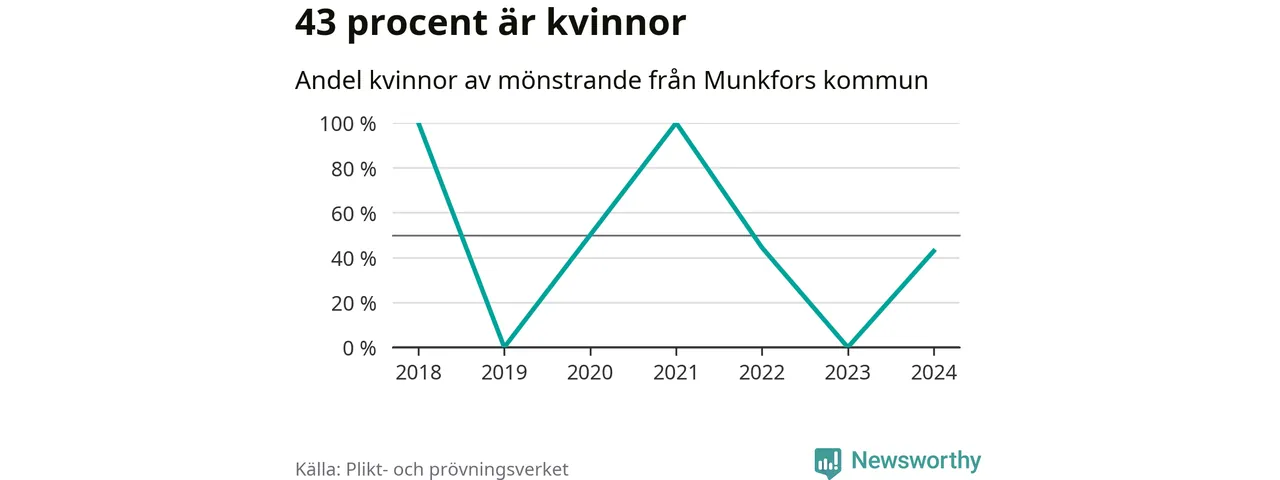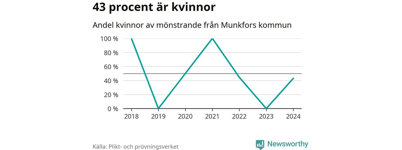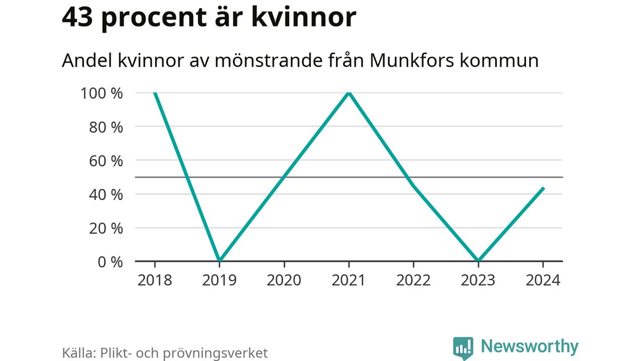 Sju personer är fem fler än 2023. Som mest har nio personer från en årskull kommunen mönstrat (2022). 2018 kallades som jämförelse en 18-åringar från Munkfors till mönstring. Det motsvarade ungefär 3 procent av årskullen född år 2000. Totalt från Värmlands län kallas 705 personer födda 2006 i år.