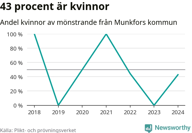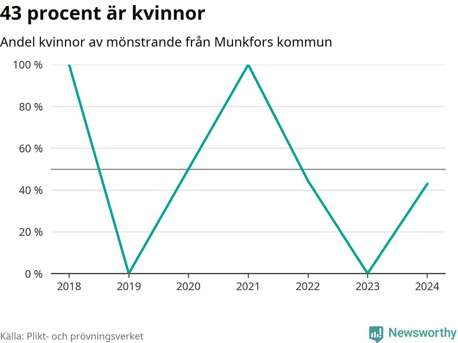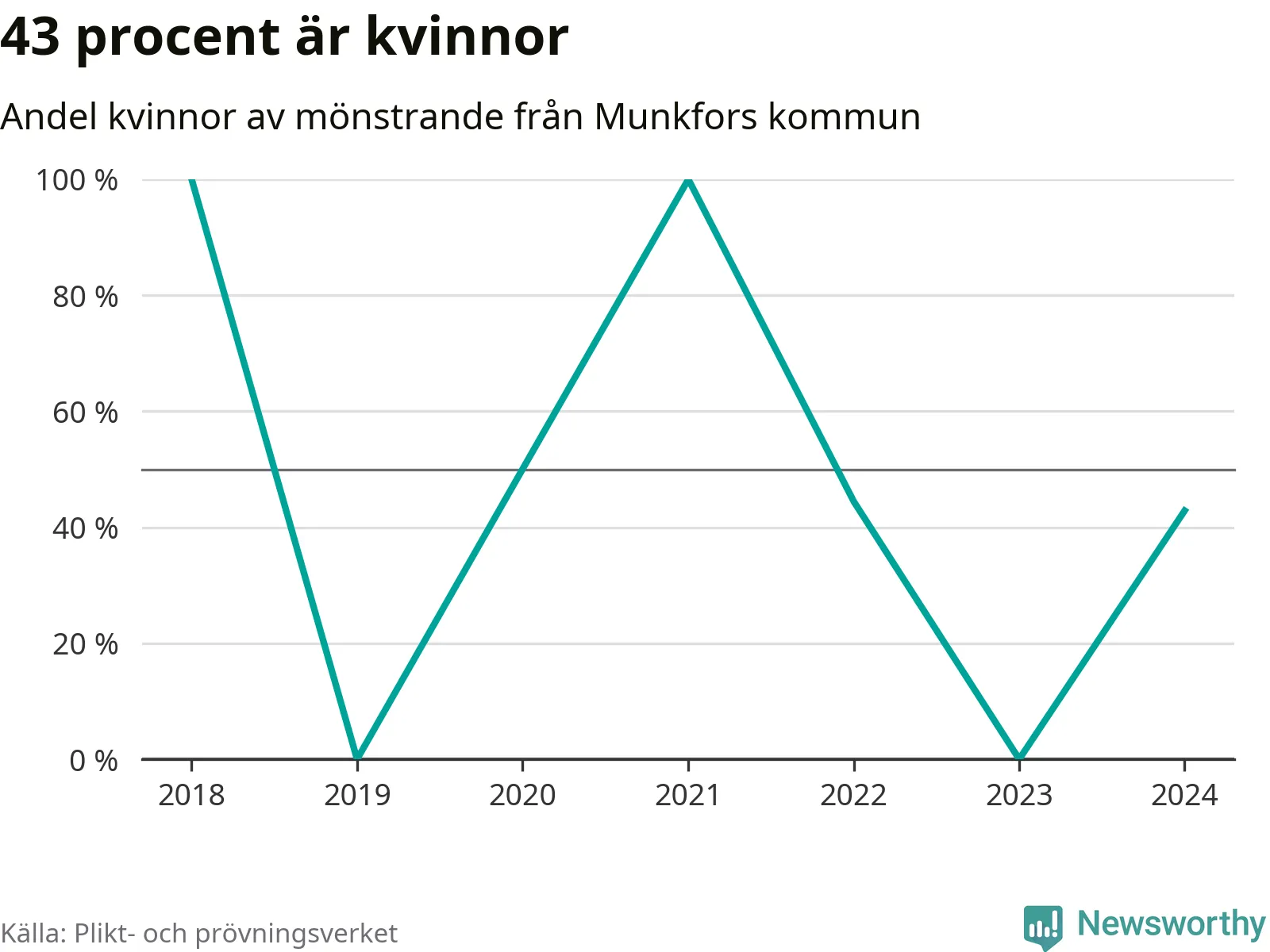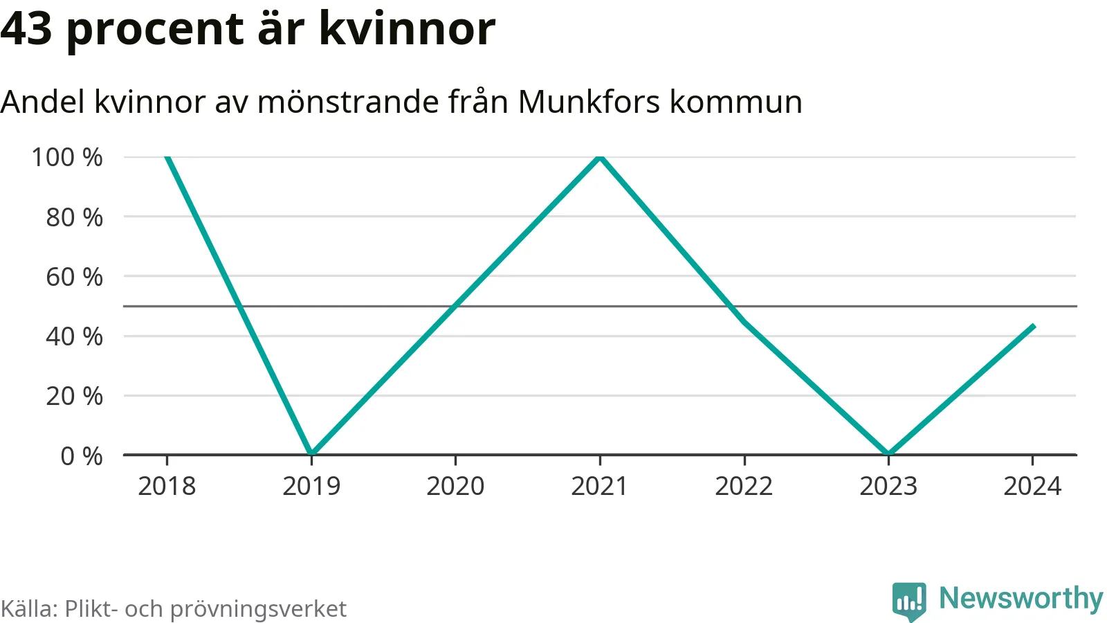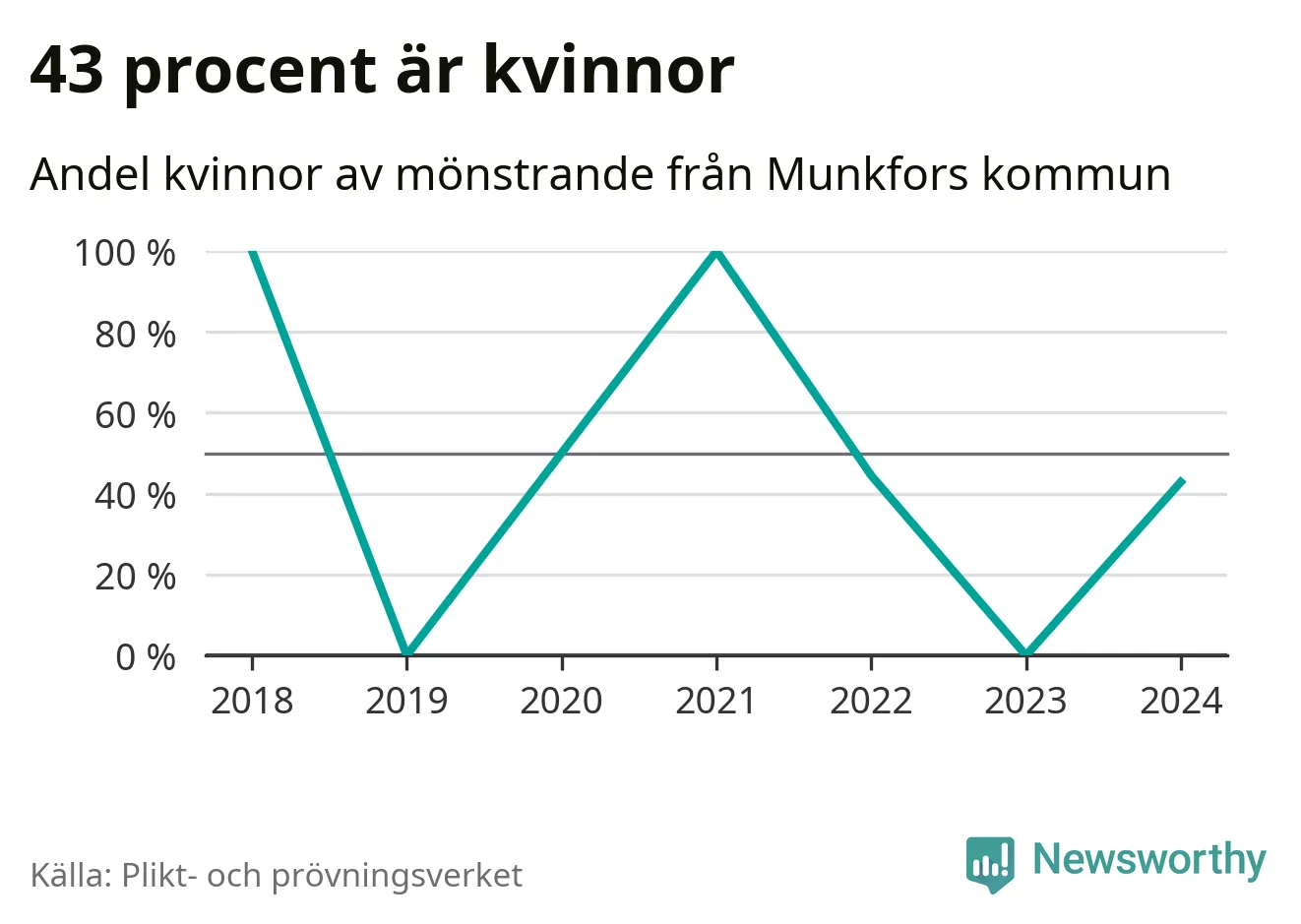 Sju personer är fem fler än 2023. Som mest har nio personer från en årskull kommunen mönstrat (2022). 2018 kallades som jämförelse en 18-åringar från Munkfors till mönstring. Det motsvarade ungefär 3 procent av årskullen född år 2000. Totalt från Värmlands län kallas 705 personer födda 2006 i år.