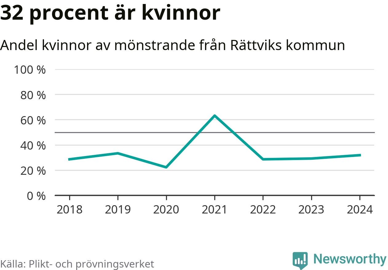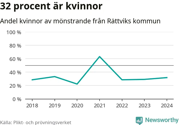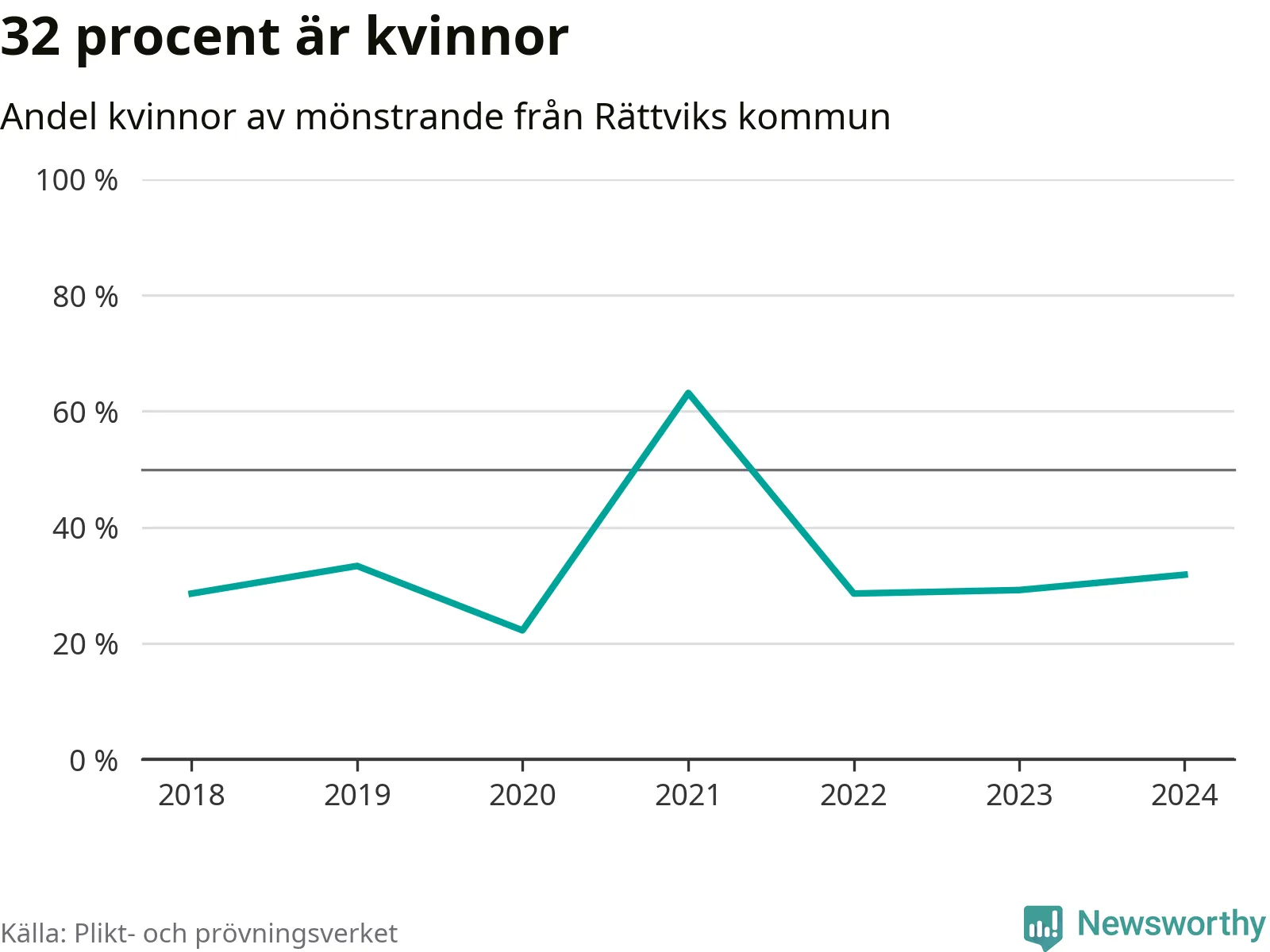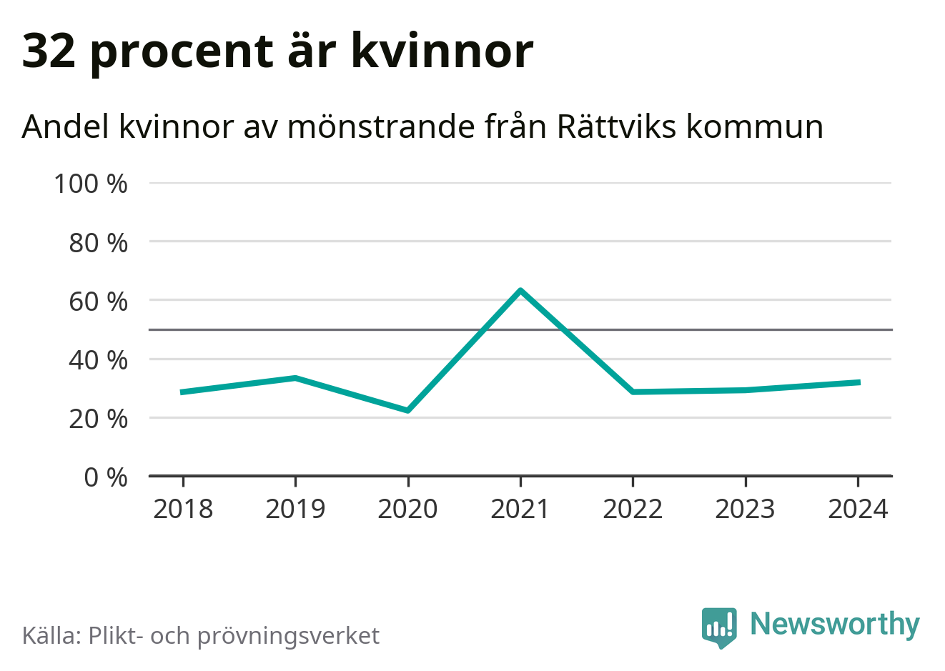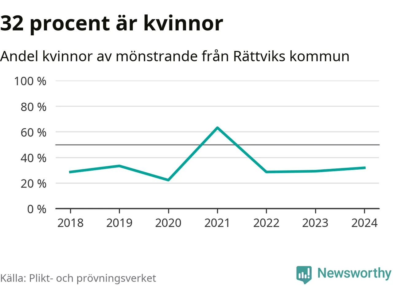 Sju av de som kallats till mönstring från Rättvik är kvinnor, vilket motsvarar 32 procent av de mönstrande. Som mest har tolv kvinnor kallats från kommunen (2021). I riket som helhet är 30 procent av de mönstrande tjejer.