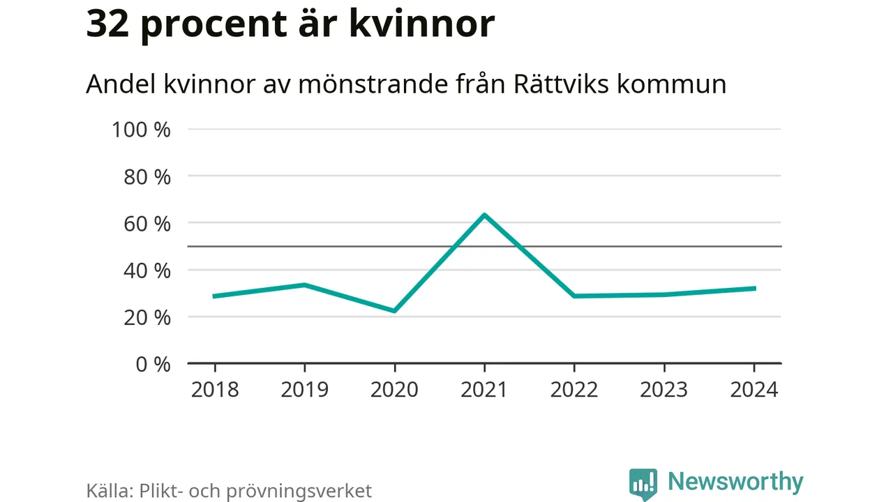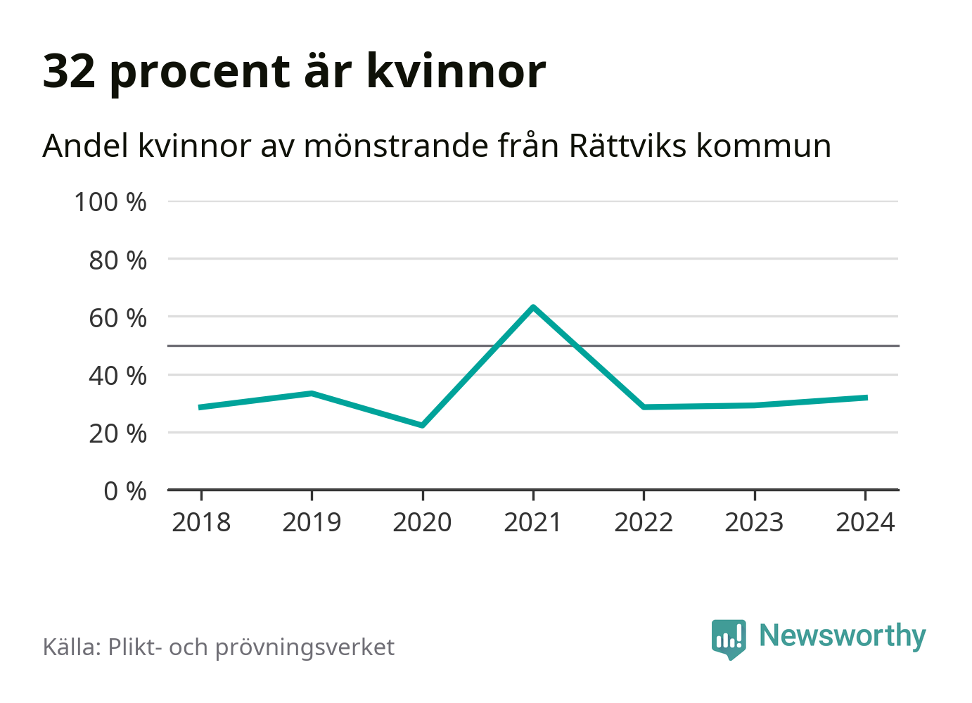 Av de som skrivits in till någon av Försvarmaktens grundutbildningar det senaste året, från juni 2023 till mars i år, kommer nio (åtta män och en kvinna) från Rättvik. Åtta av dessa antogs efter att ha kallats till mönstring.