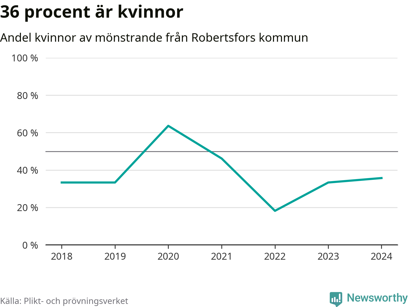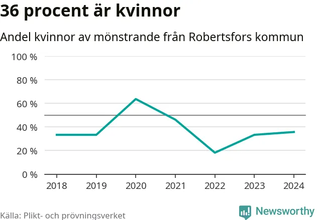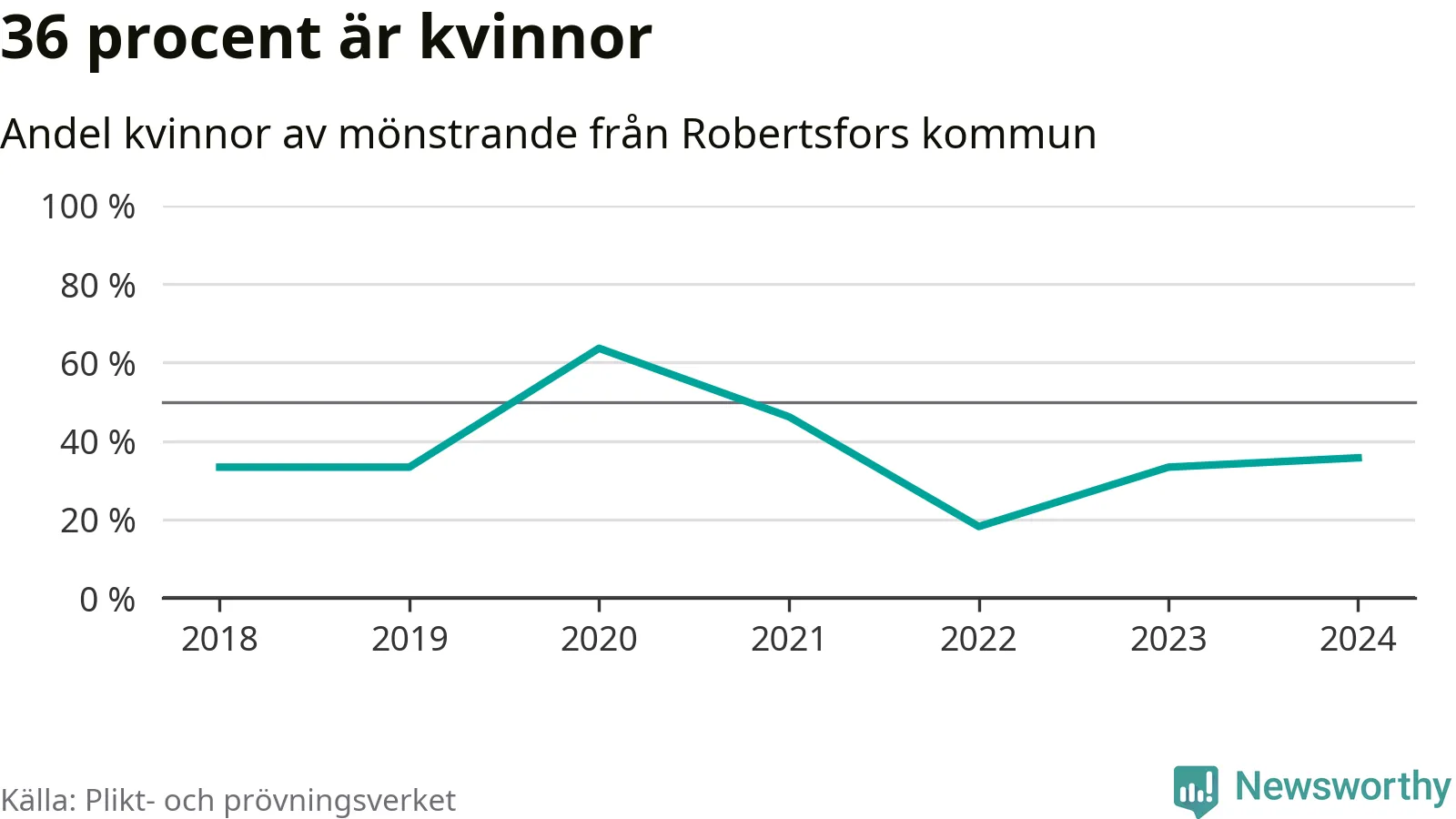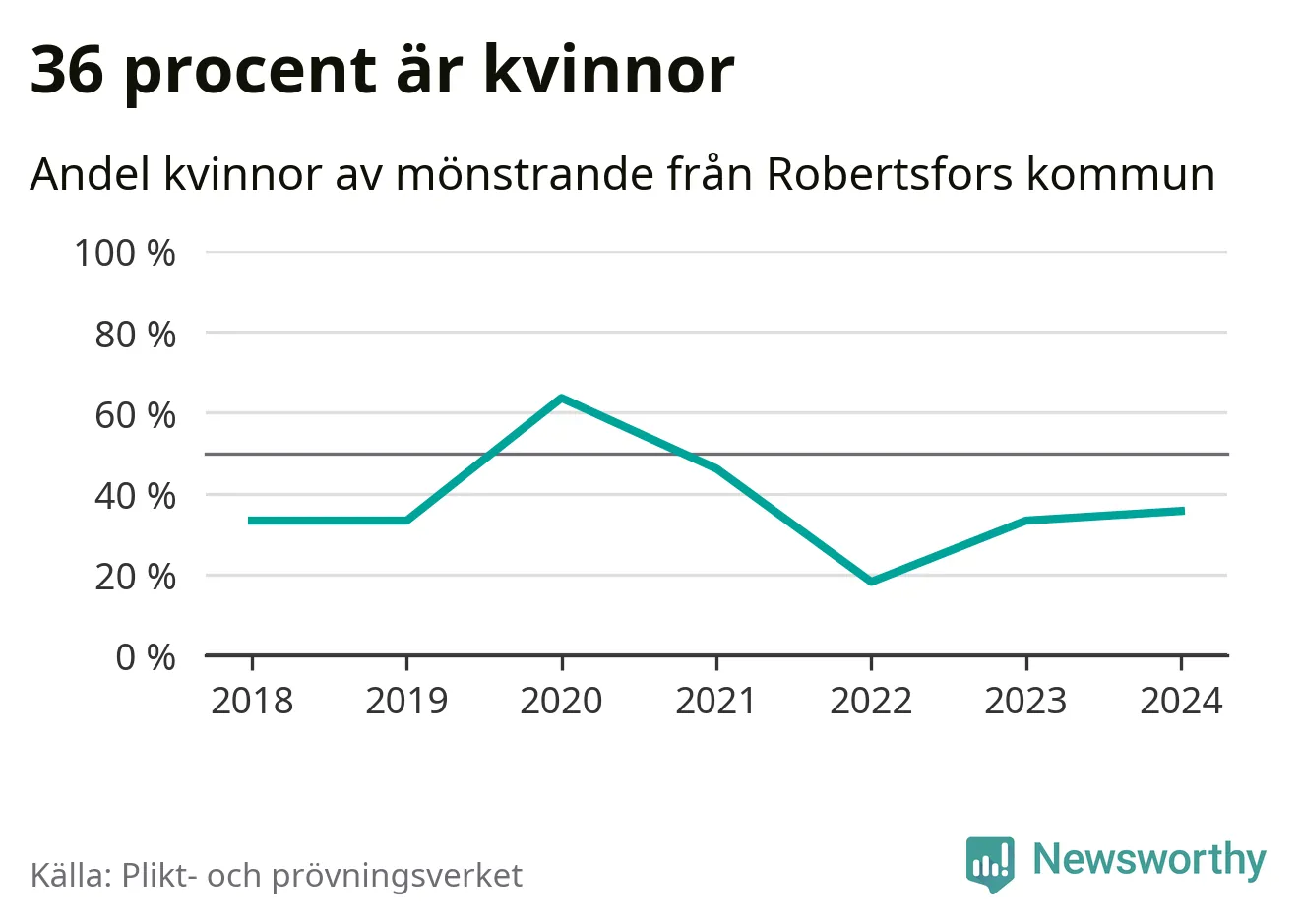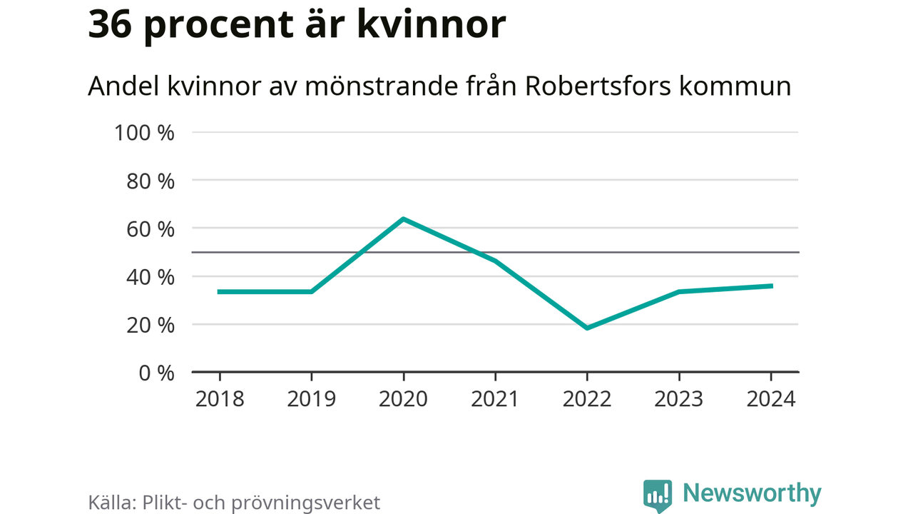 Tio av de som kallats till mönstring från Robertsfors är kvinnor, vilket motsvarar 36 procent av de mönstrande. I absoluta tal är det fler kvinnor än något år sedan värnplikten återinfördes, men 2020 var en större andel av de mönstrande från kommunen kvinnor (64 procent). I riket som helhet är 30 procent av de mönstrande tjejer.