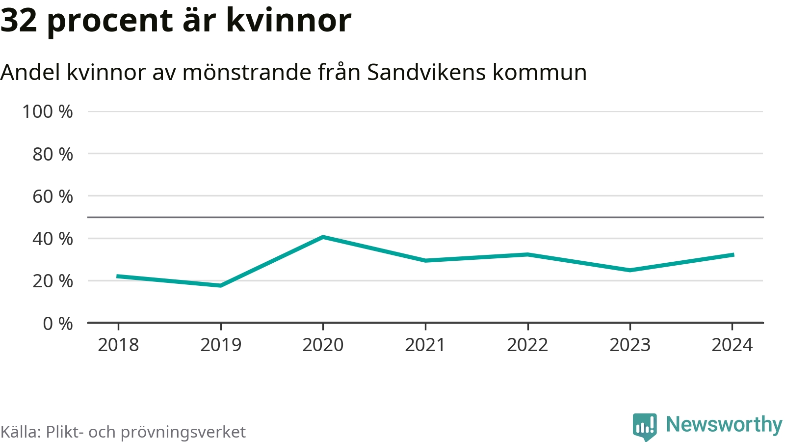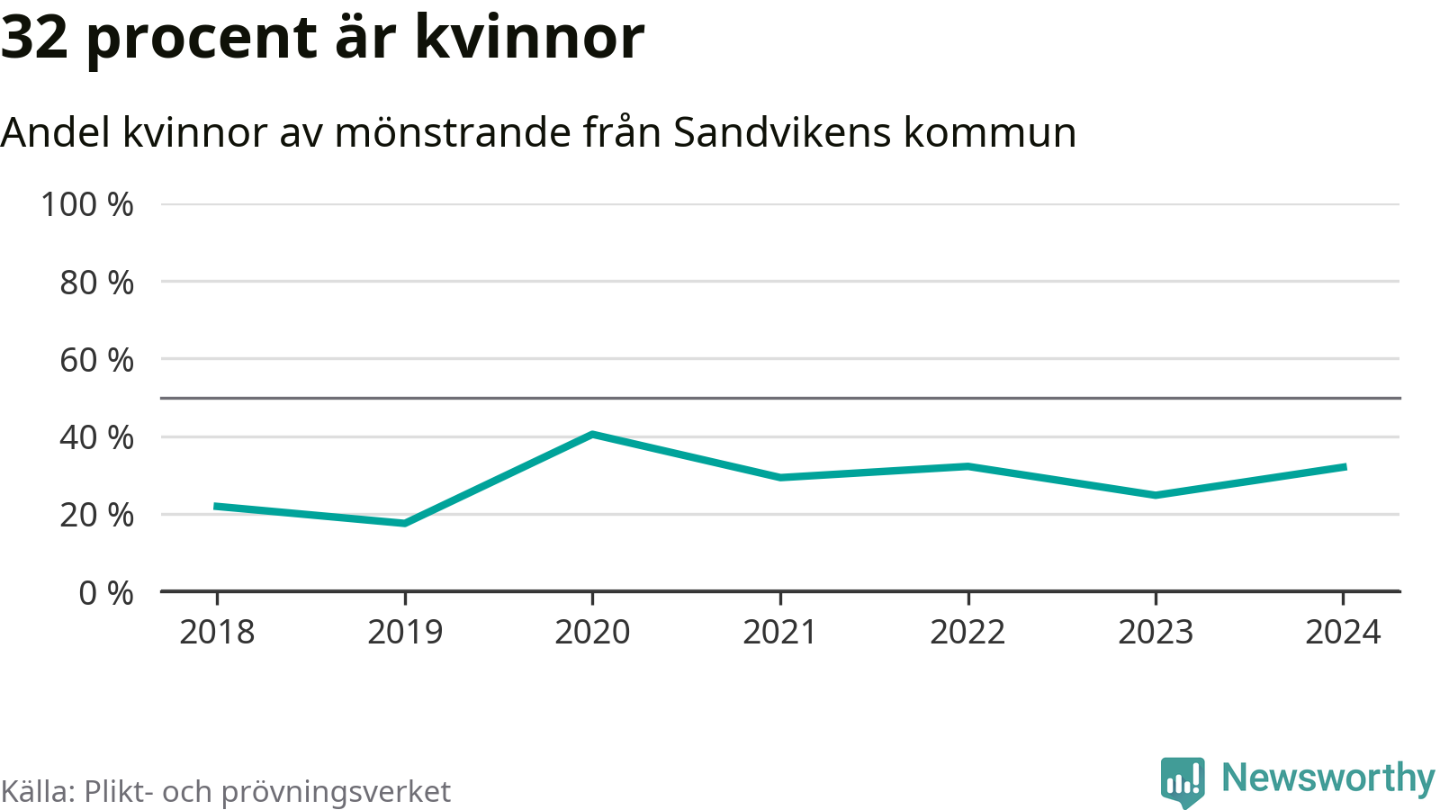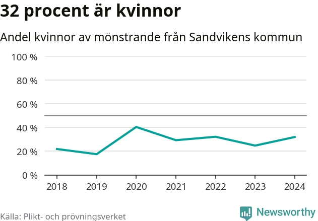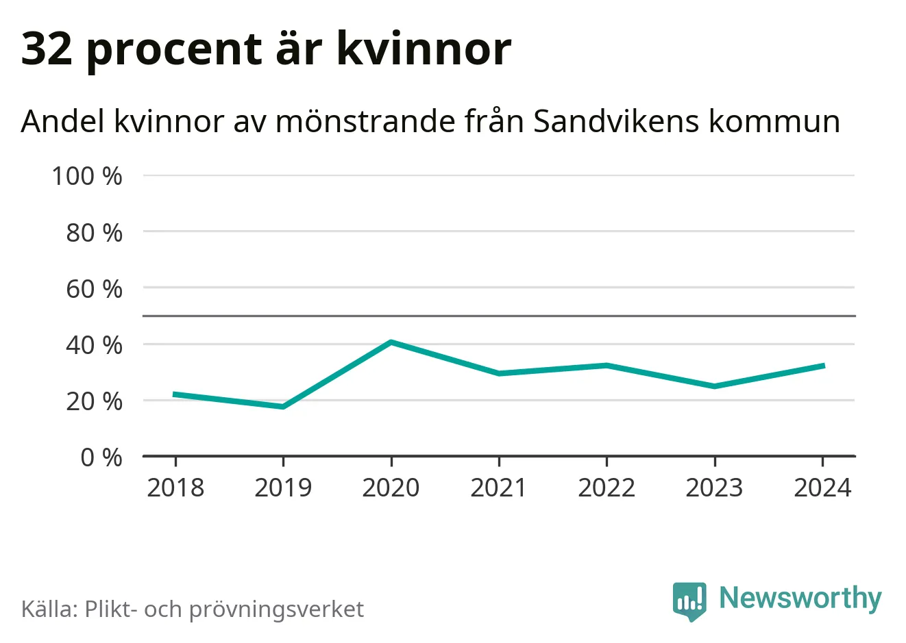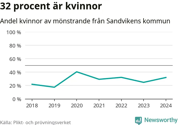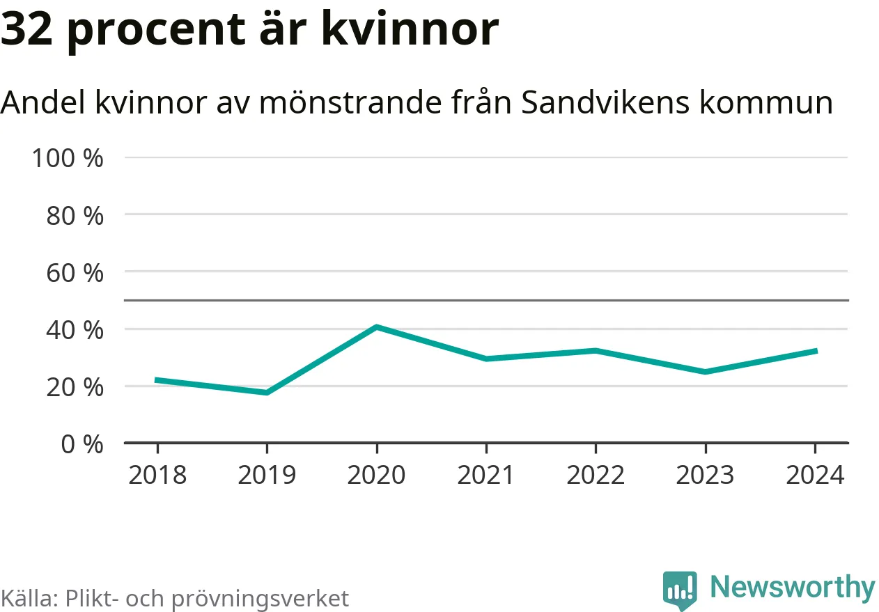 32 av de som kallats till mönstring från Sandviken är kvinnor, vilket motsvarar 32 procent av de mönstrande. I absoluta tal är det fler kvinnor än något år sedan värnplikten återinfördes, men 2020 var en större andel av de mönstrande från kommunen kvinnor (40 procent). I riket som helhet är 30 procent av de mönstrande tjejer.
