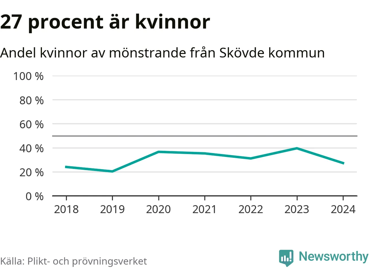 Av de som skrivits in till någon av Försvarmaktens grundutbildningar det senaste året, från juni 2023 till mars i år, kommer 53 (39 män och 14 kvinnor) från Skövde. 40 av dessa antogs efter att ha kallats till mönstring.