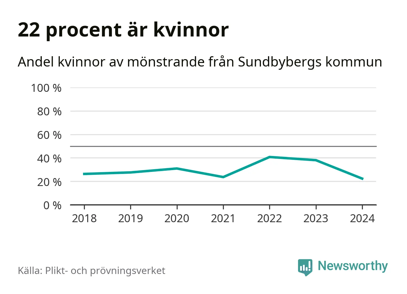 Av de som skrivits in till någon av Försvarmaktens grundutbildningar det senaste året, från juni 2023 till mars i år, kommer 32 (23 män och nio kvinnor) från Sundbyberg. 25 av dessa antogs efter att ha kallats till mönstring.