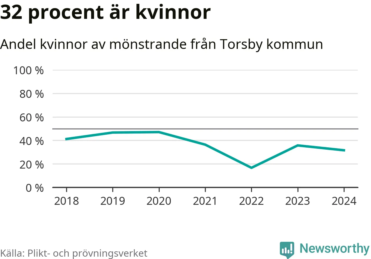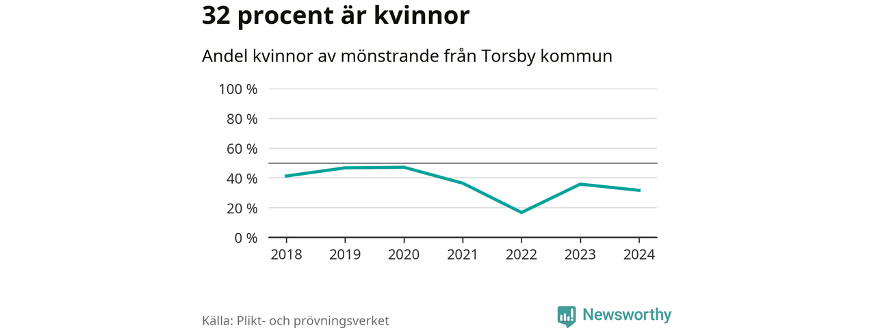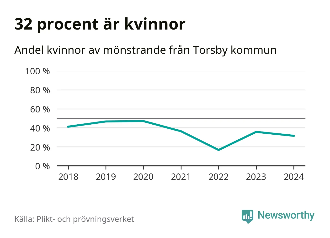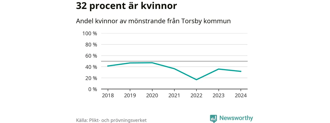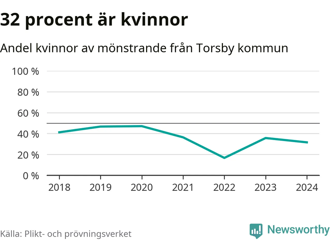 Sex av de som kallats till mönstring från Torsby är kvinnor, vilket motsvarar 32 procent av de mönstrande. Som mest har tio kvinnor kallats från kommunen (2023). I riket som helhet är 30 procent av de mönstrande tjejer.