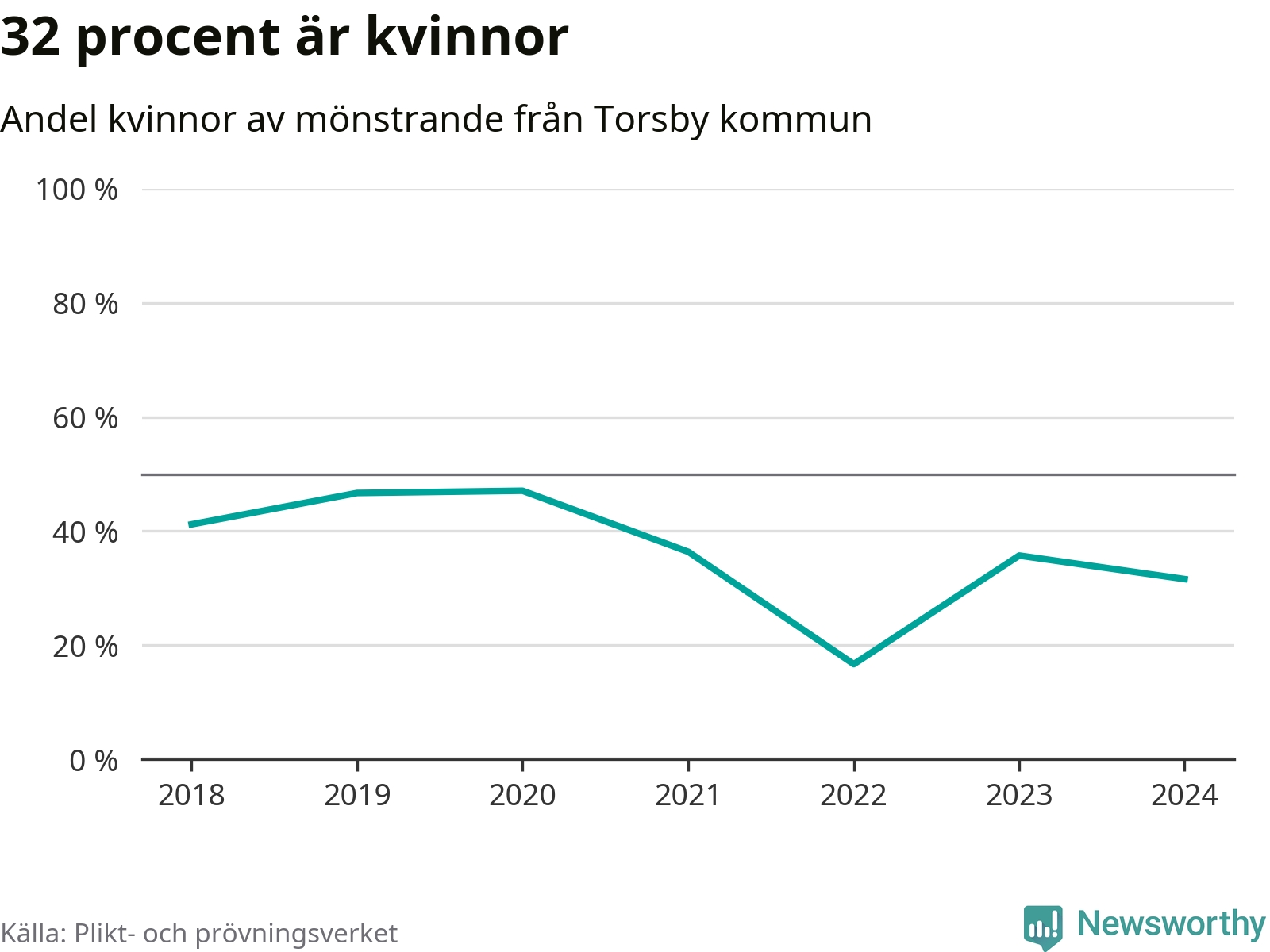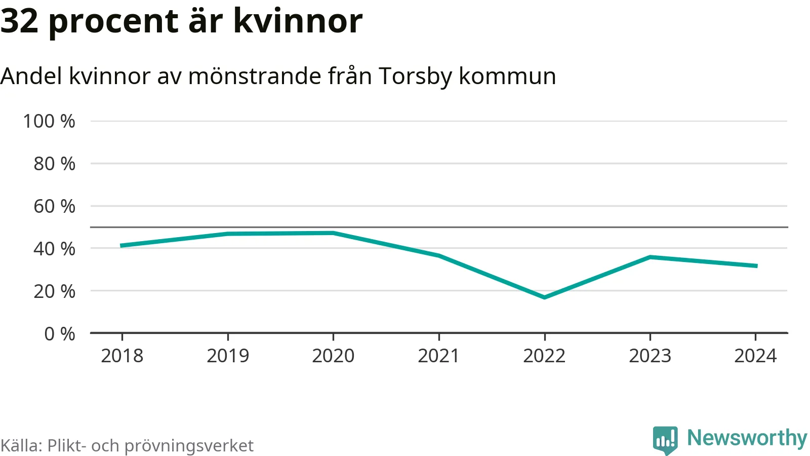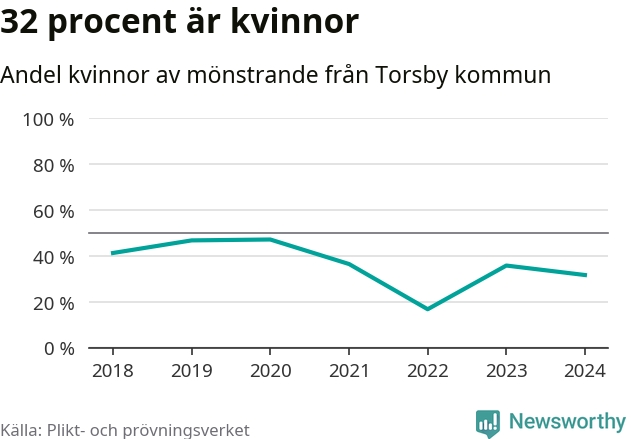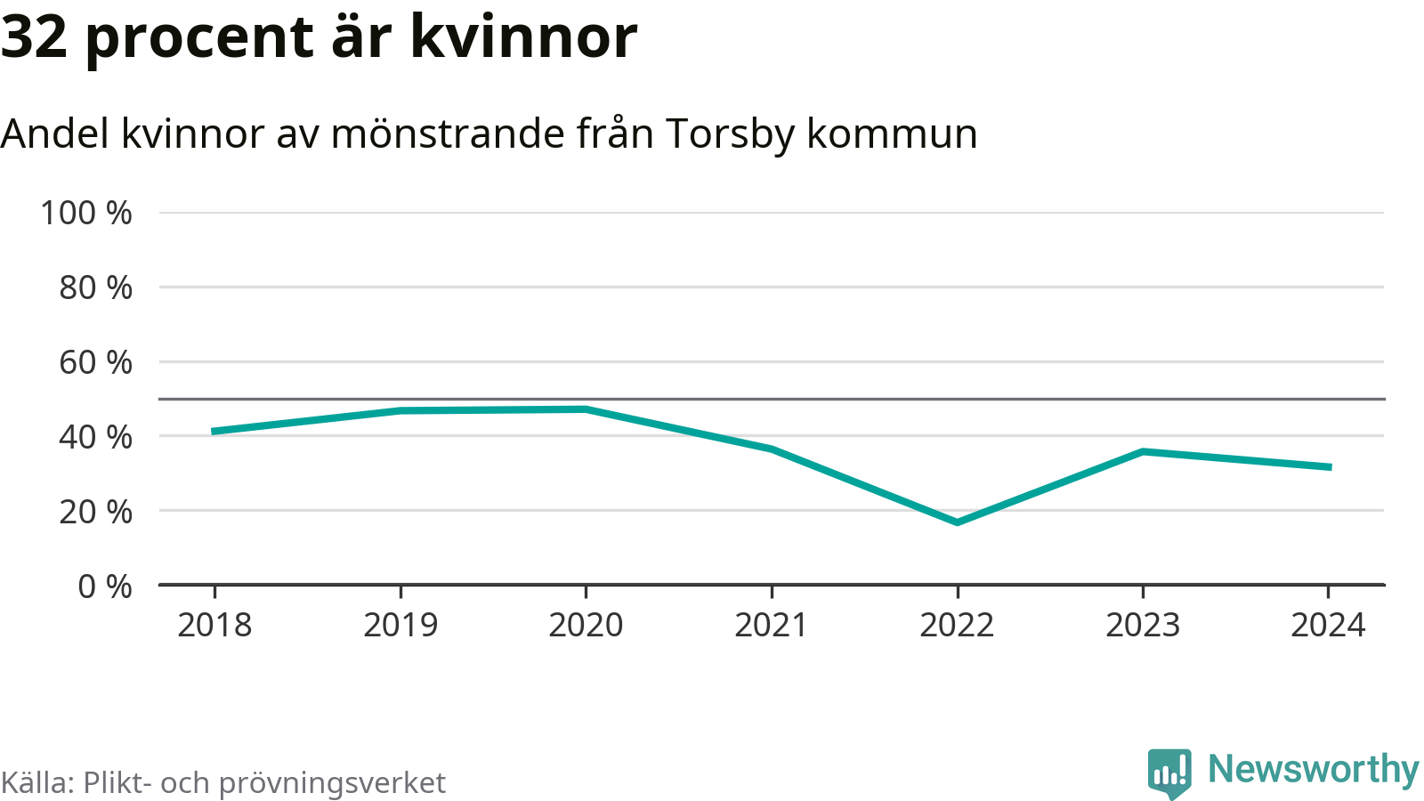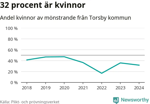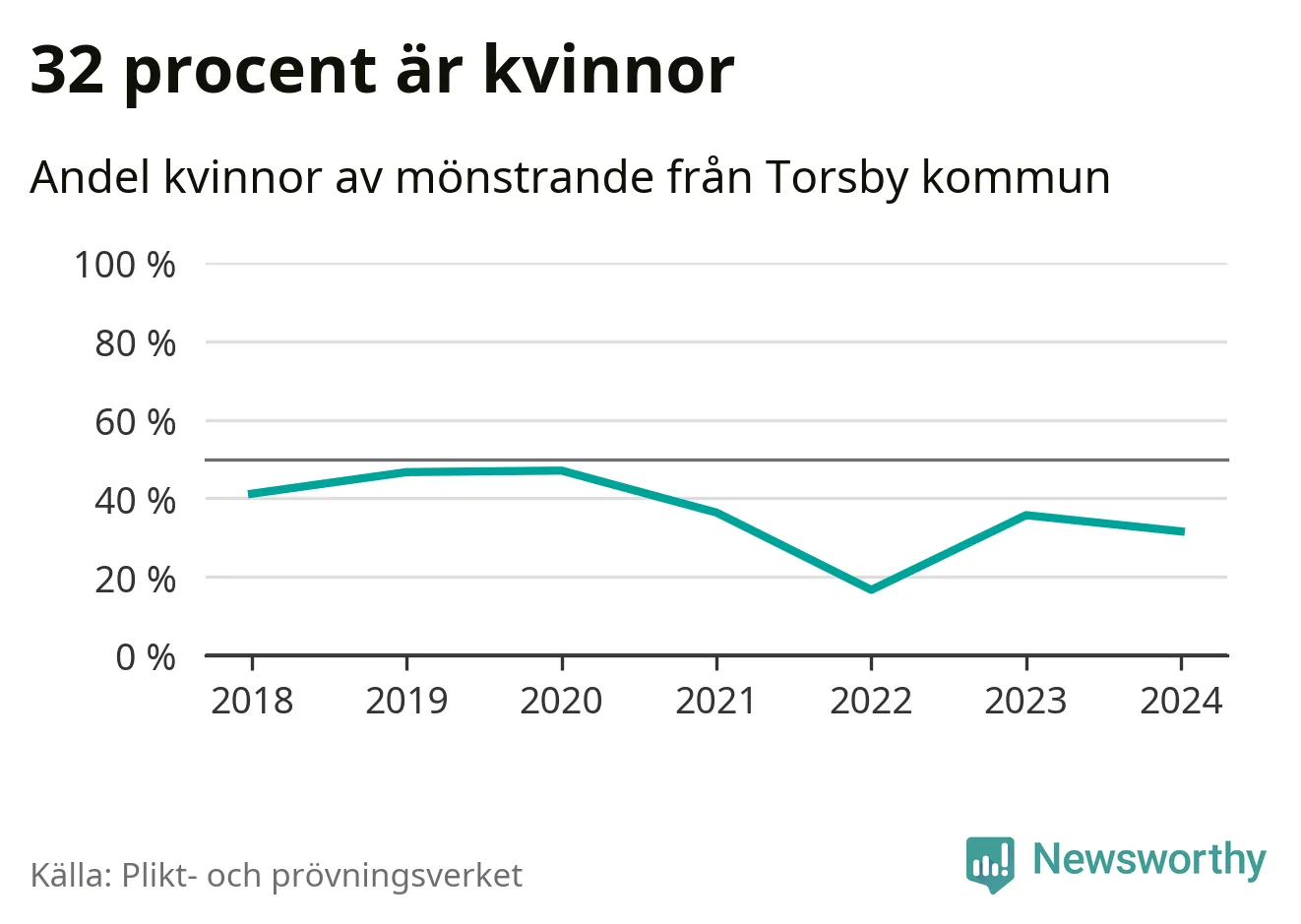 Sex av de som kallats till mönstring från Torsby är kvinnor, vilket motsvarar 32 procent av de mönstrande. Som mest har tio kvinnor kallats från kommunen (2023). I riket som helhet är 30 procent av de mönstrande tjejer.
