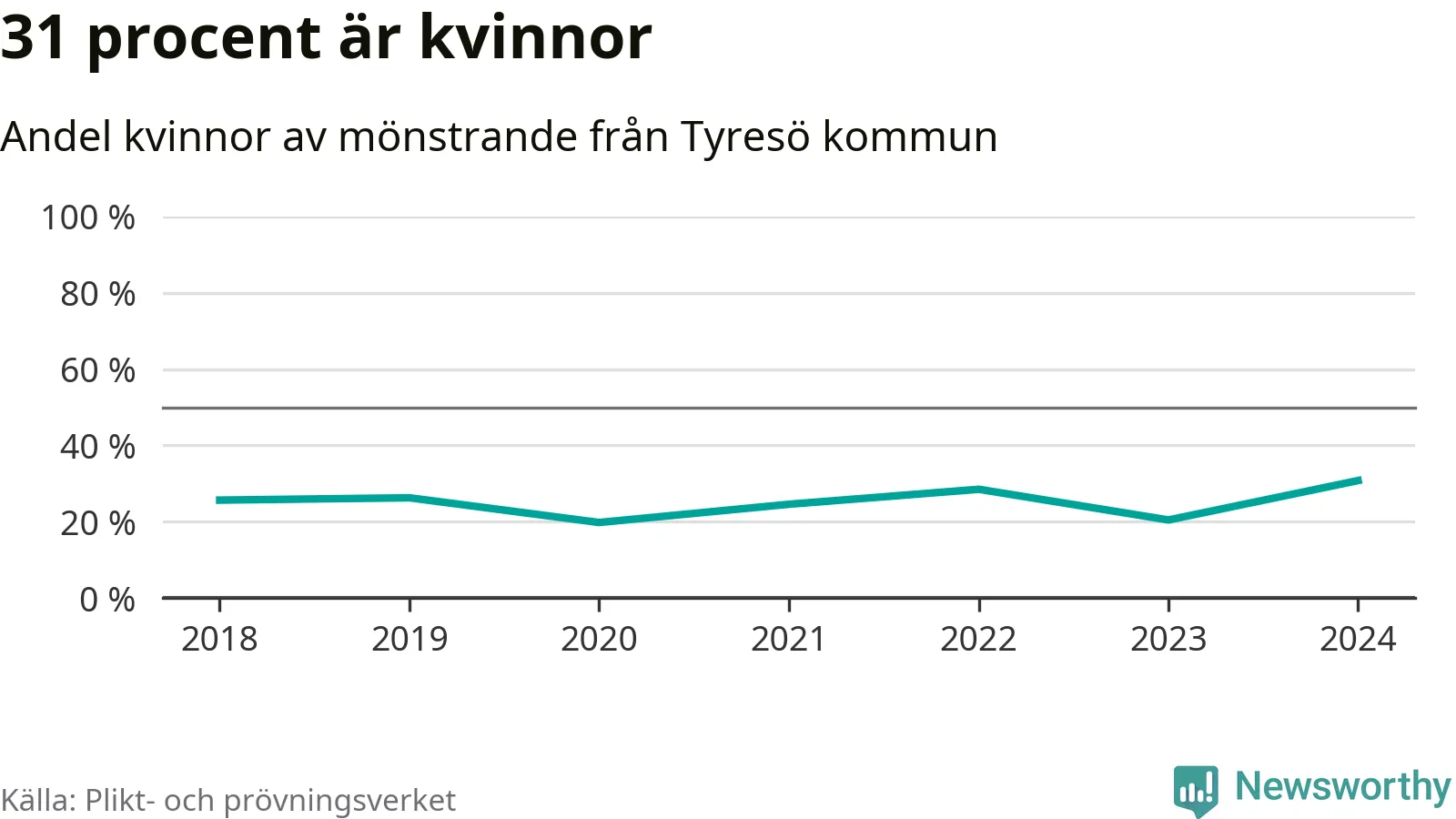 31 procent av 18-åringarna som kallas till mönstring från Tyresö kommun är kvinnor. Så många har de inte varit sedan värnplikten återinfördes.