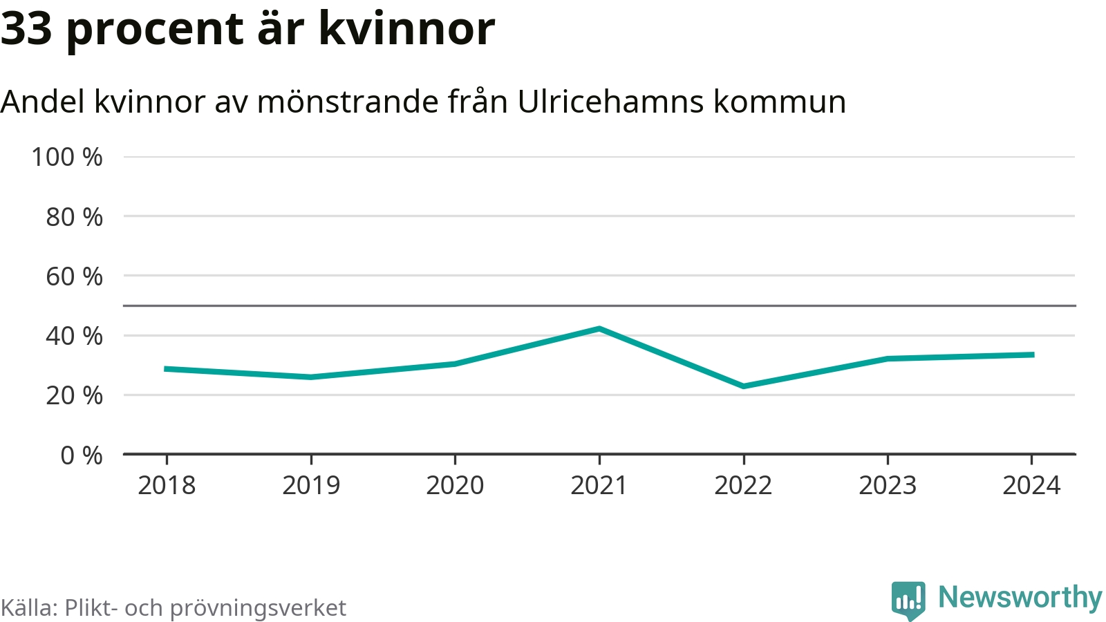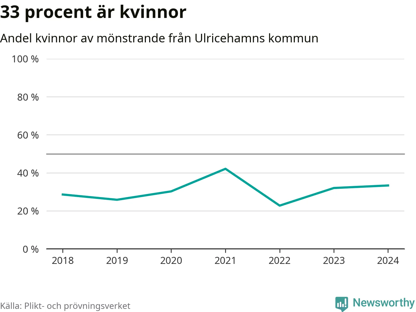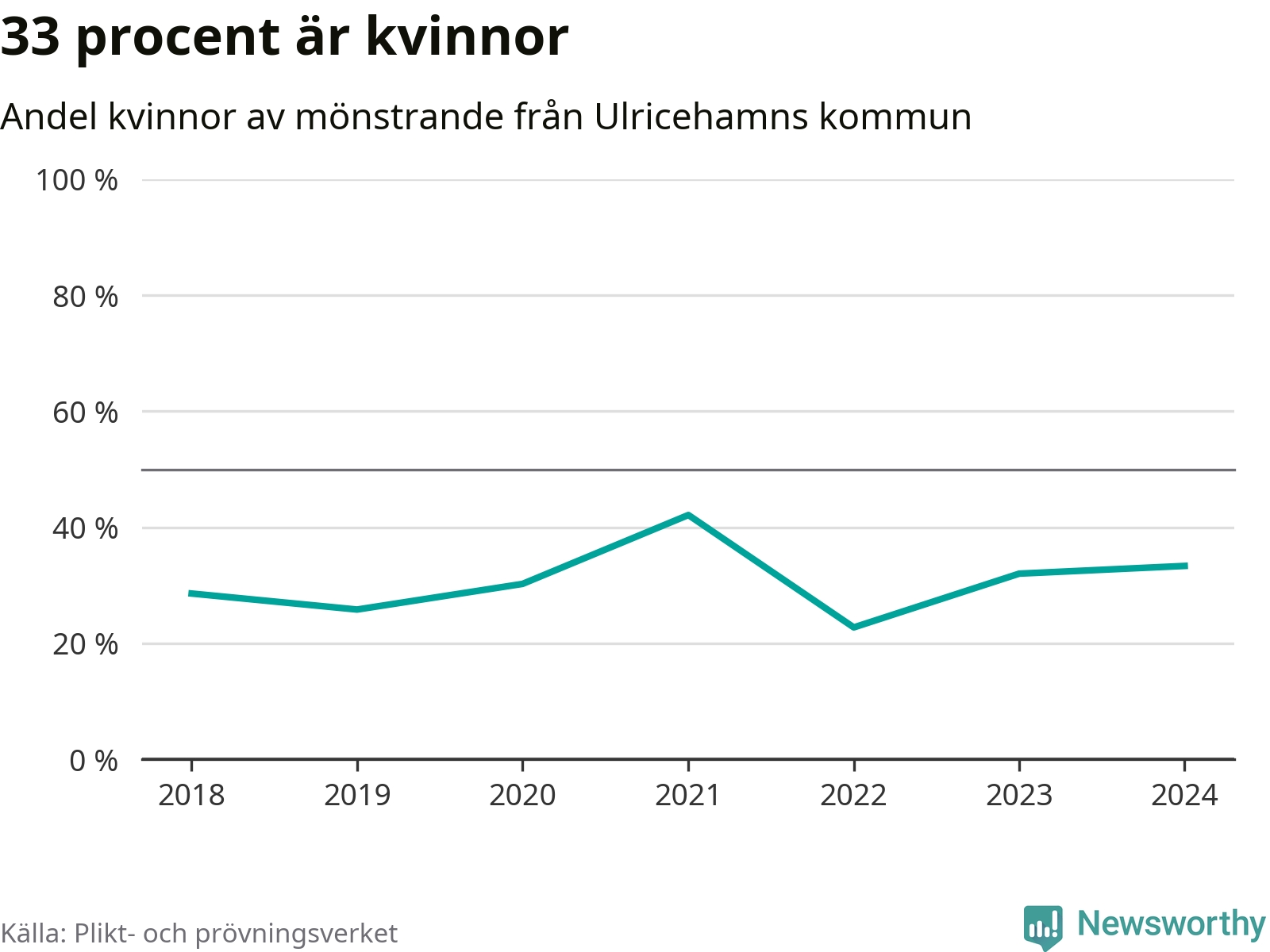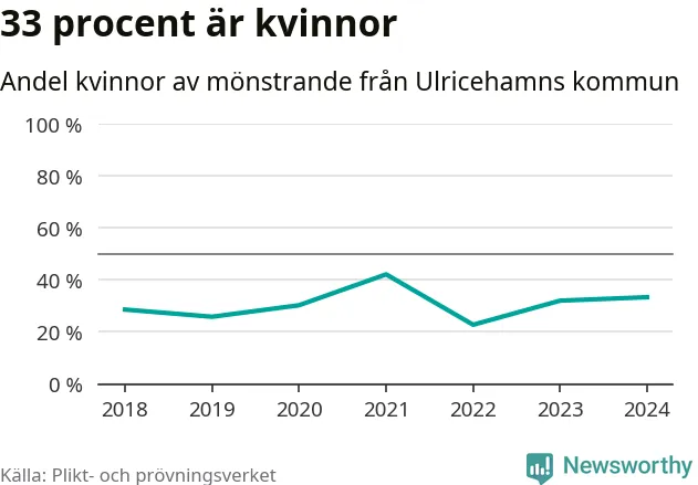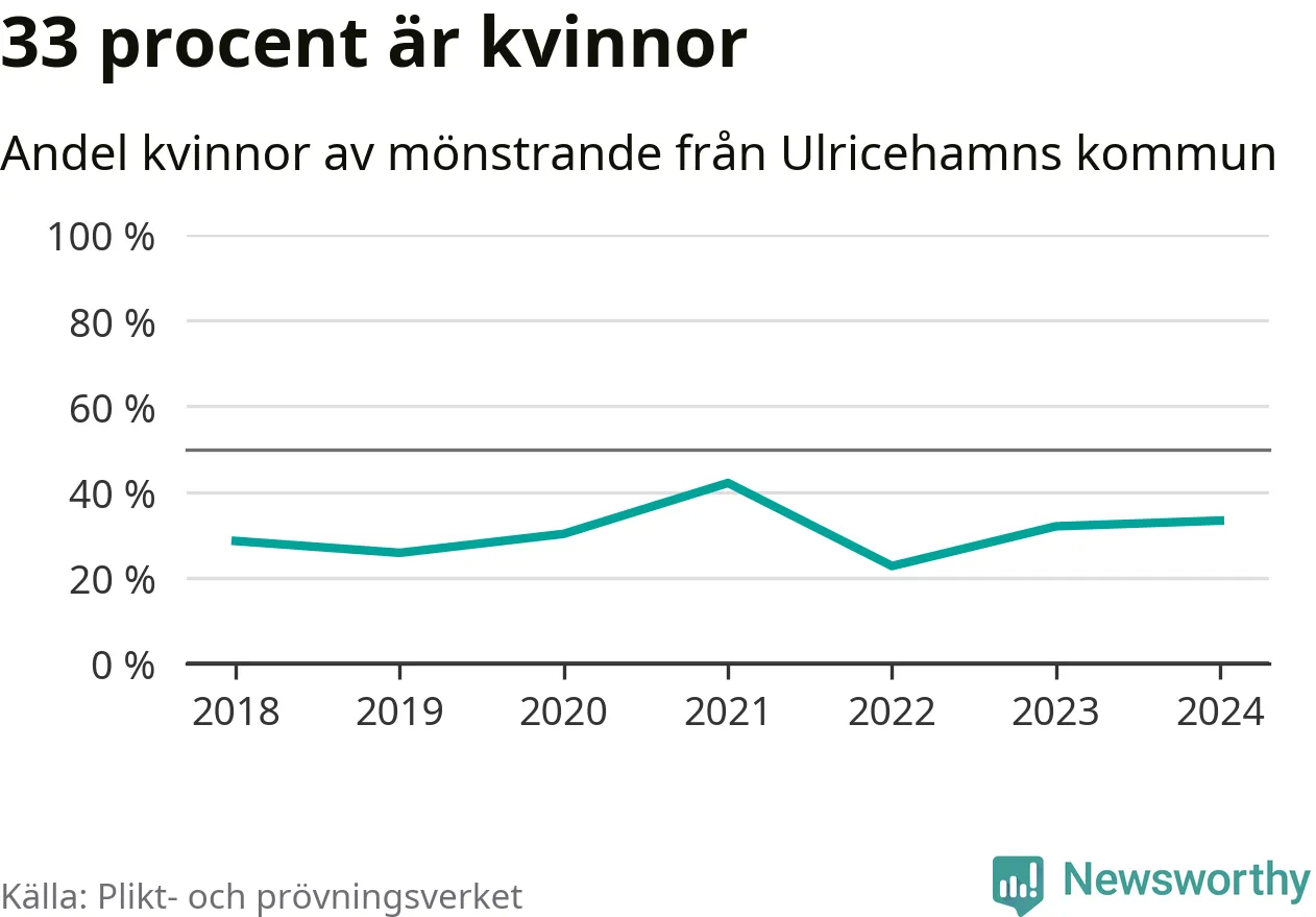 22 av de som kallats till mönstring från Ulricehamn är kvinnor, vilket motsvarar 33 procent av de mönstrande. I absoluta tal är det fler kvinnor än något år sedan värnplikten återinfördes, men 2021 var en större andel av de mönstrande från kommunen kvinnor (42 procent). I riket som helhet är 30 procent av de mönstrande tjejer.