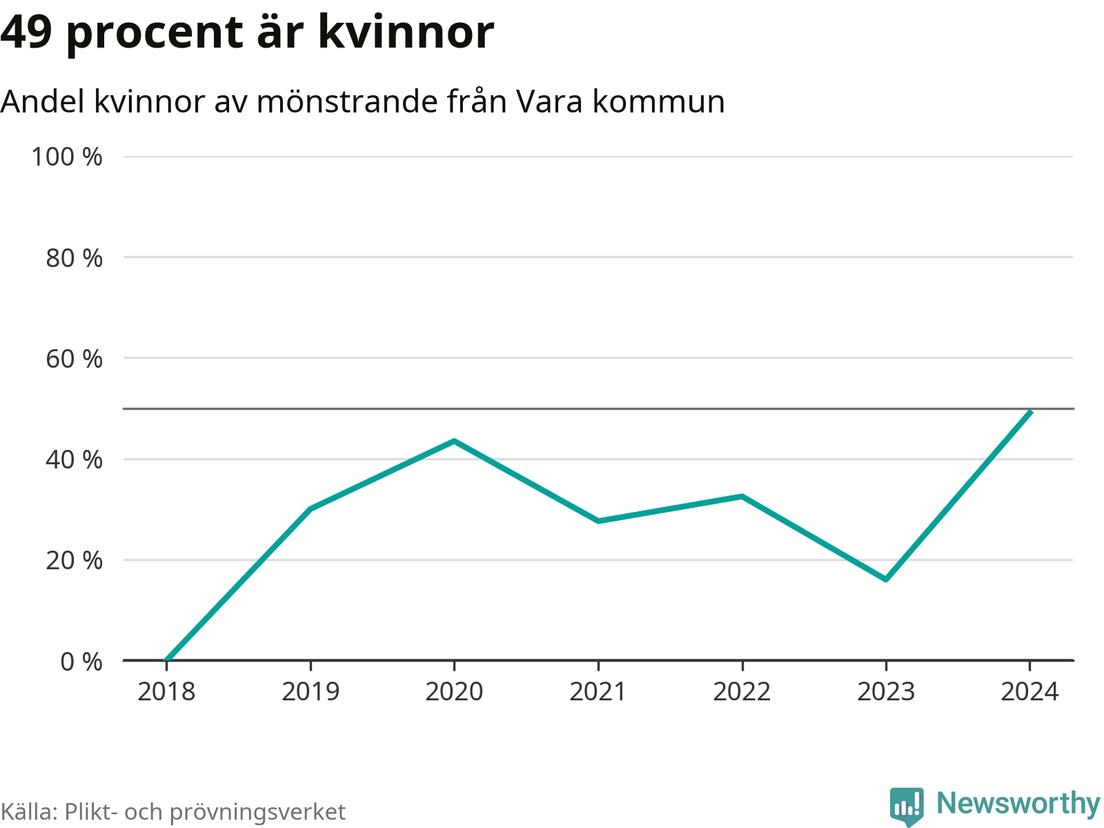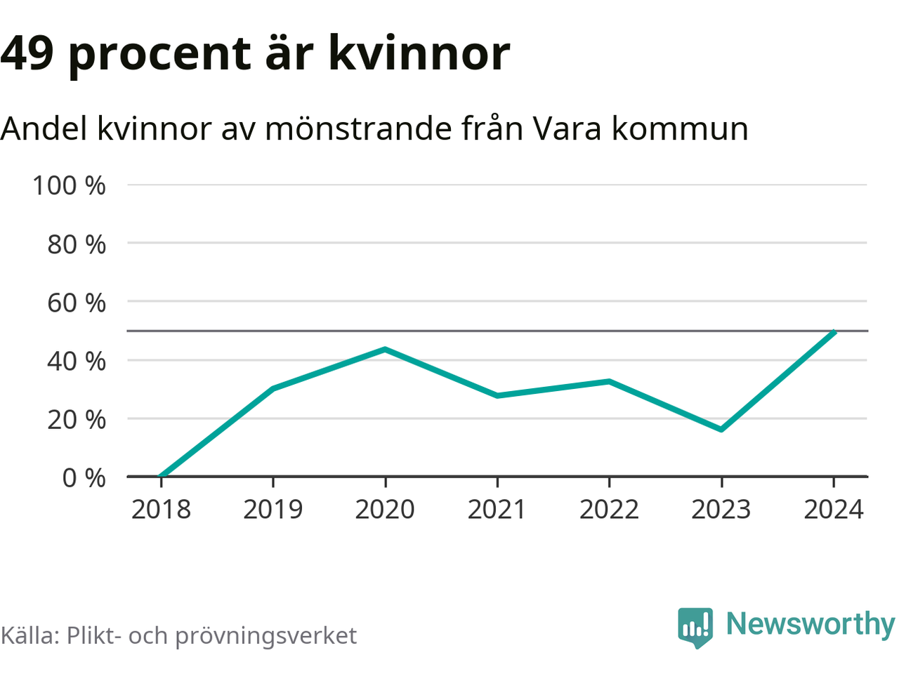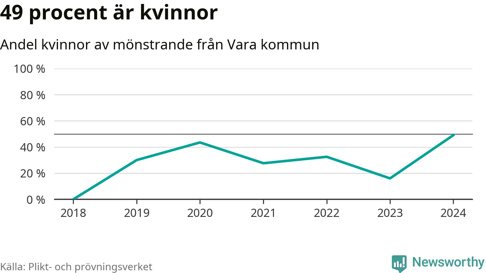 26 av de som kallats till mönstring från Vara är kvinnor, vilket motsvarar 49 procent av de mönstrande. Det är fler än något år sedan värnplikten återinfördes. I riket som helhet är 30 procent av de mönstrande tjejer.
