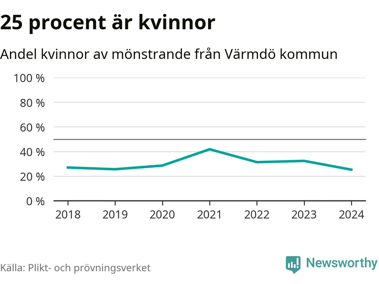 Av de som skrivits in till någon av Försvarmaktens grundutbildningar det senaste året, från juni 2023 till mars i år, kommer 51 (39 män och tolv kvinnor) från Värmdö. 42 av dessa antogs efter att ha kallats till mönstring.