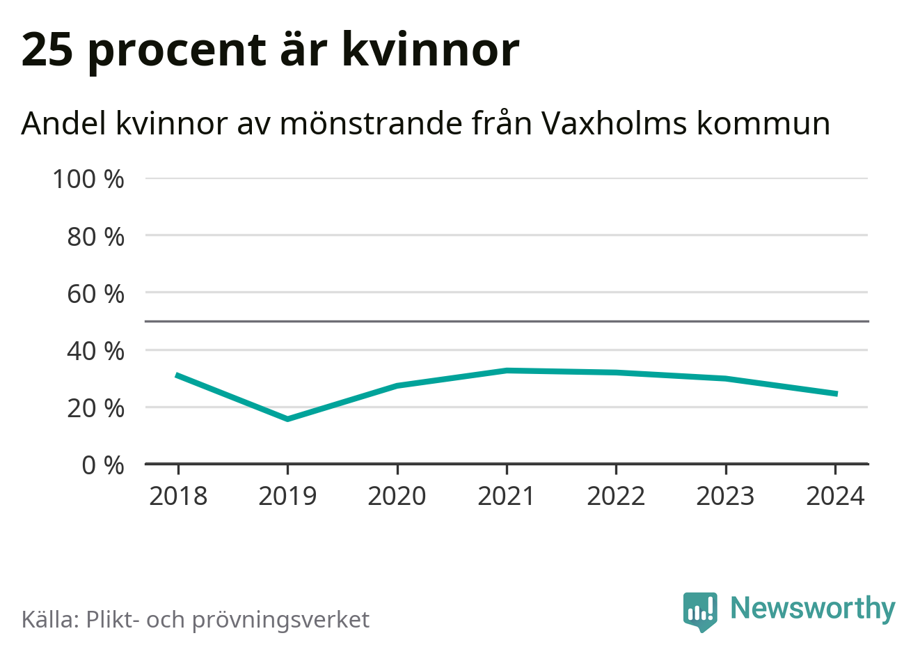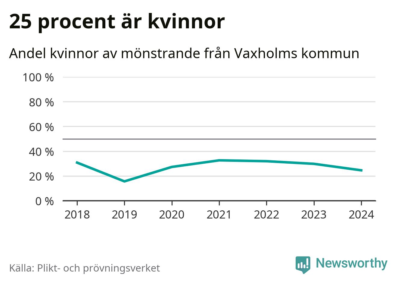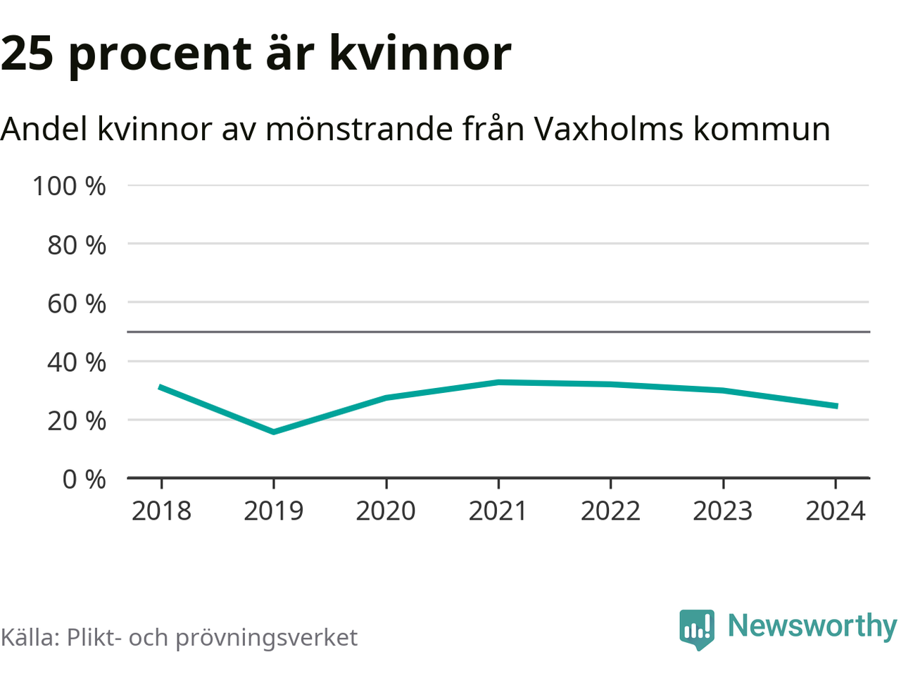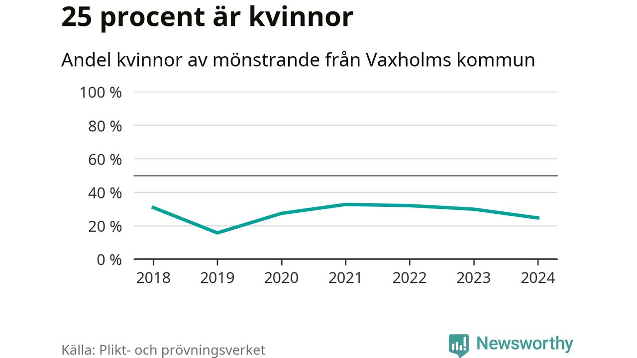 14 av de som kallats till mönstring från Vaxholm är kvinnor, vilket motsvarar 25 procent av de mönstrande. Som mest har 15 kvinnor kallats från kommunen (2022 och 2021). I riket som helhet är 30 procent av de mönstrande tjejer.