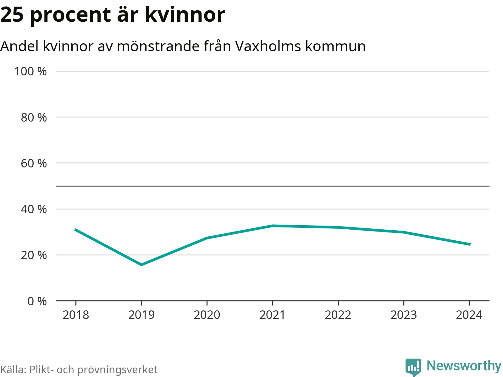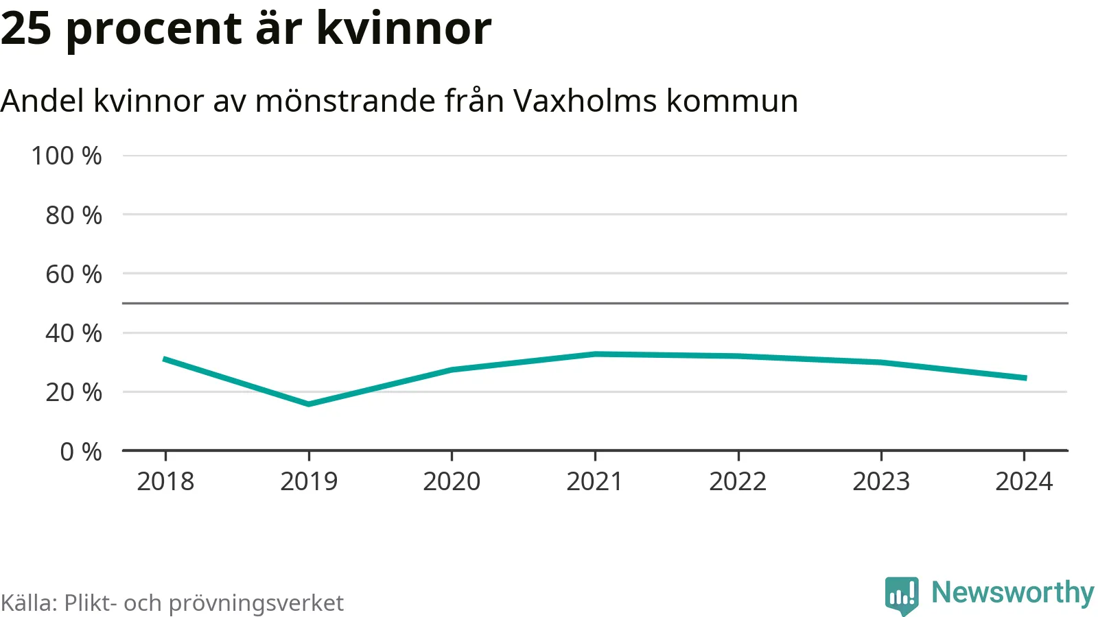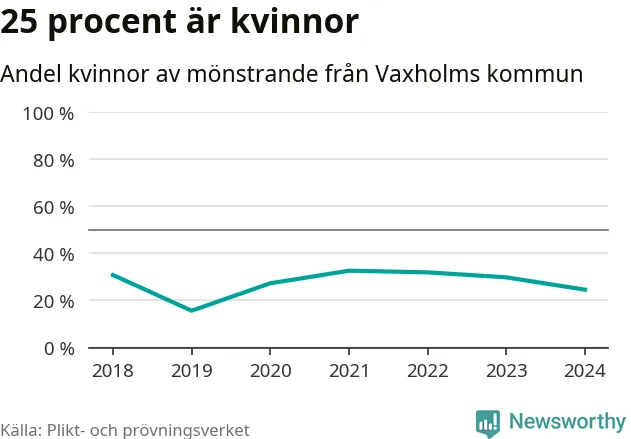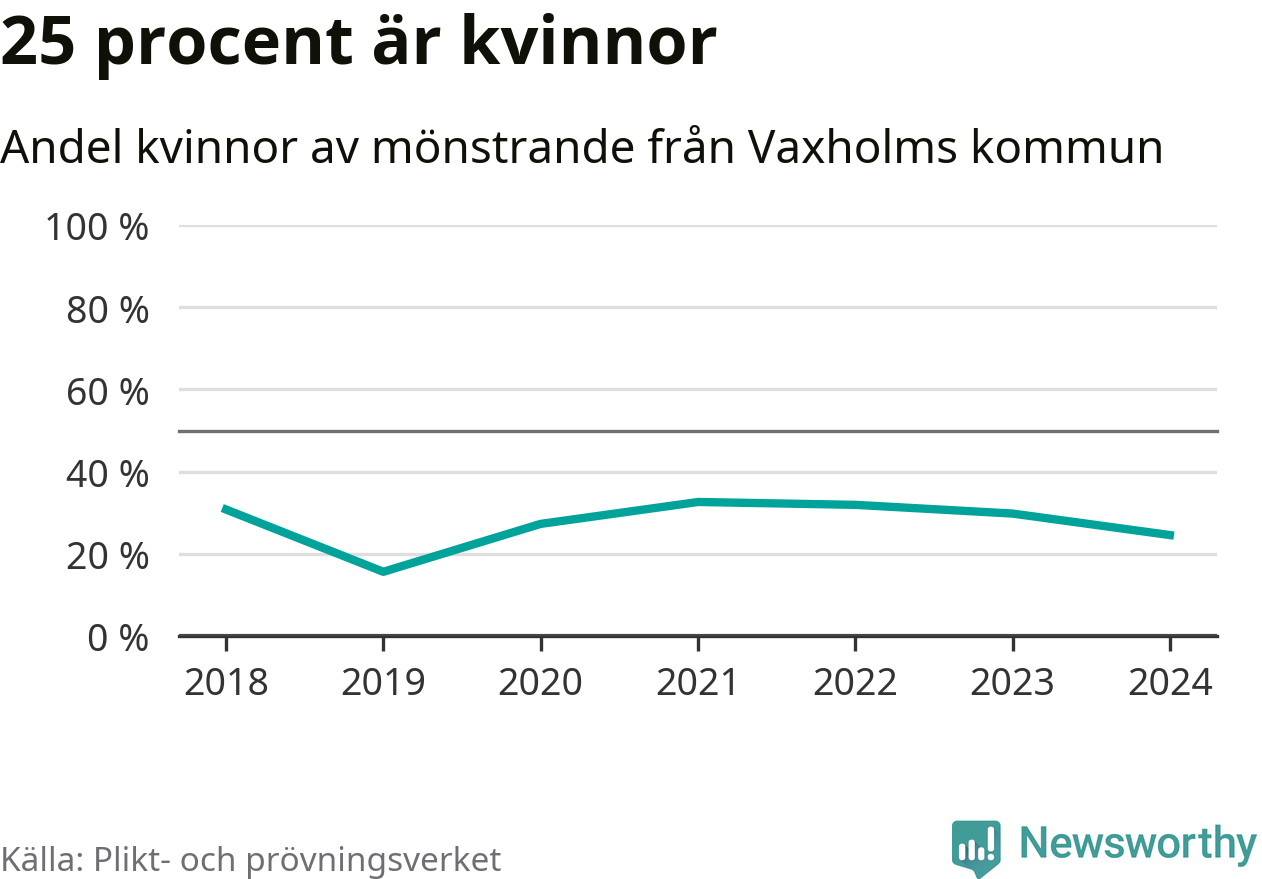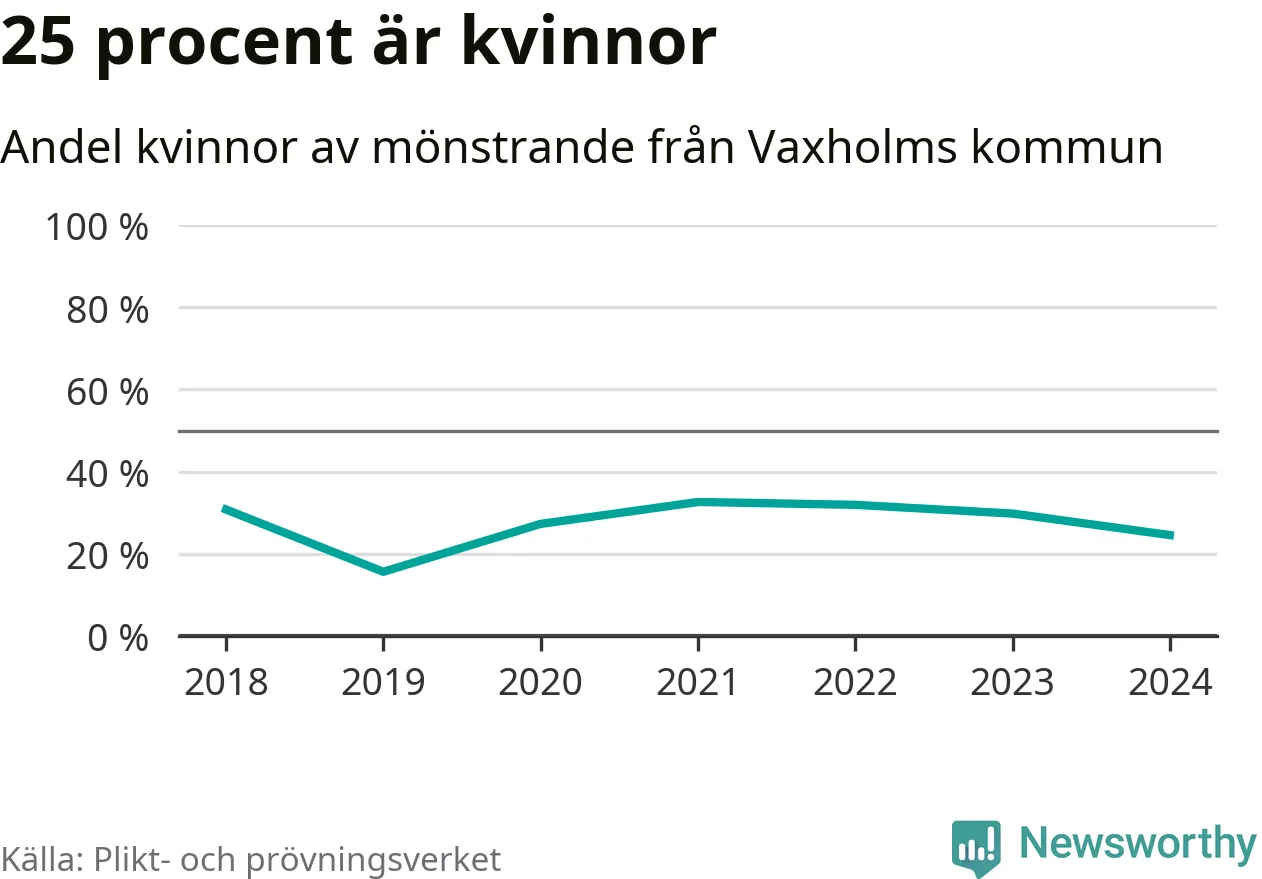 14 av de som kallats till mönstring från Vaxholm är kvinnor, vilket motsvarar 25 procent av de mönstrande. Som mest har 15 kvinnor kallats från kommunen (2022 och 2021). I riket som helhet är 30 procent av de mönstrande tjejer.