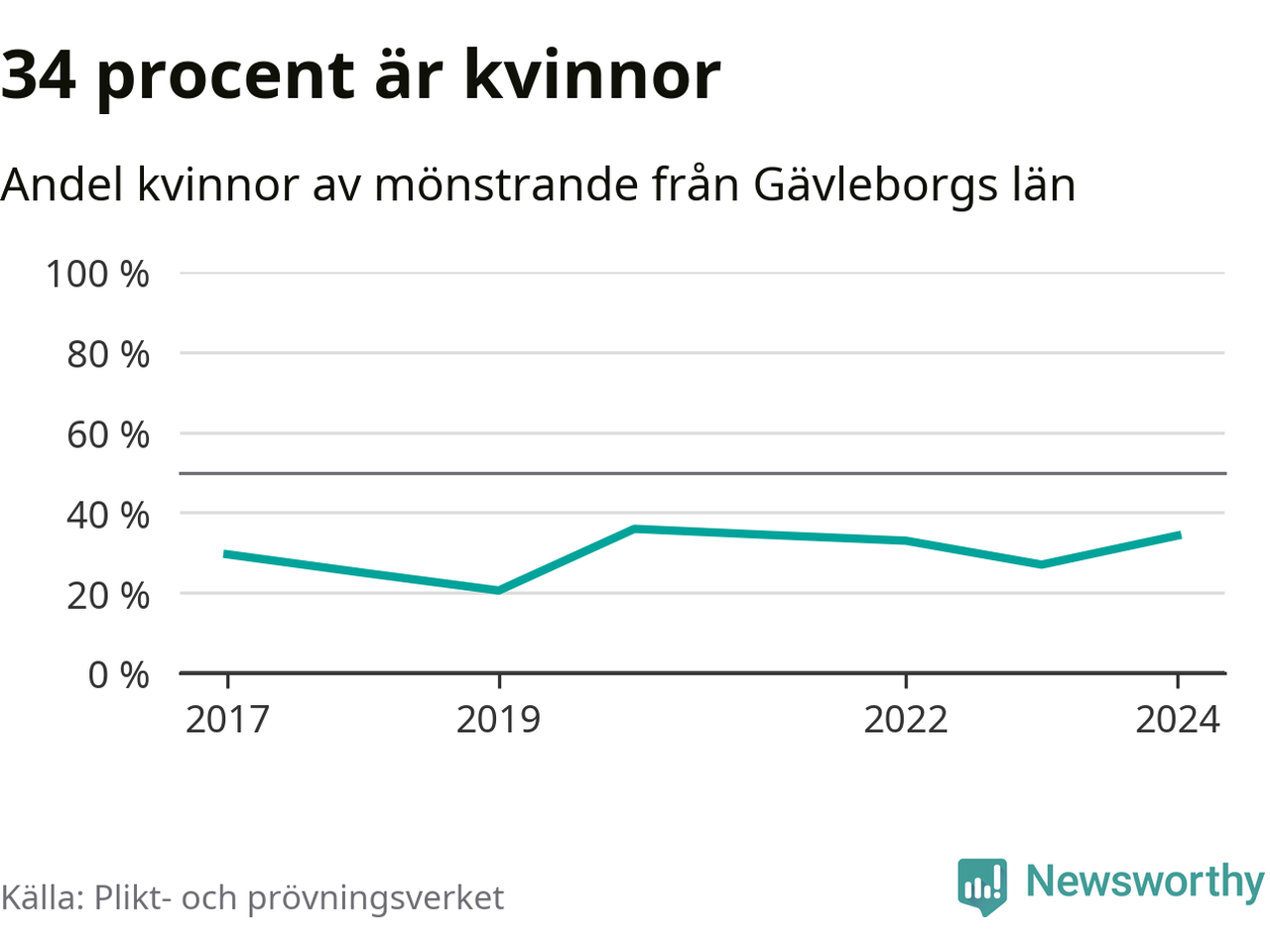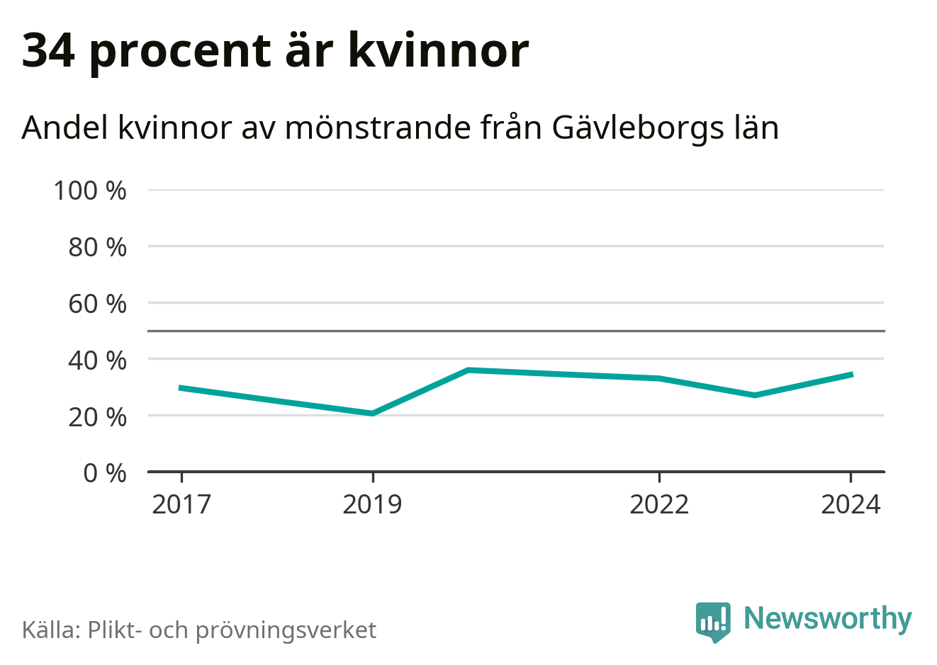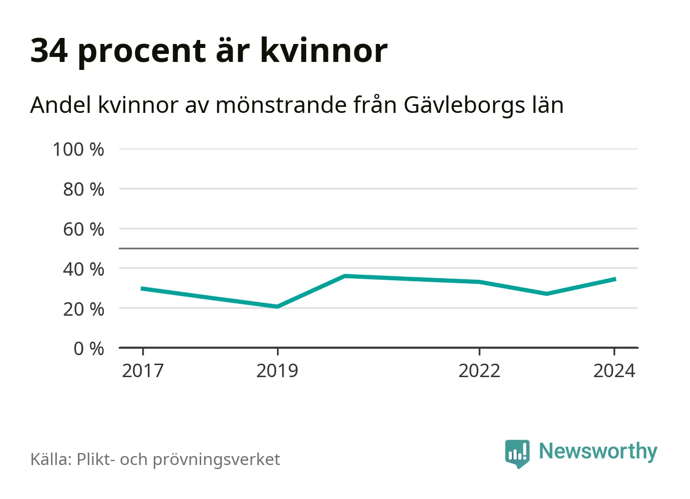245 av de som kallats till mönstring från Gävleborg är kvinnor, vilket motsvarar 34 procent av de mönstrande. I absoluta tal är det fler kvinnor än något år sedan värnplikten återinfördes, men 2020 var en större andel av de mönstrande från länet kvinnor (36 procent). I riket som helhet är 30 procent av de mönstrande tjejer.